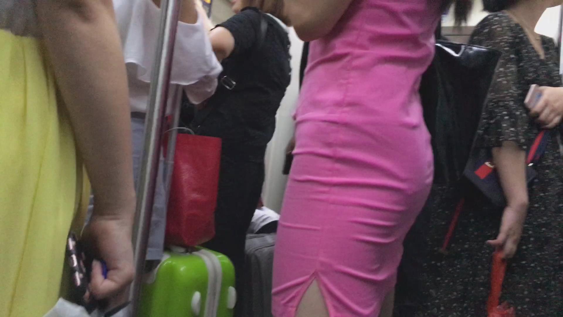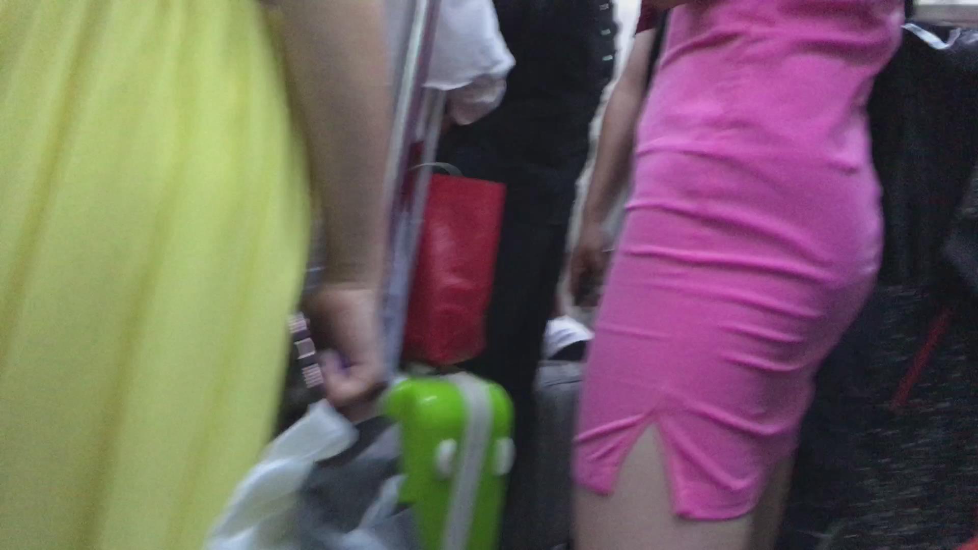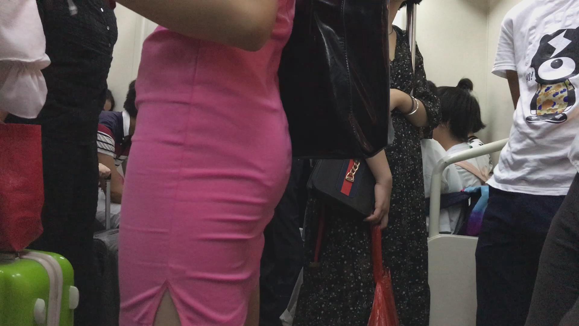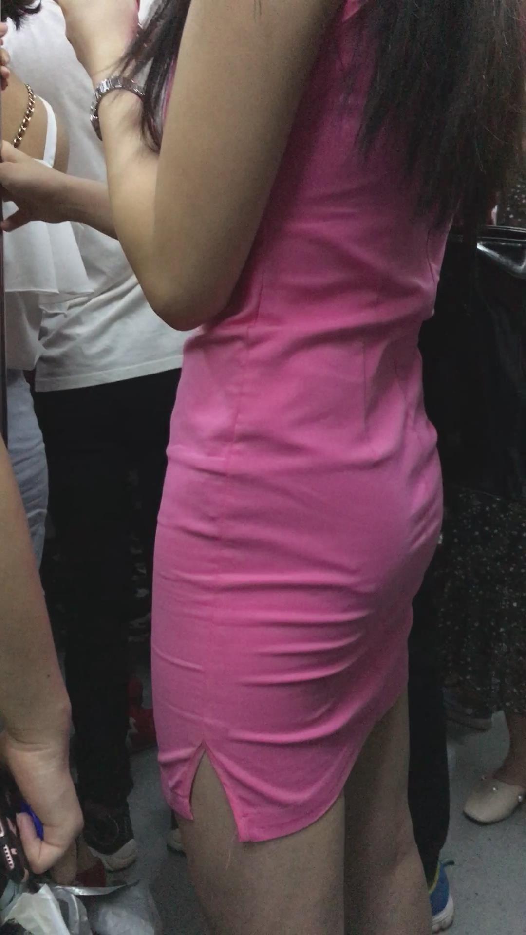 地铁上的粉色包臀裙苗条身材美眉 编号2233