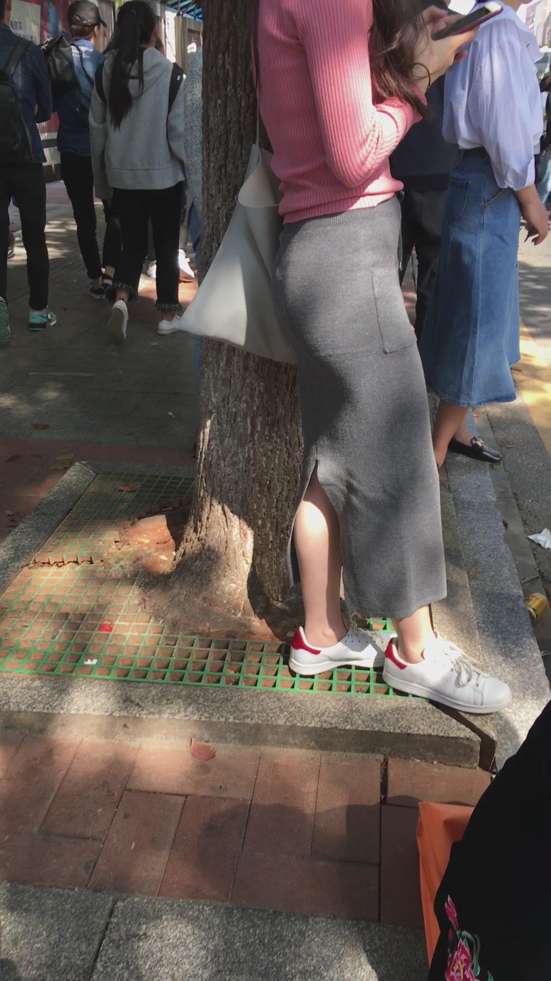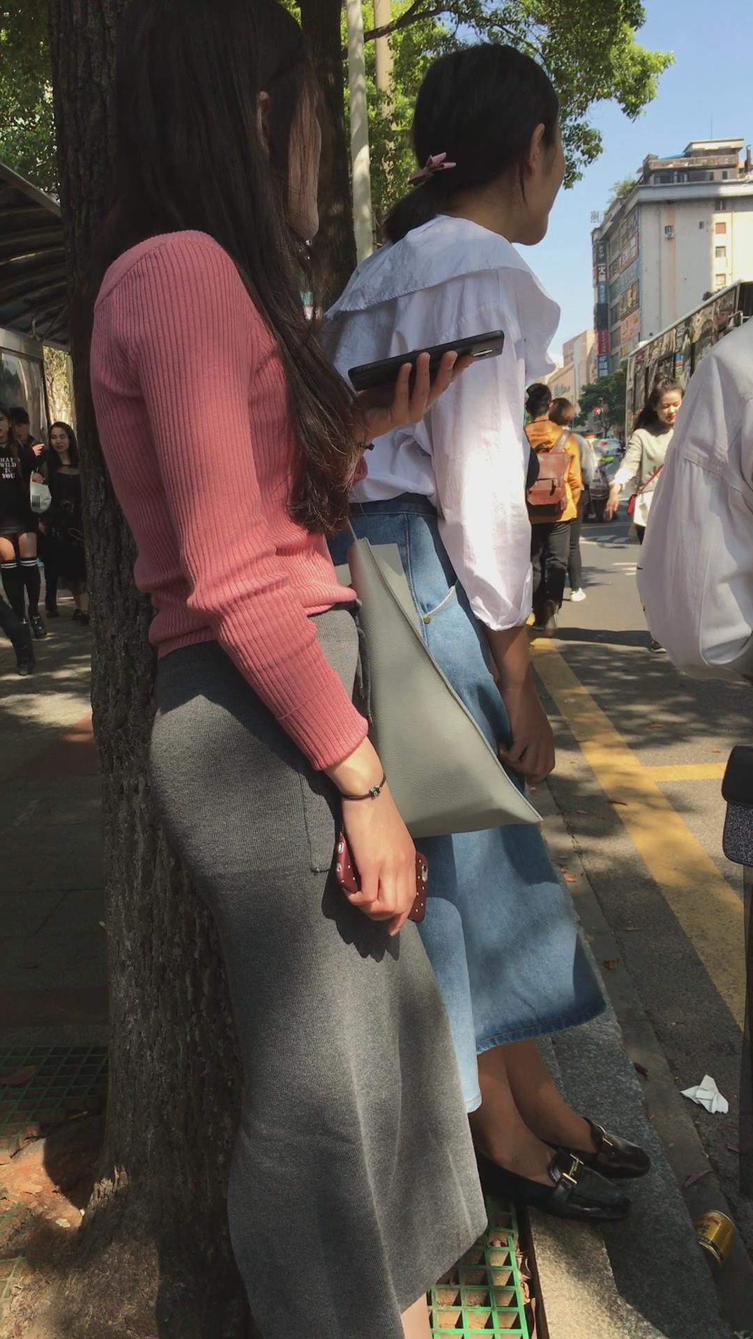 偶遇粉衣帆布鞋妹子在等公交 编号2238