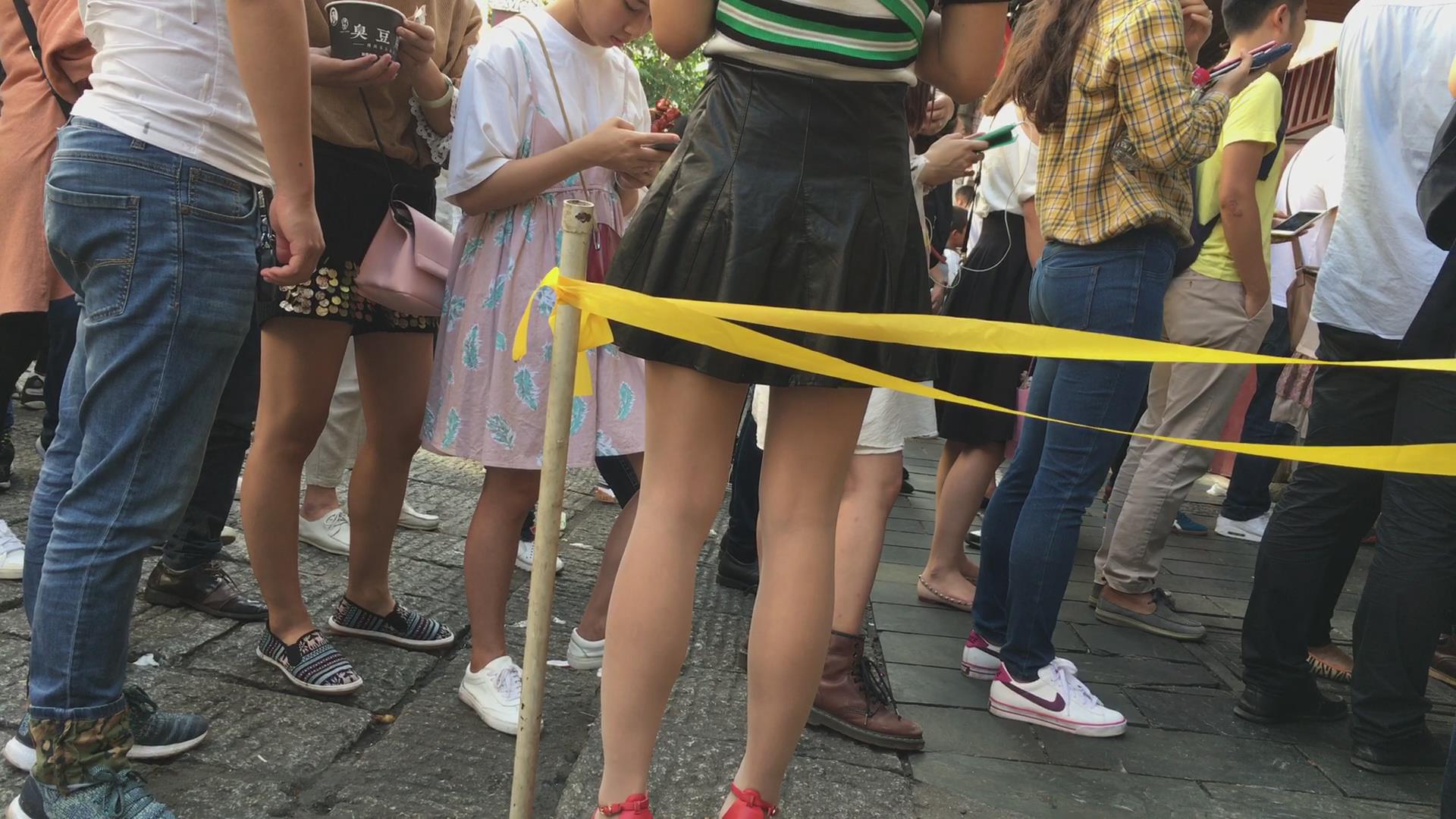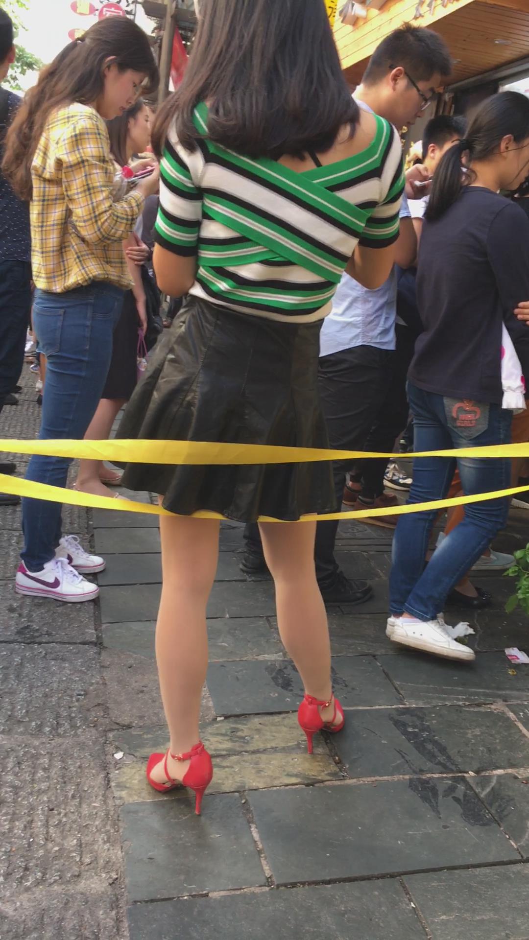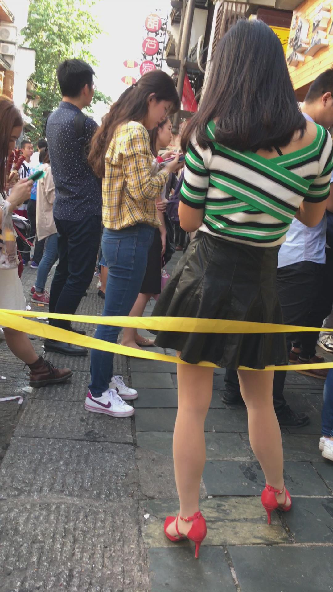 街拍短裙红色高跟鞋风骚极品美女 编号2278