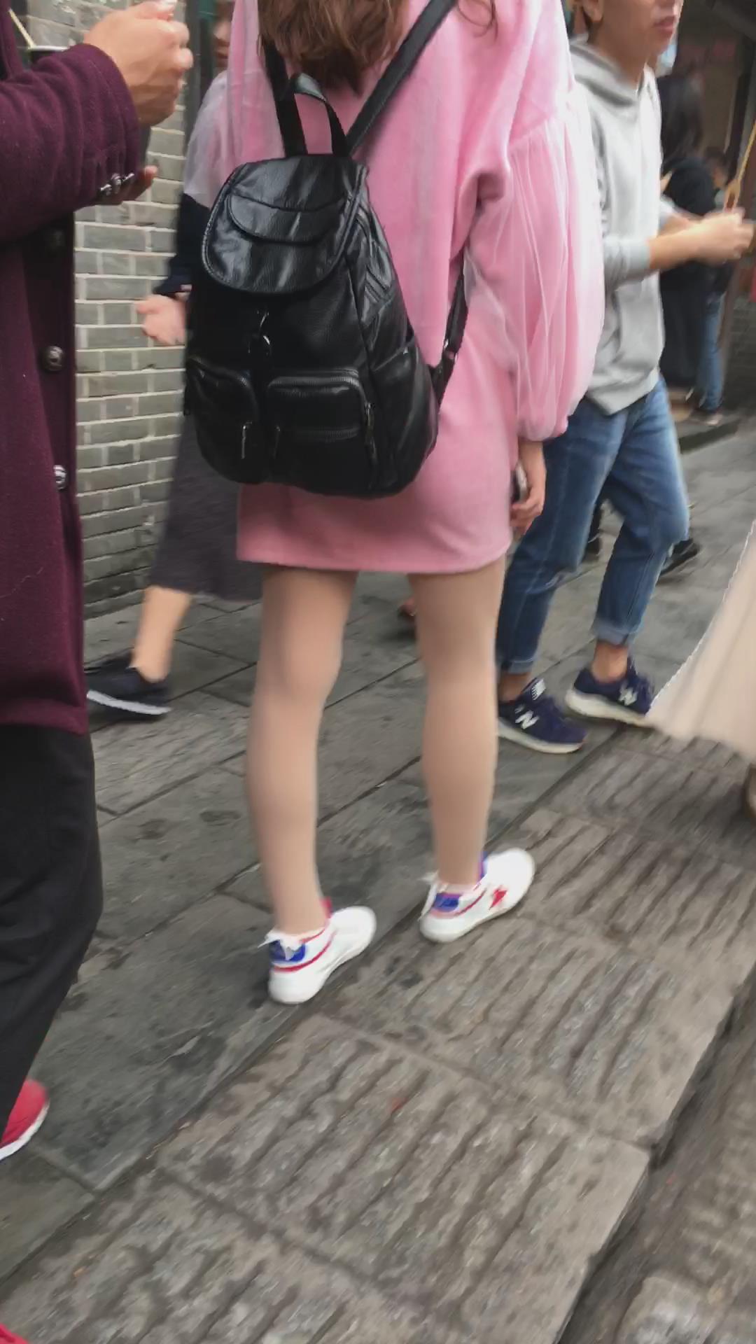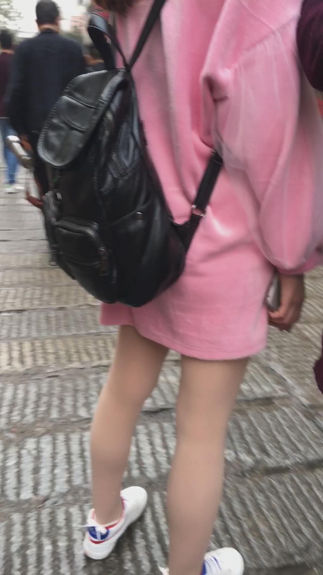 跟拍气质粉粉连衣裙可爱萌妹子 编号2285