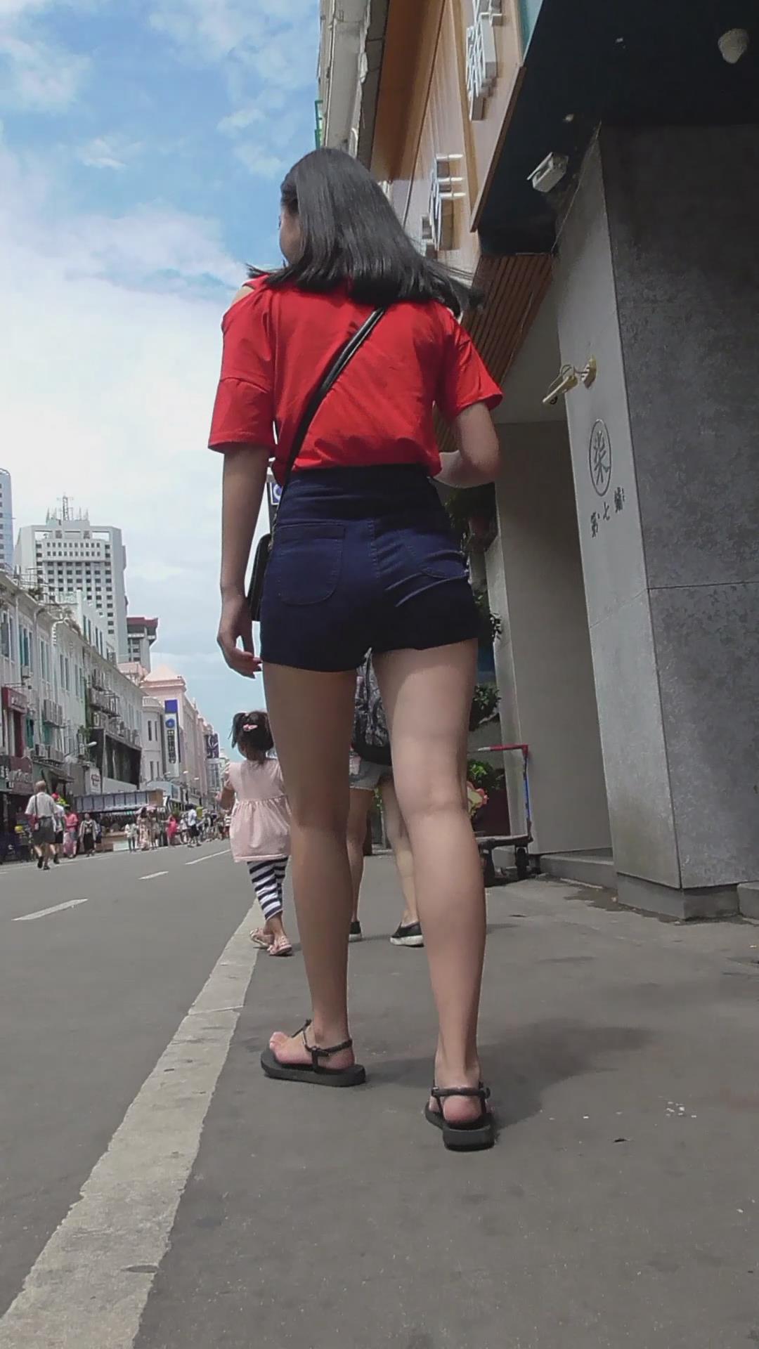 街拍高腰热裤美臀长腿气质小美女 编号4648