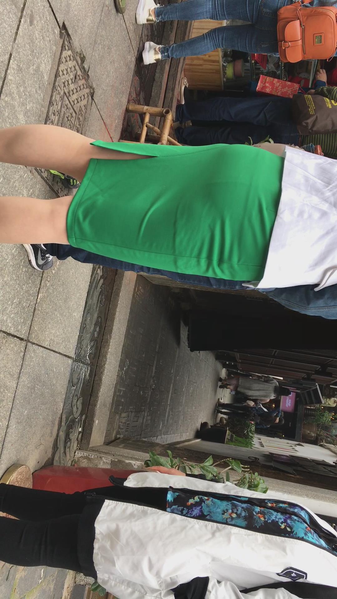 街拍绿色OL包臀裙高跟鞋轻熟女,很有韵味 编号2360