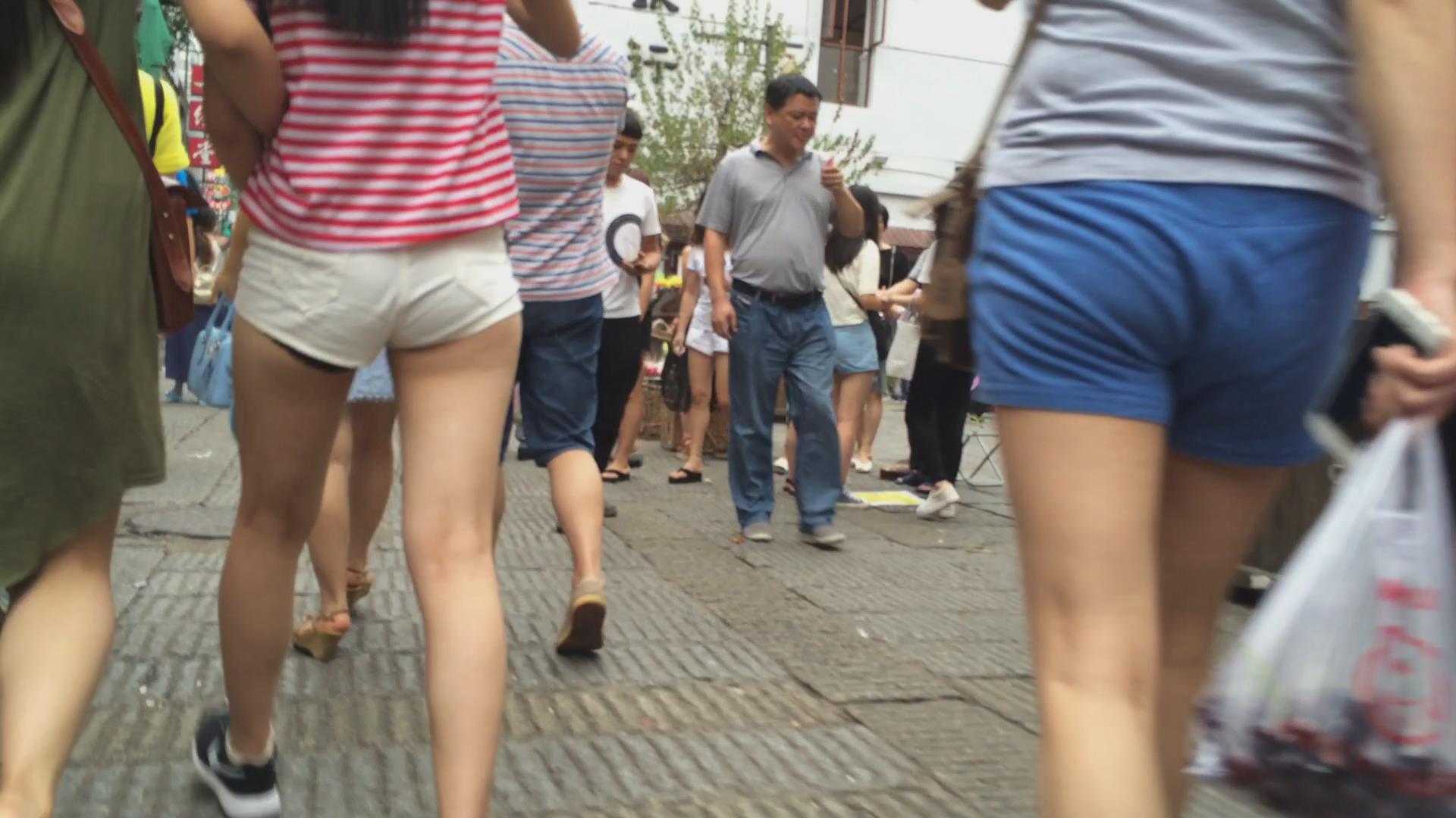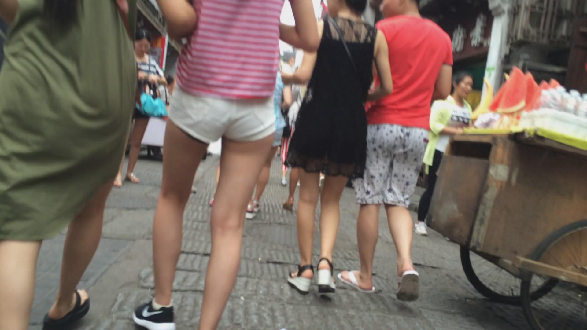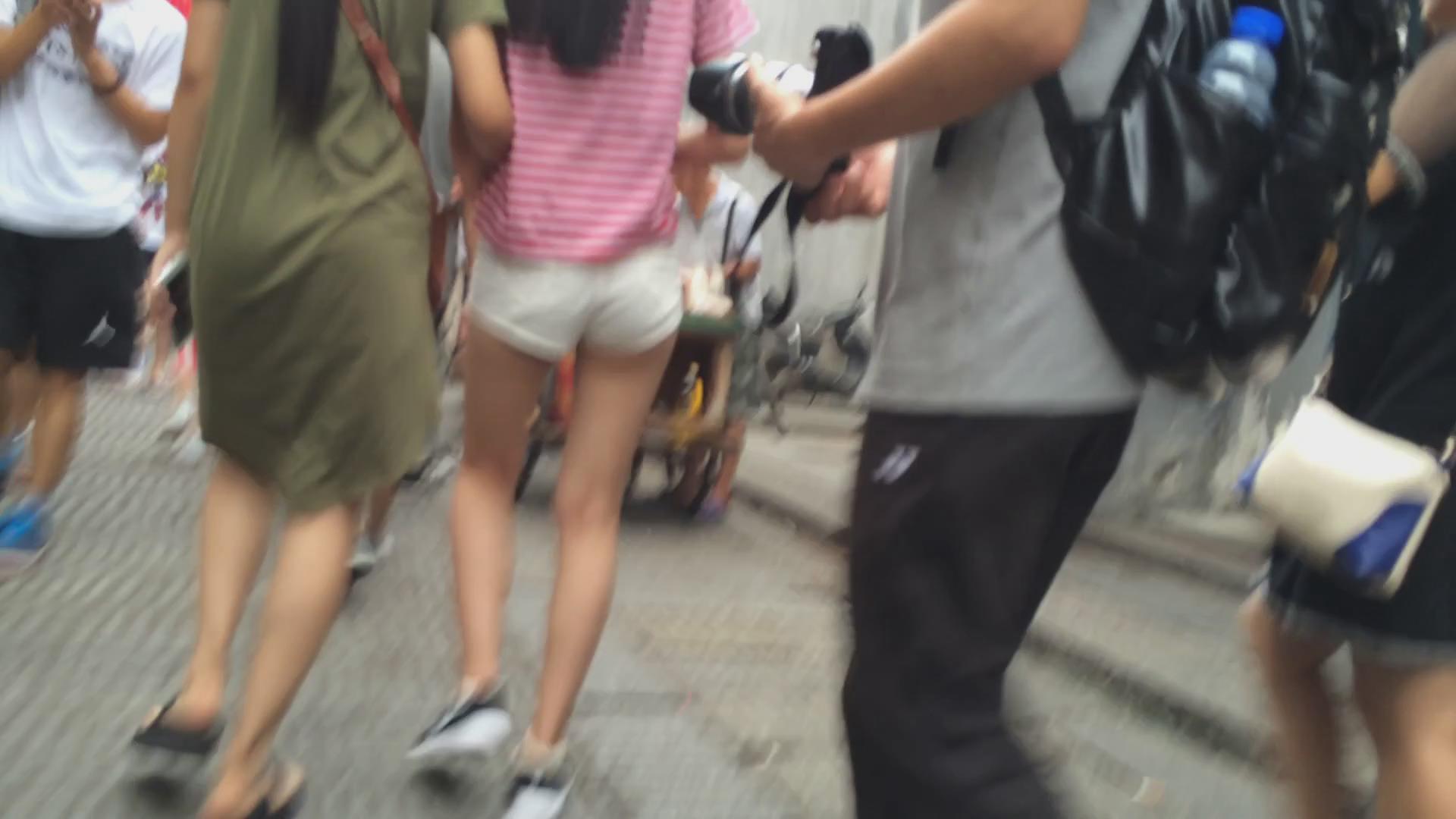 街拍白色紧身热裤美眉 编号4654