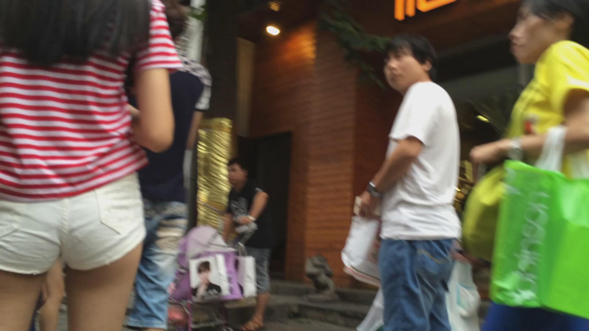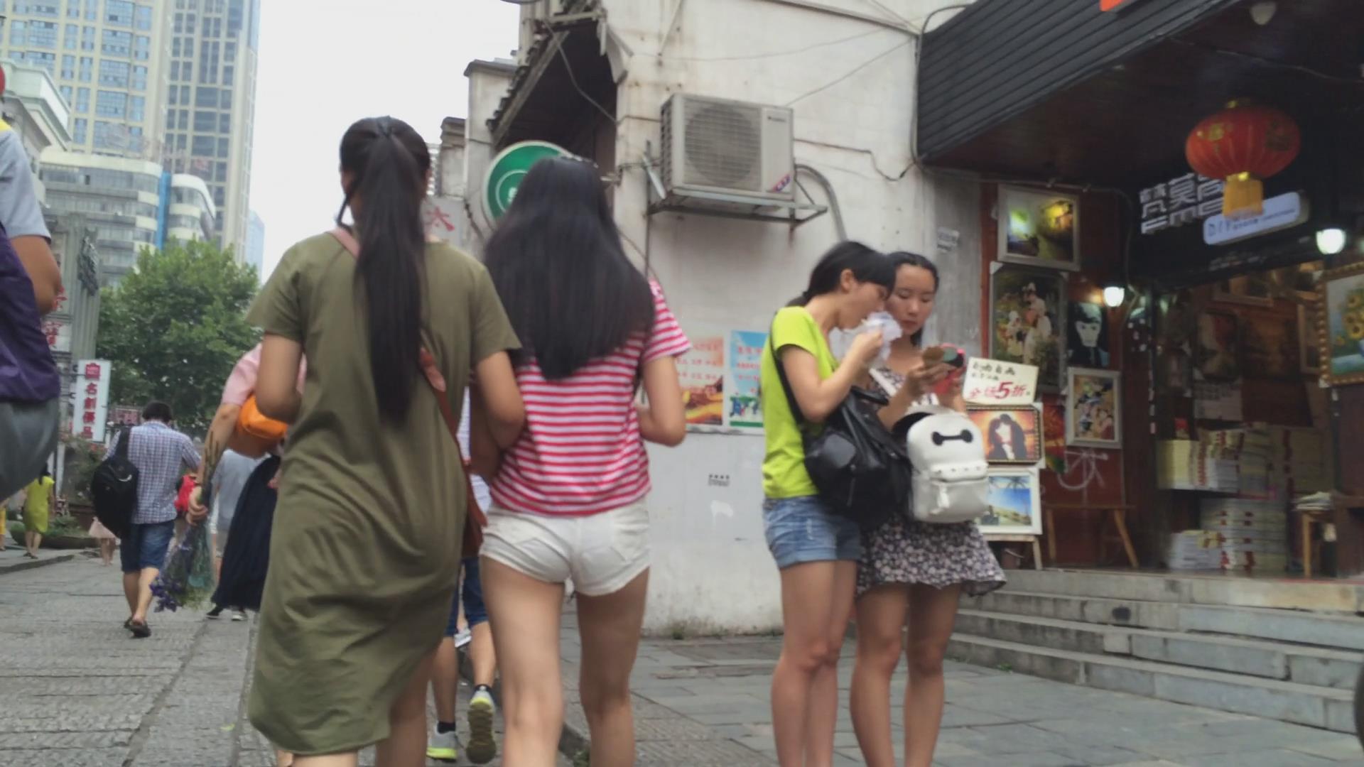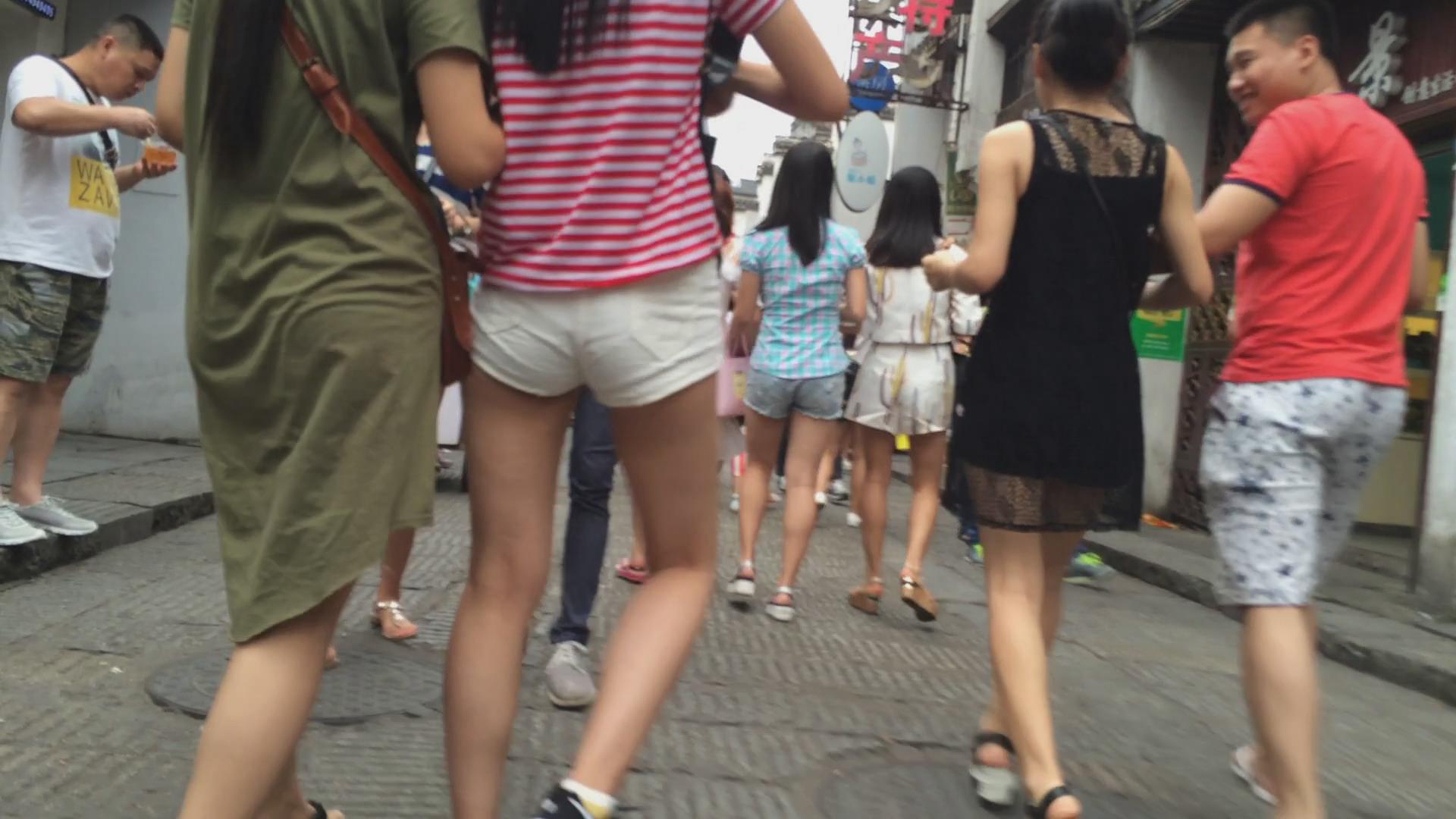 街拍白色紧身热裤美眉 编号4654
