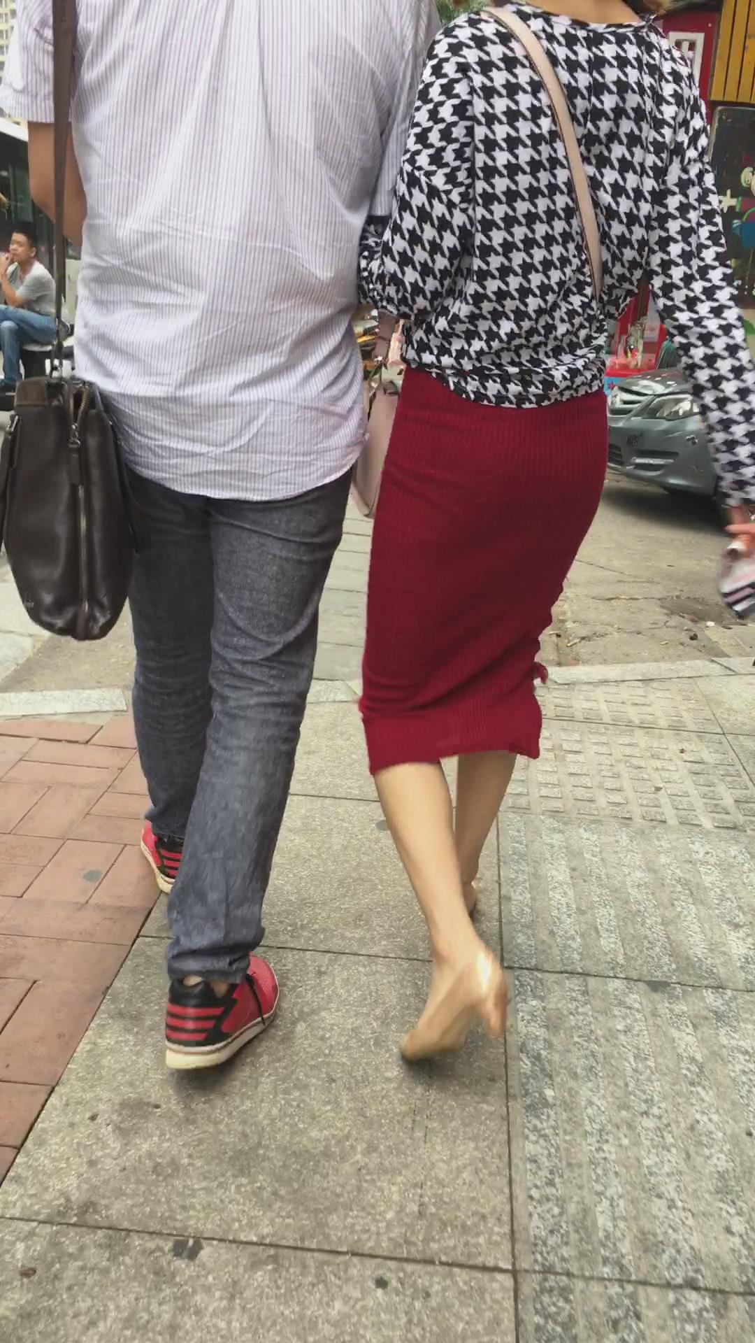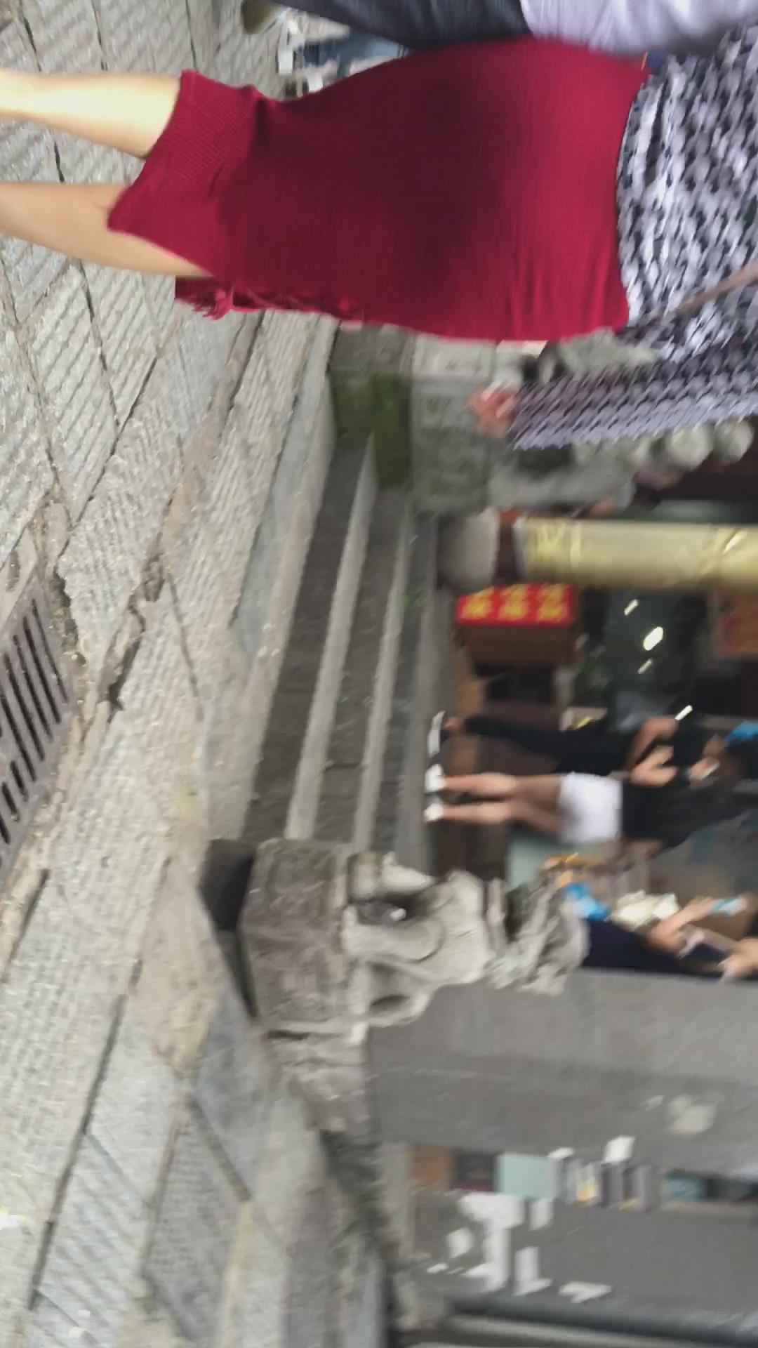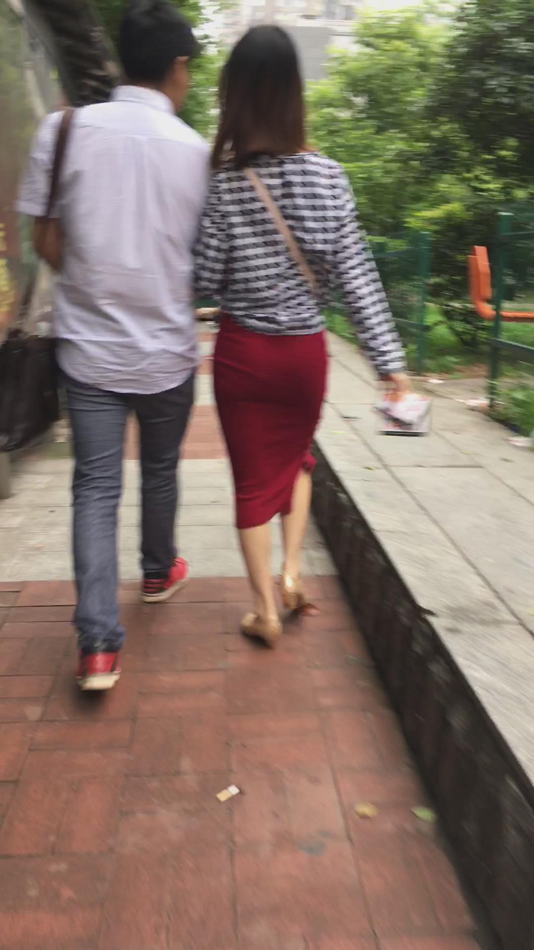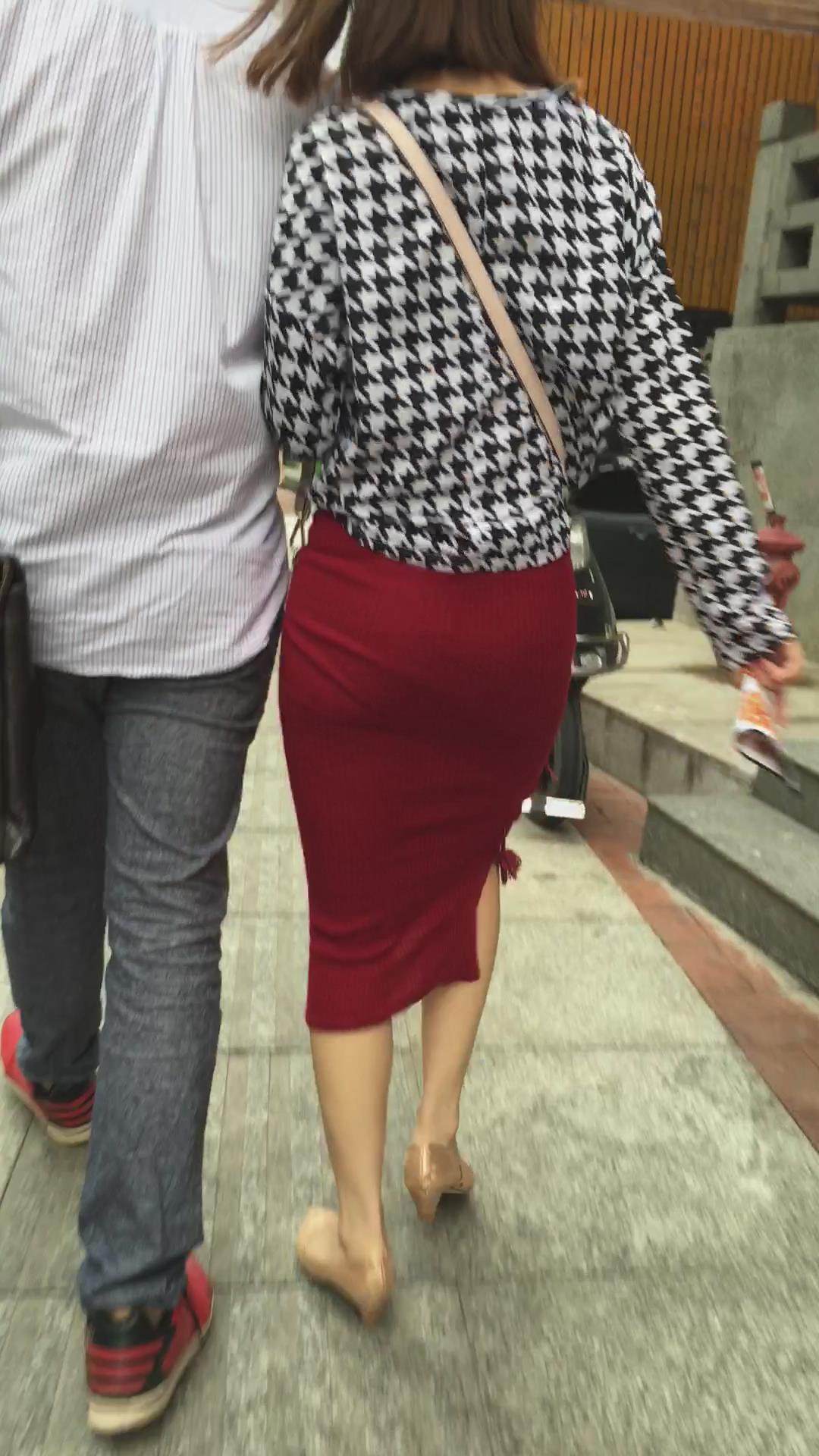 陪男友逛街的红色包臀裙丰满MM 编号2372