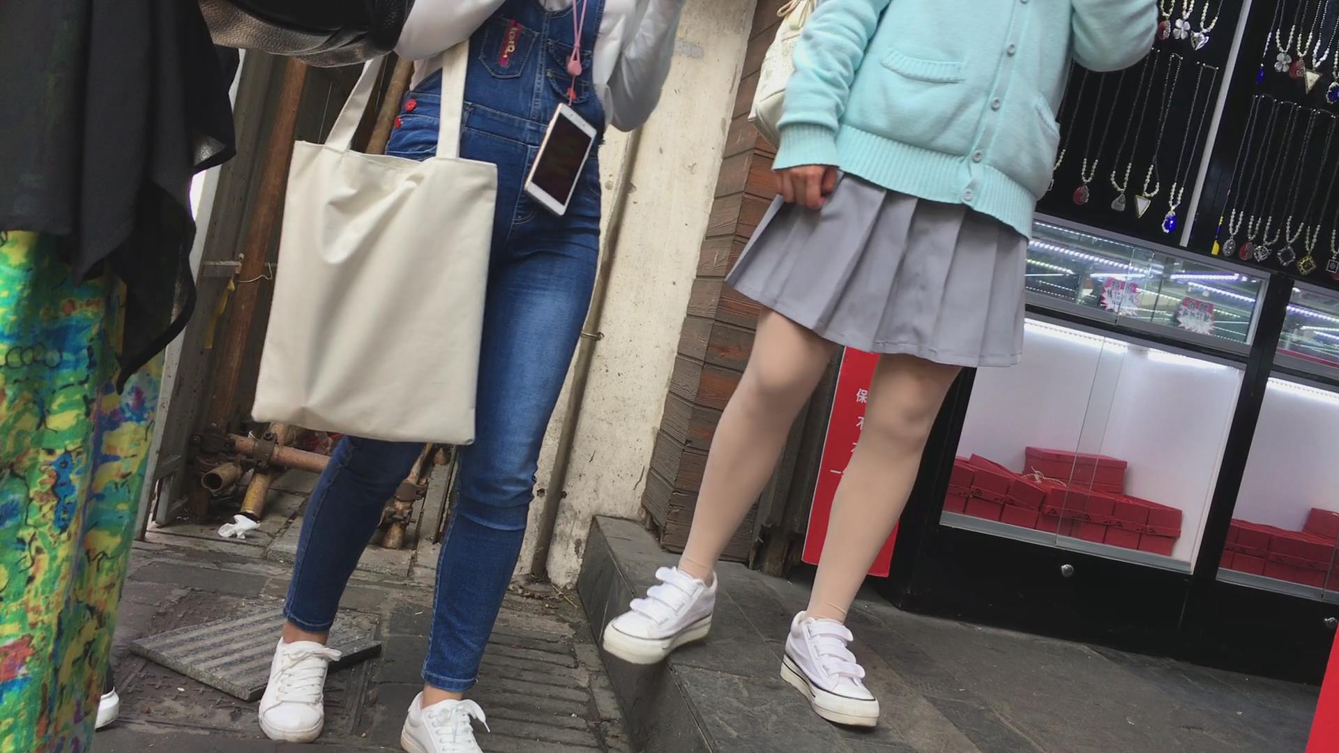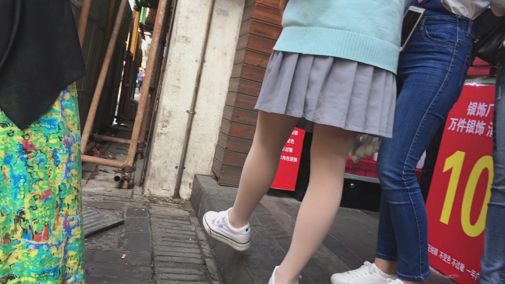 街拍短裙短腿肉丝袜帆布鞋清纯美眉 编号2383