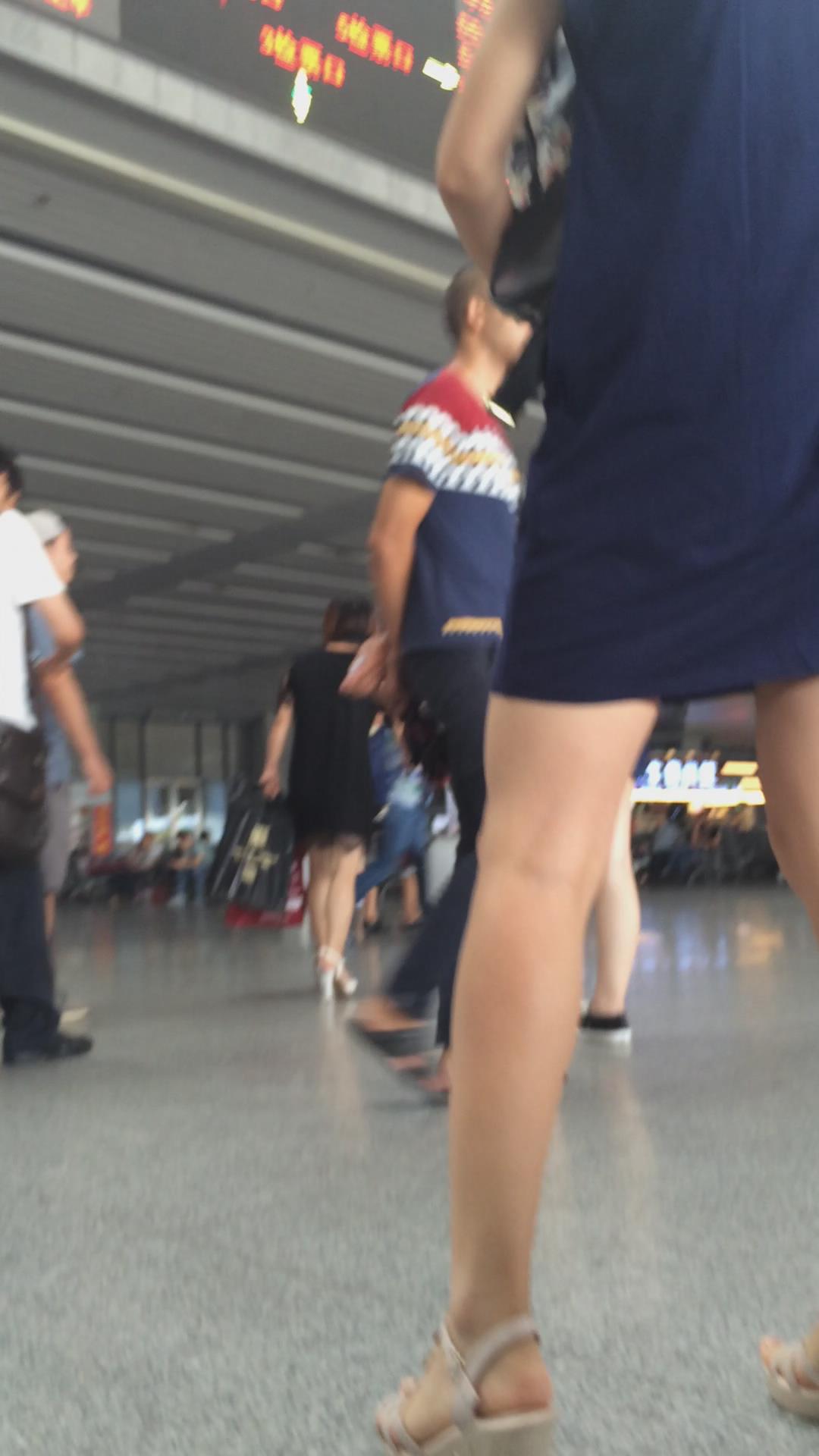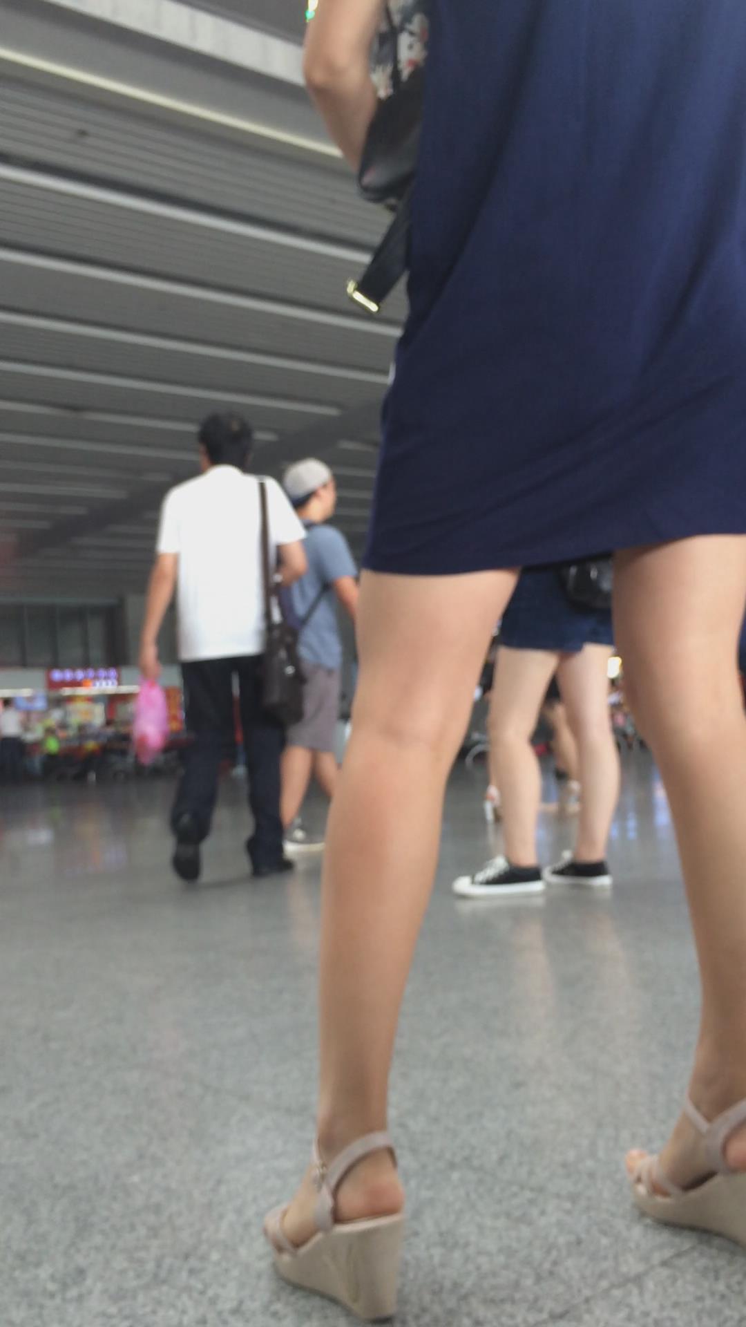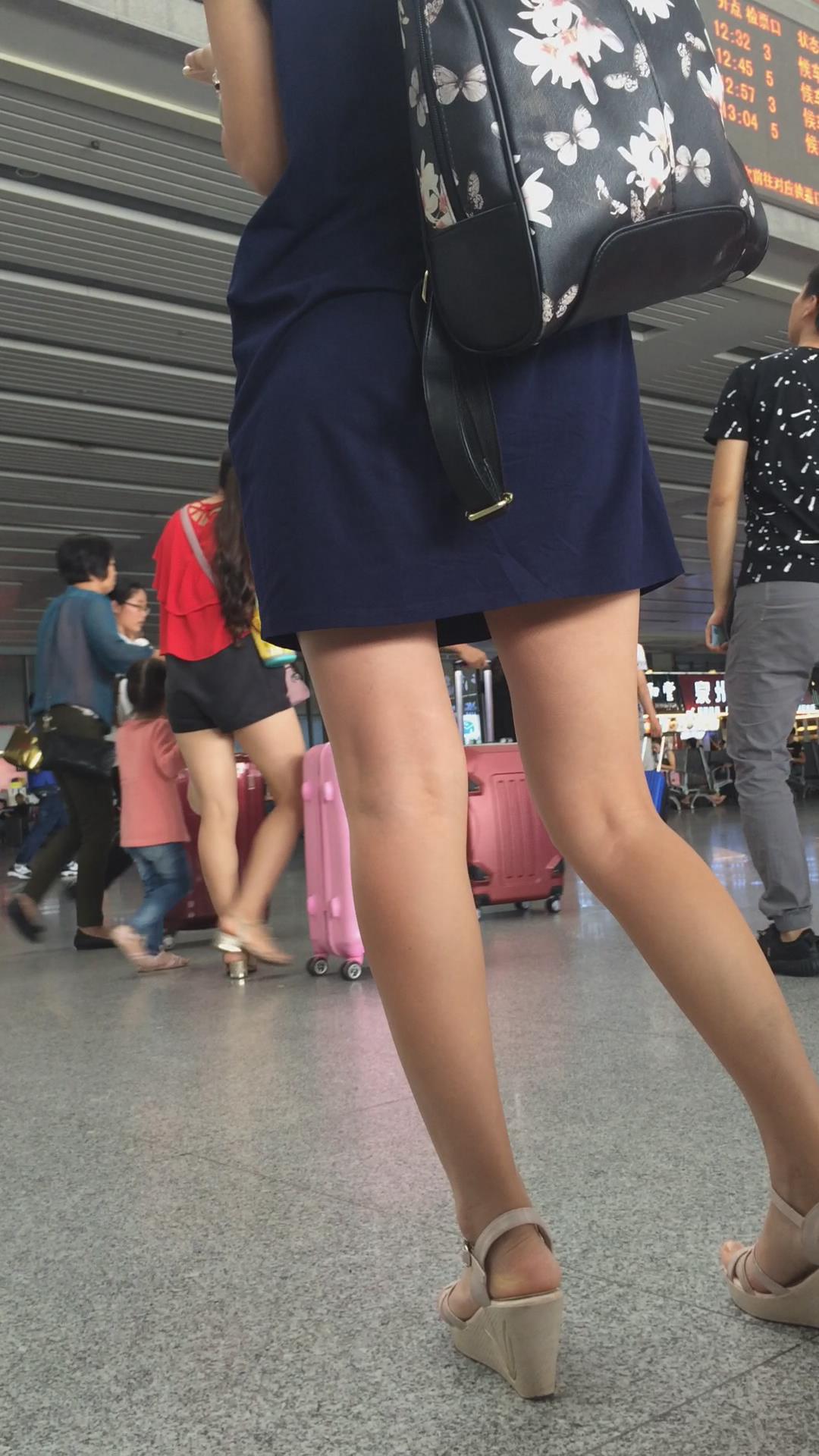 深蓝连衣裙光腿坡高跟美少妇 编号2390