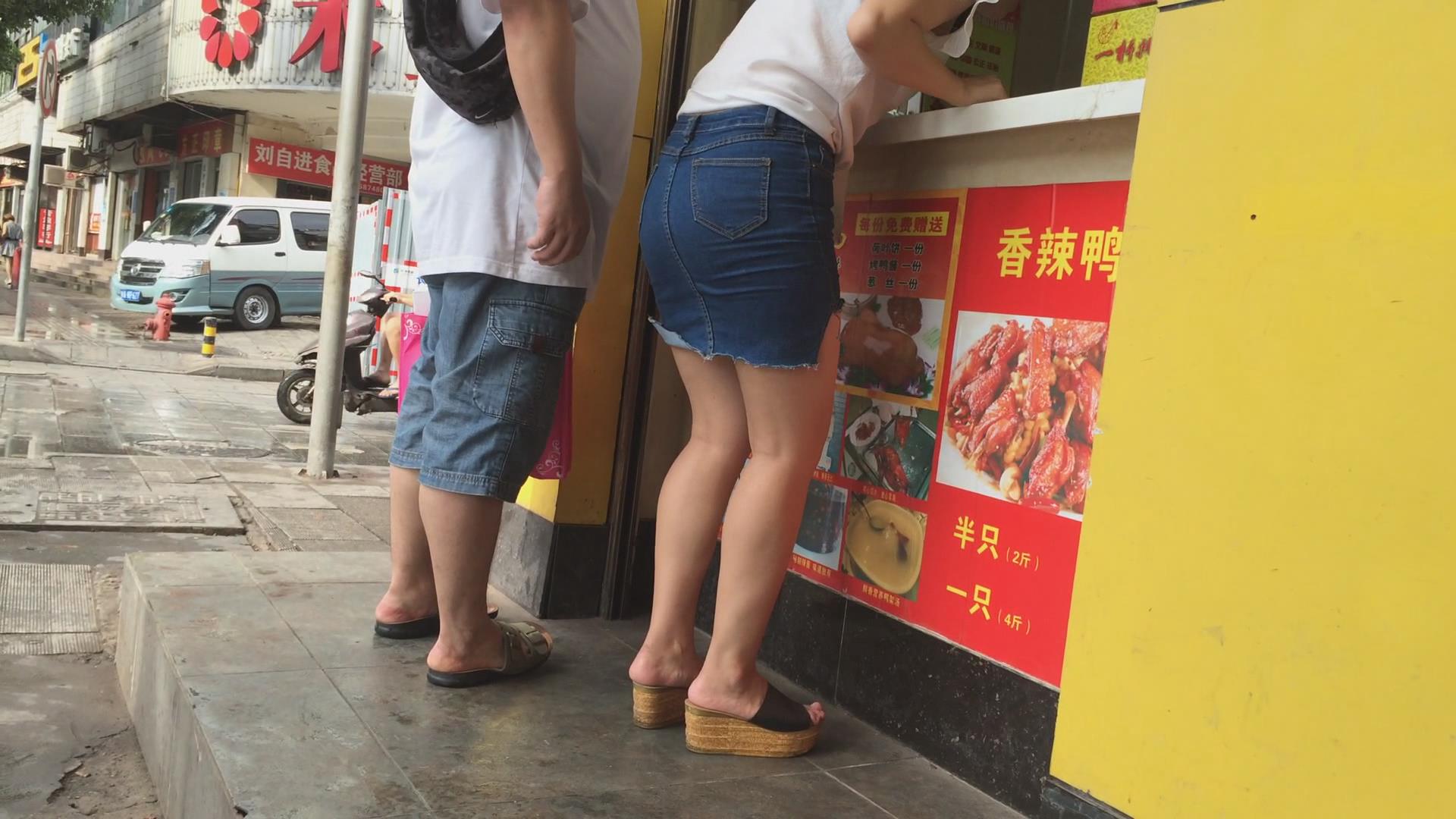 买绝味鸭脖的极品圆臀牛仔裙美女 编号2397