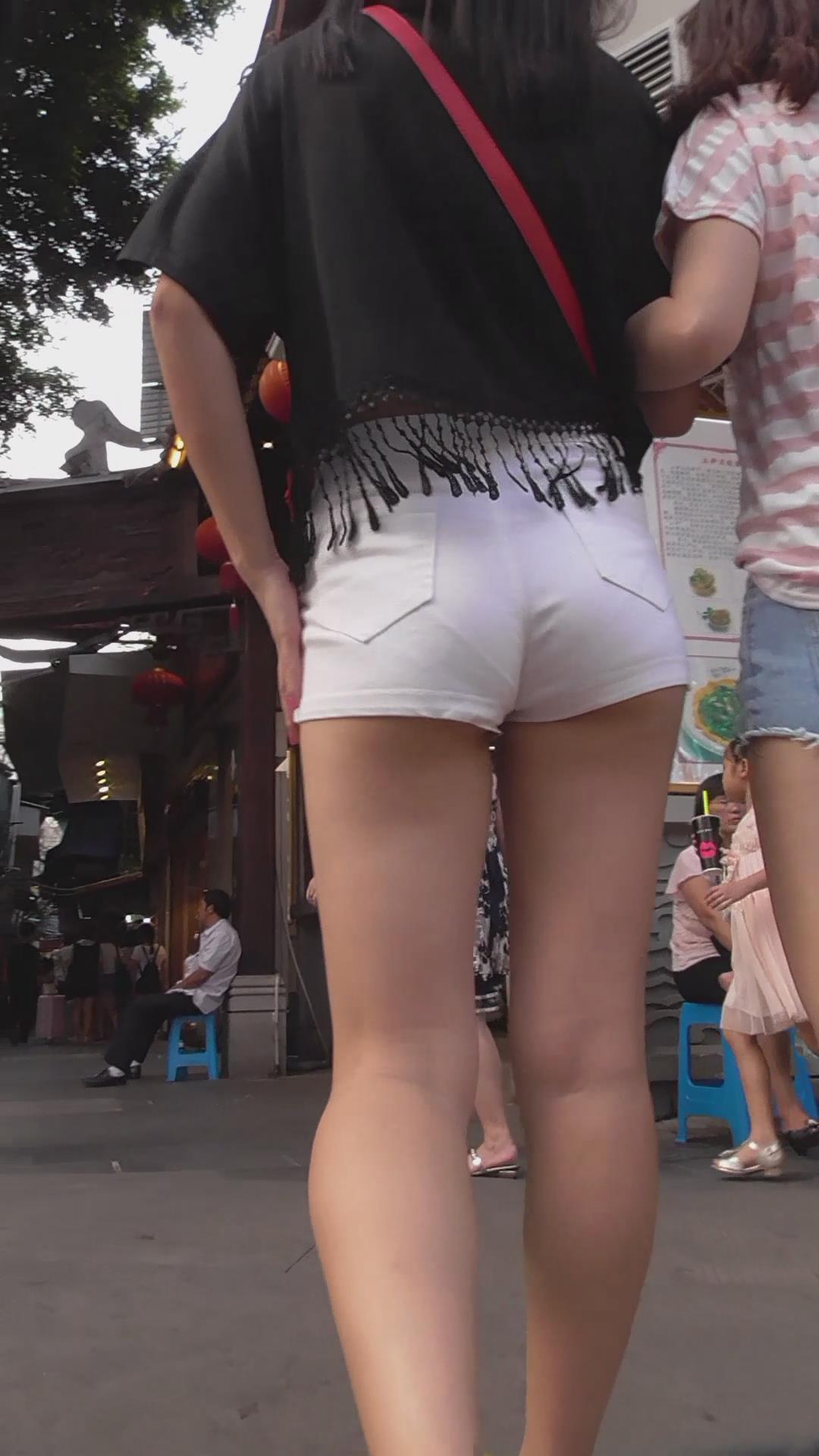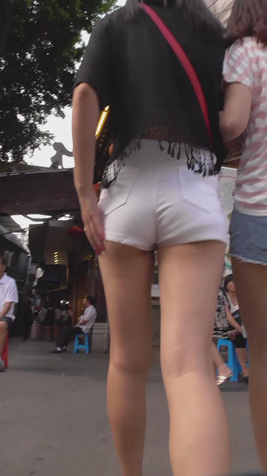 街拍美腿白色热裤美女,内内印痕清晰 编号4658