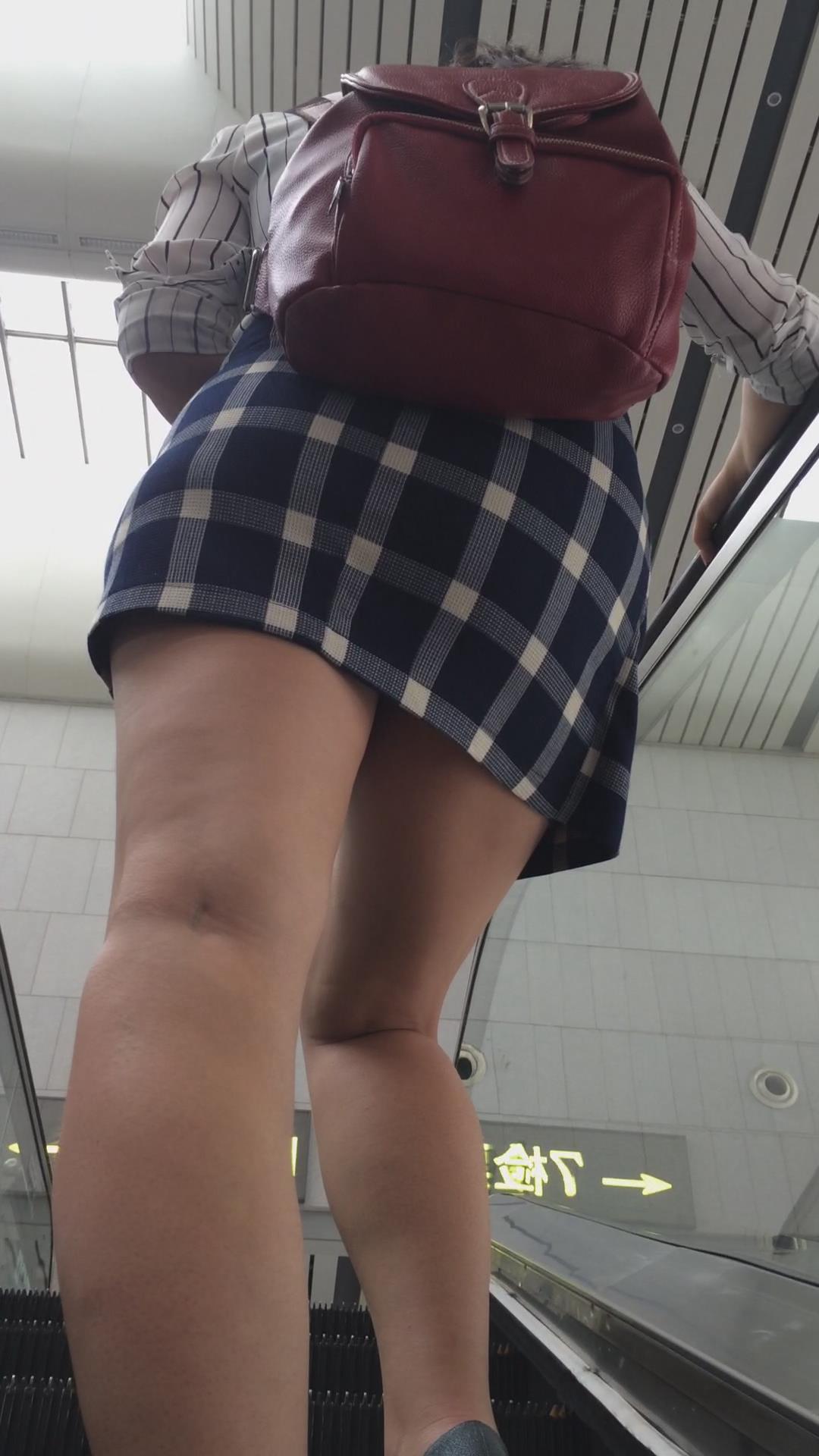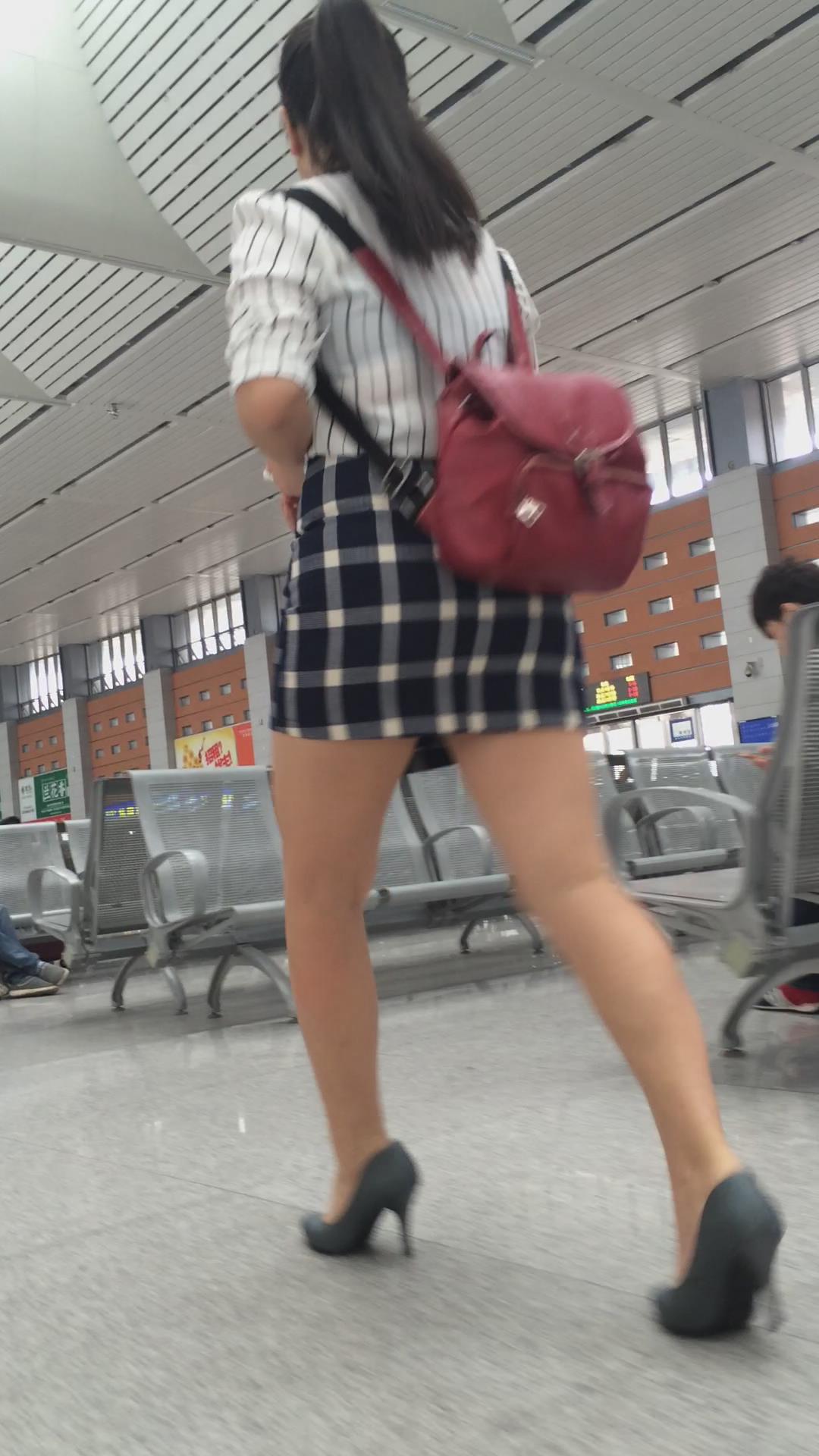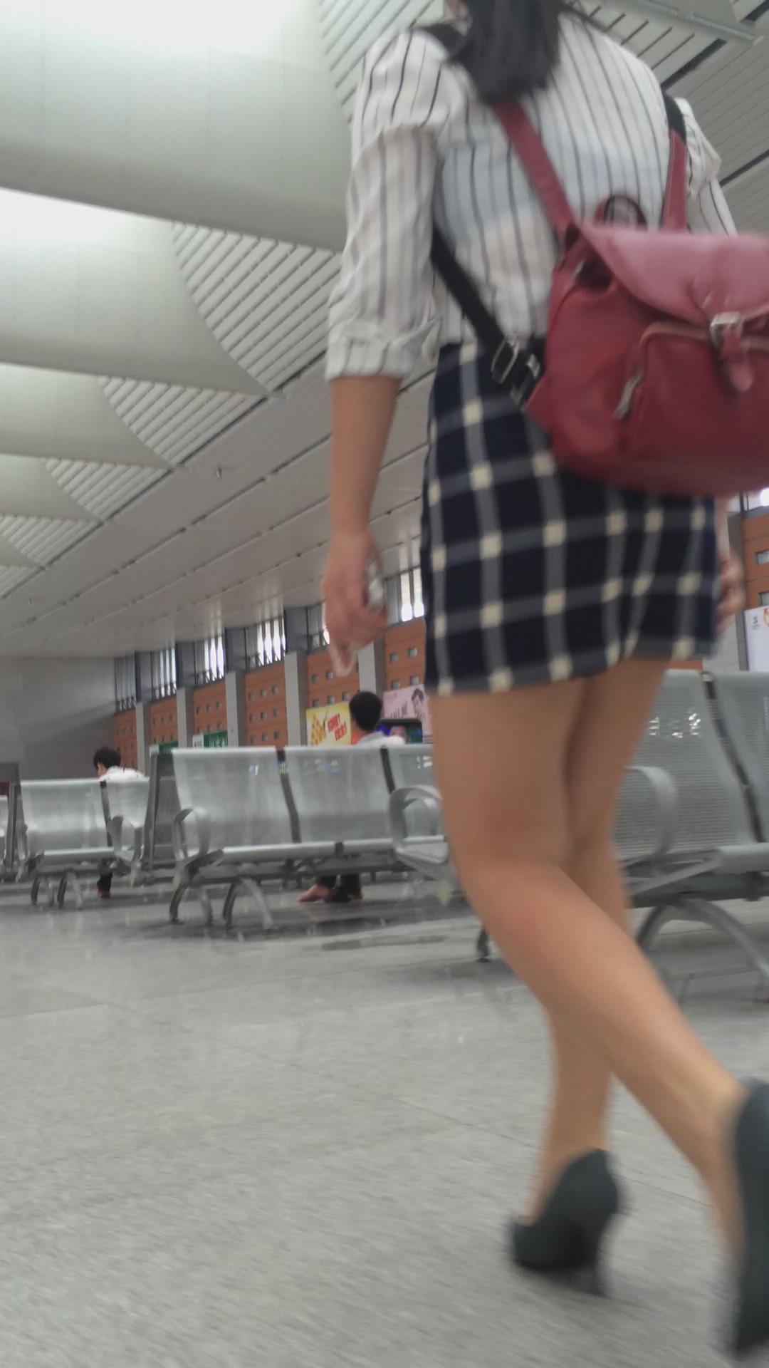 红色小背包格子短裙美女 编号2419