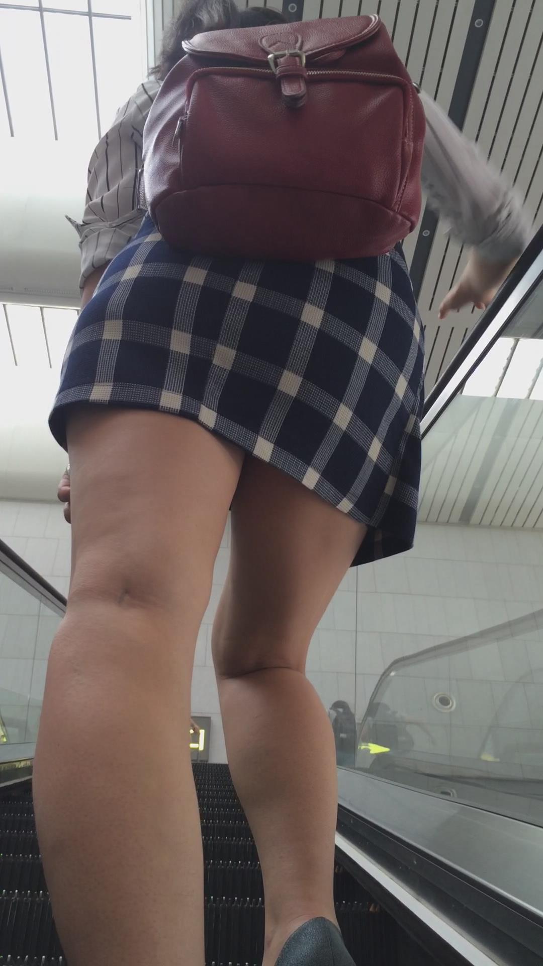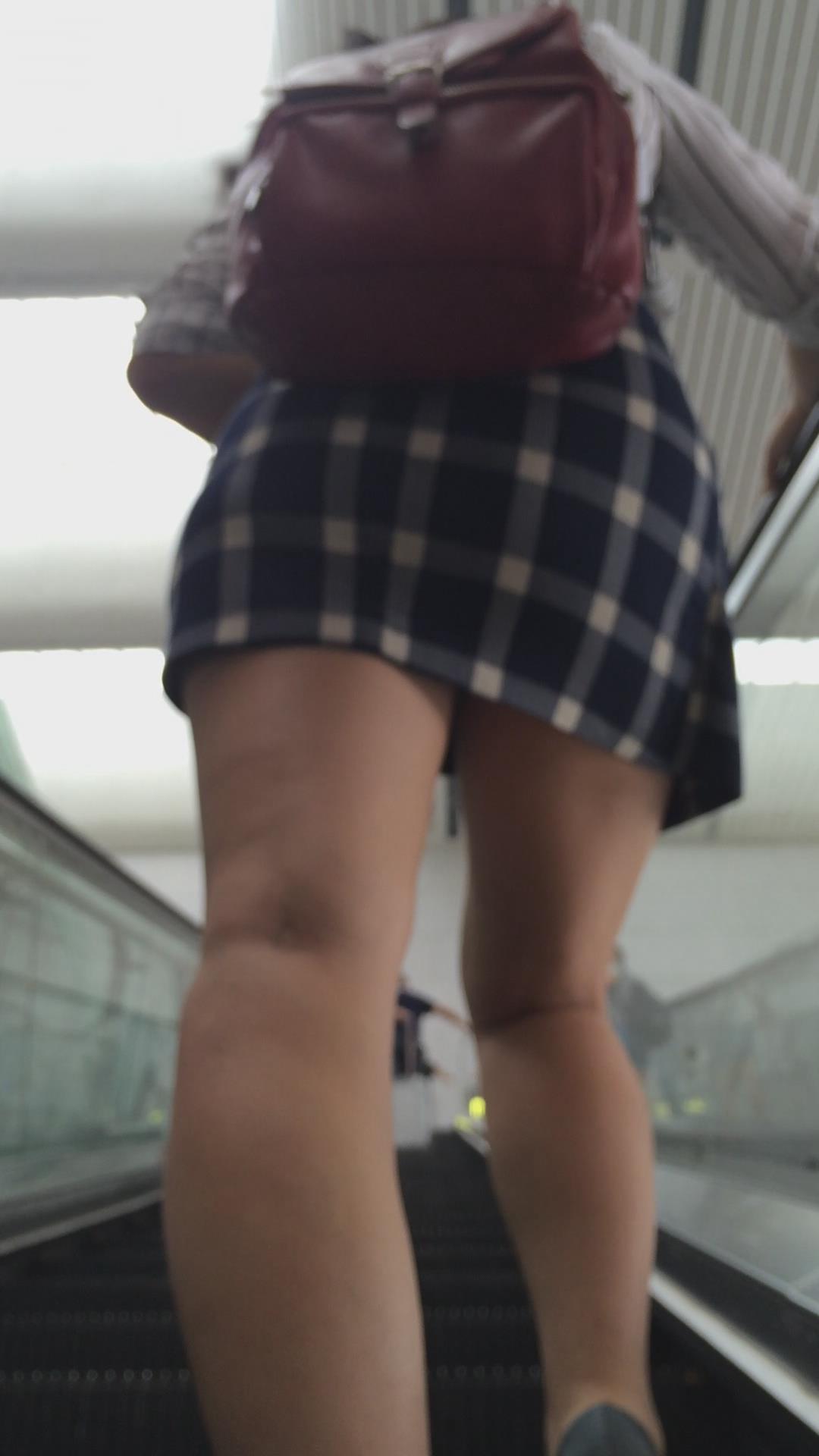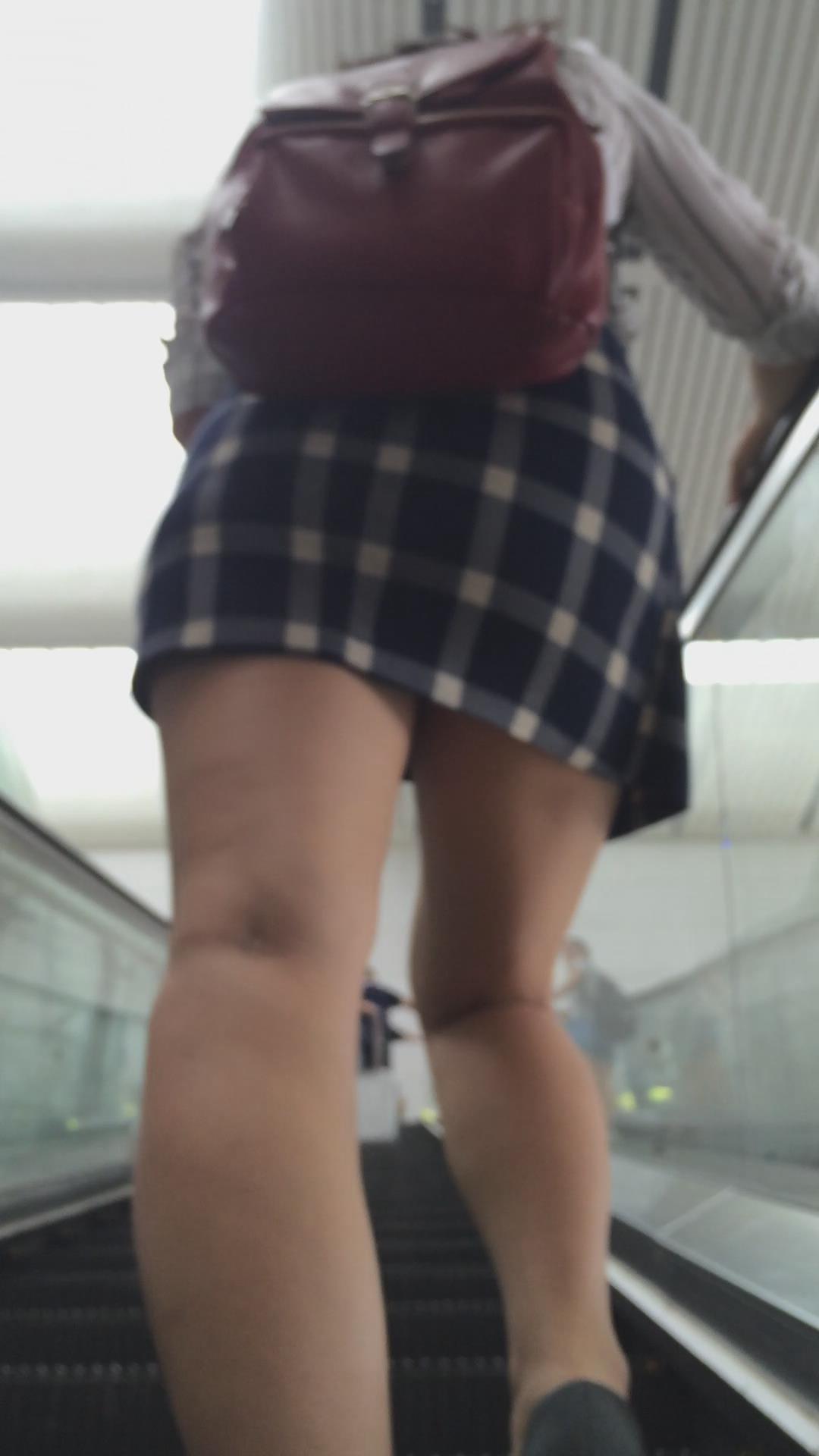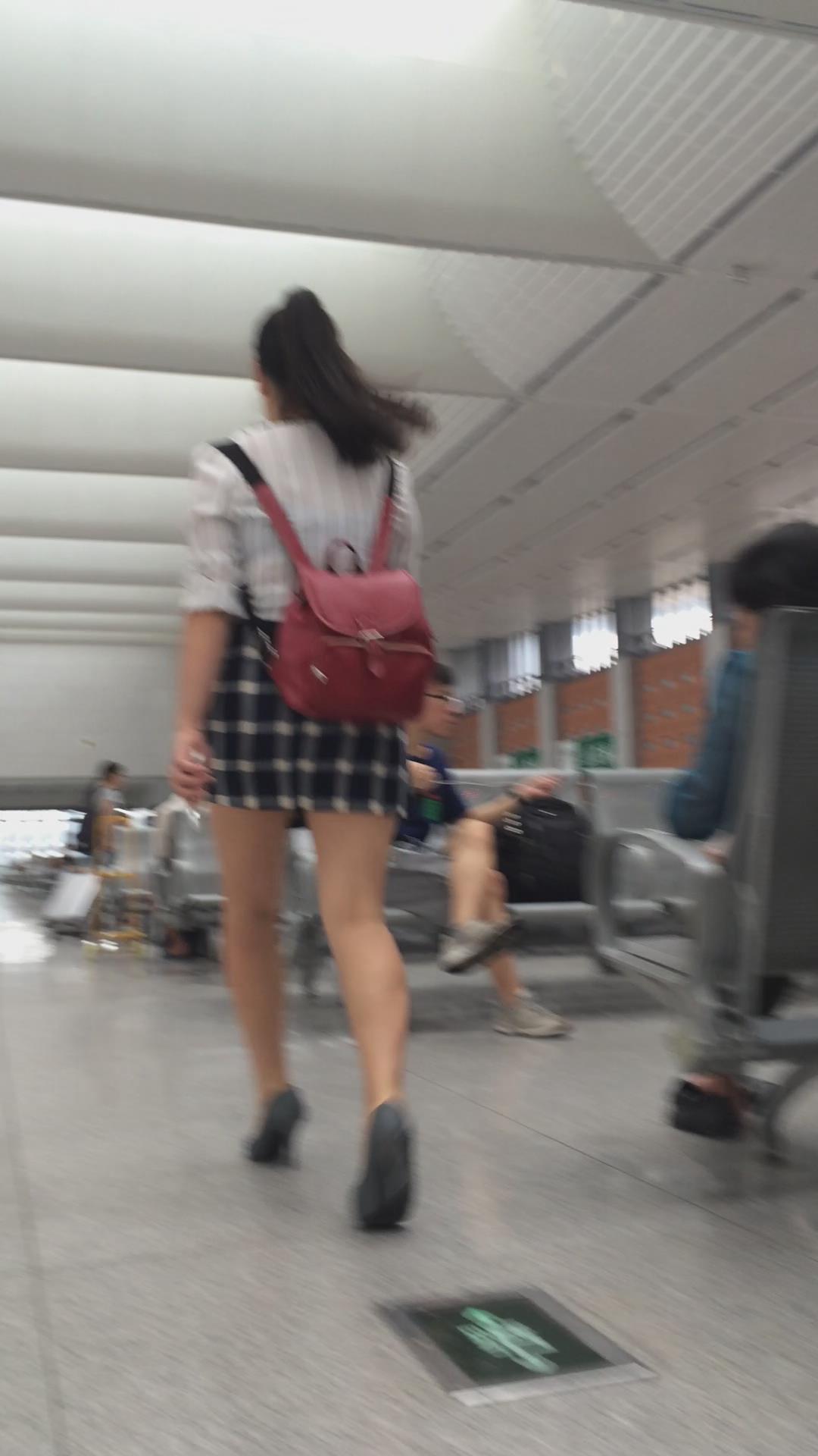 红色小背包格子短裙美女 编号2419