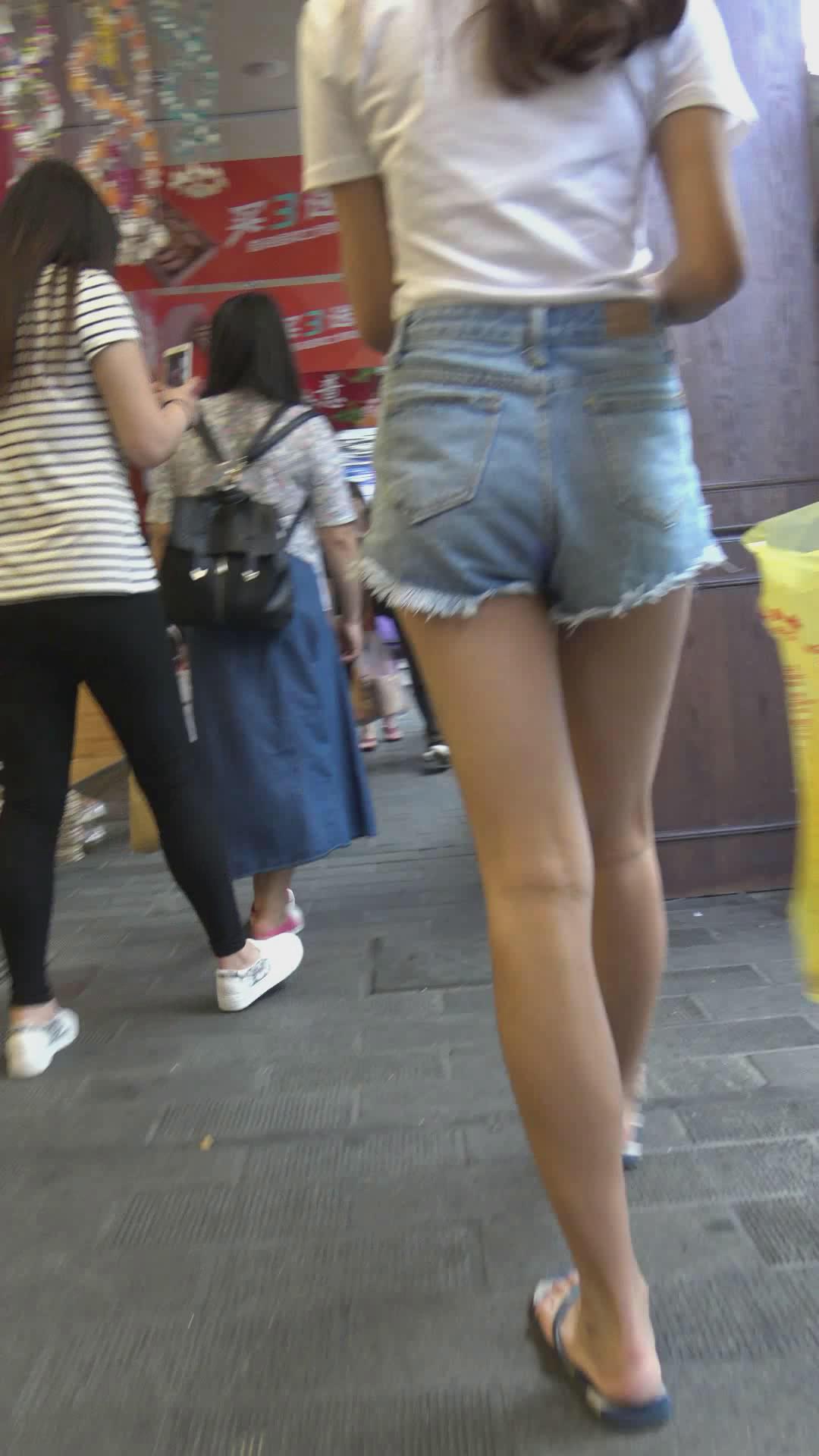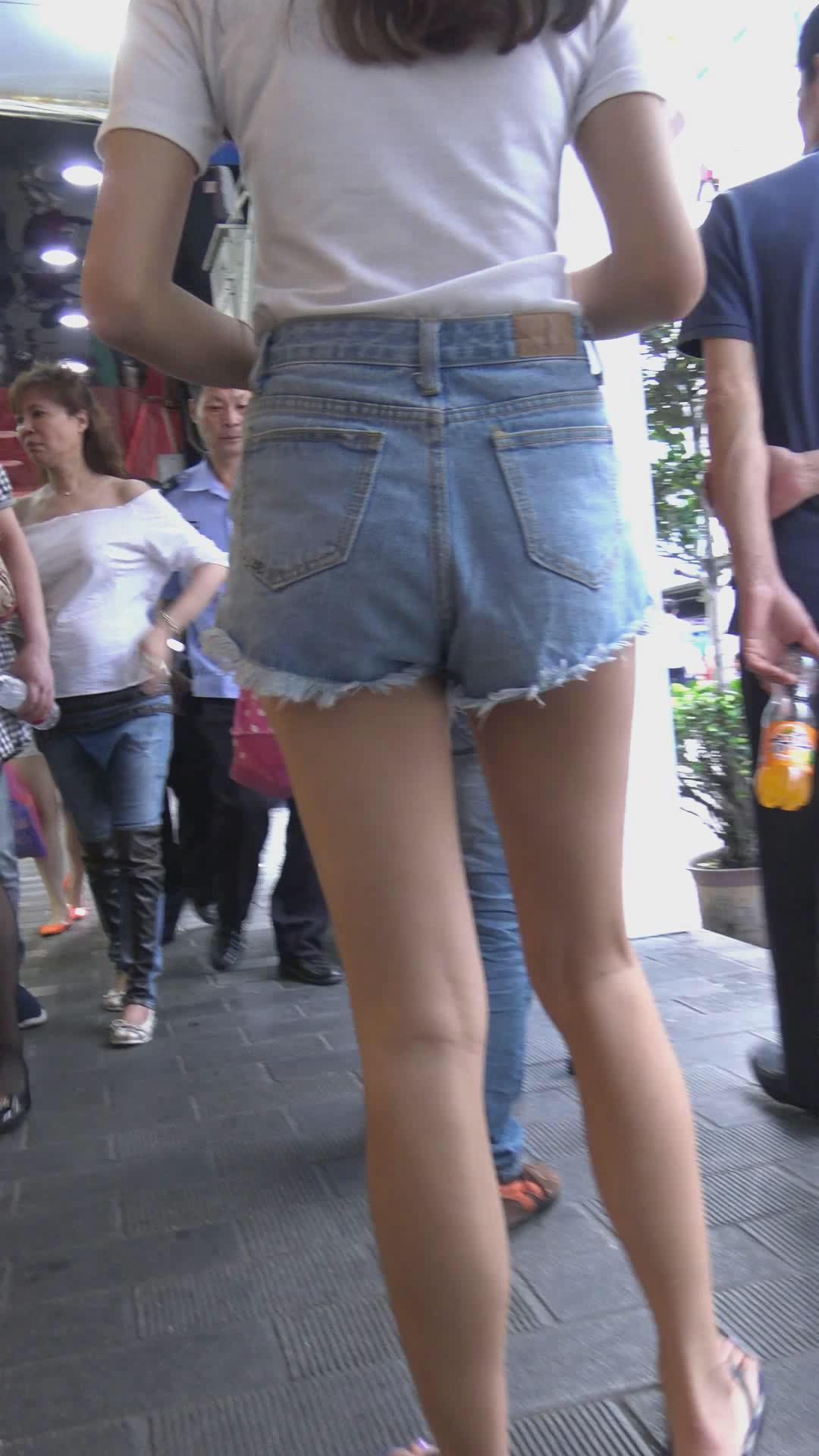 街拍牛仔热裤青春小美女 编号4661