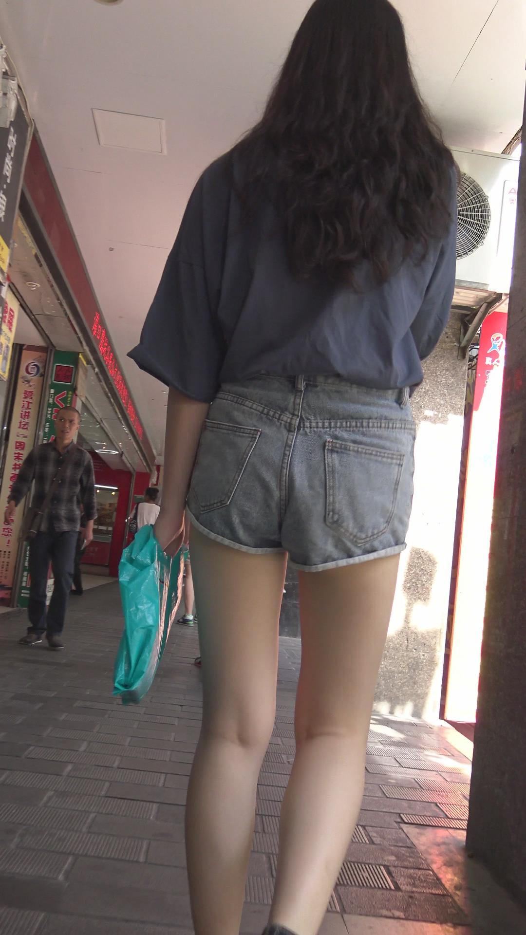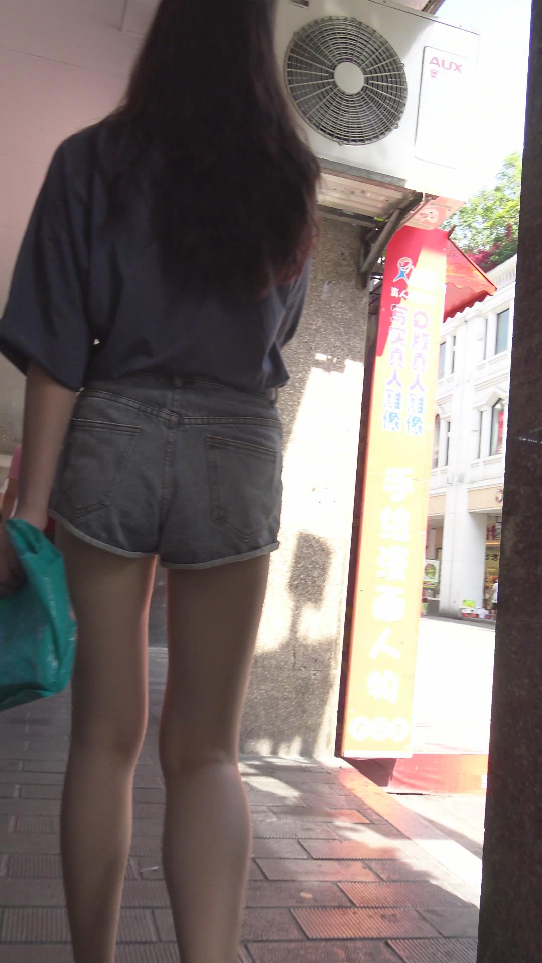 街拍超短牛仔热裤美腿清纯小美女 编号4666