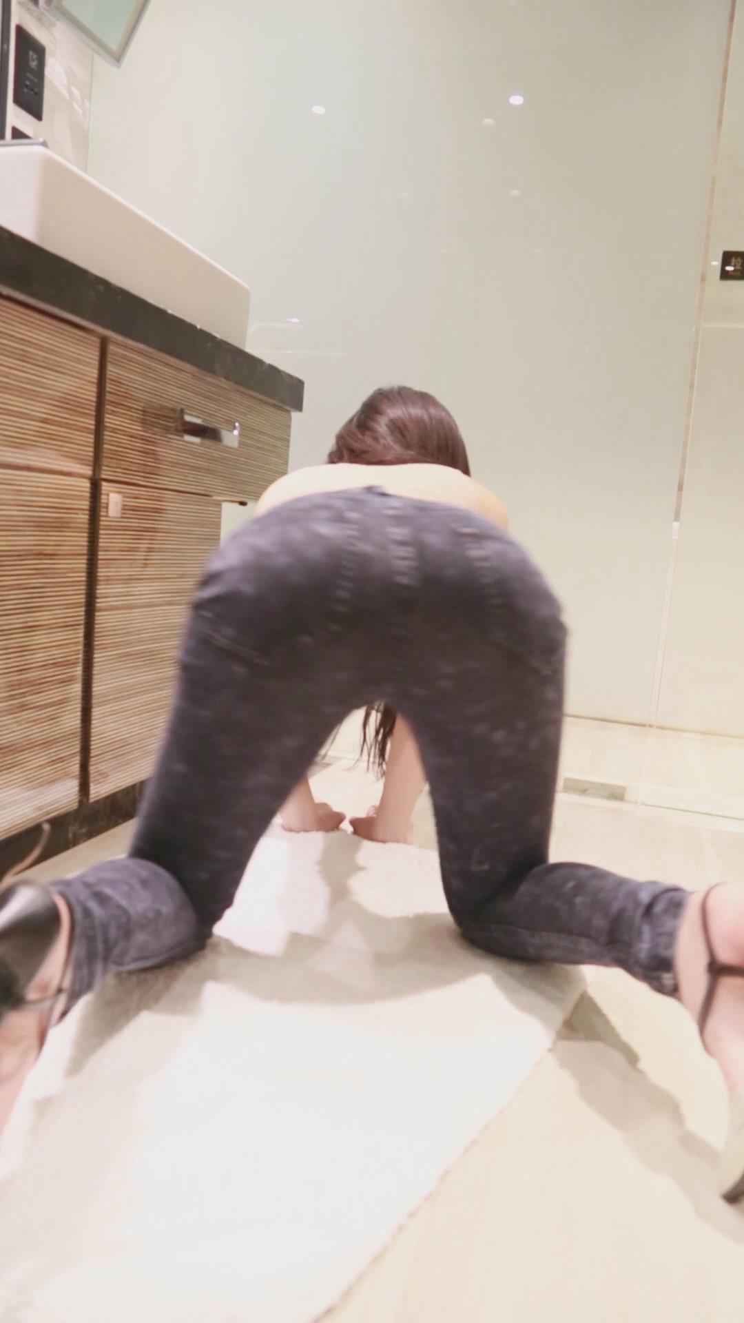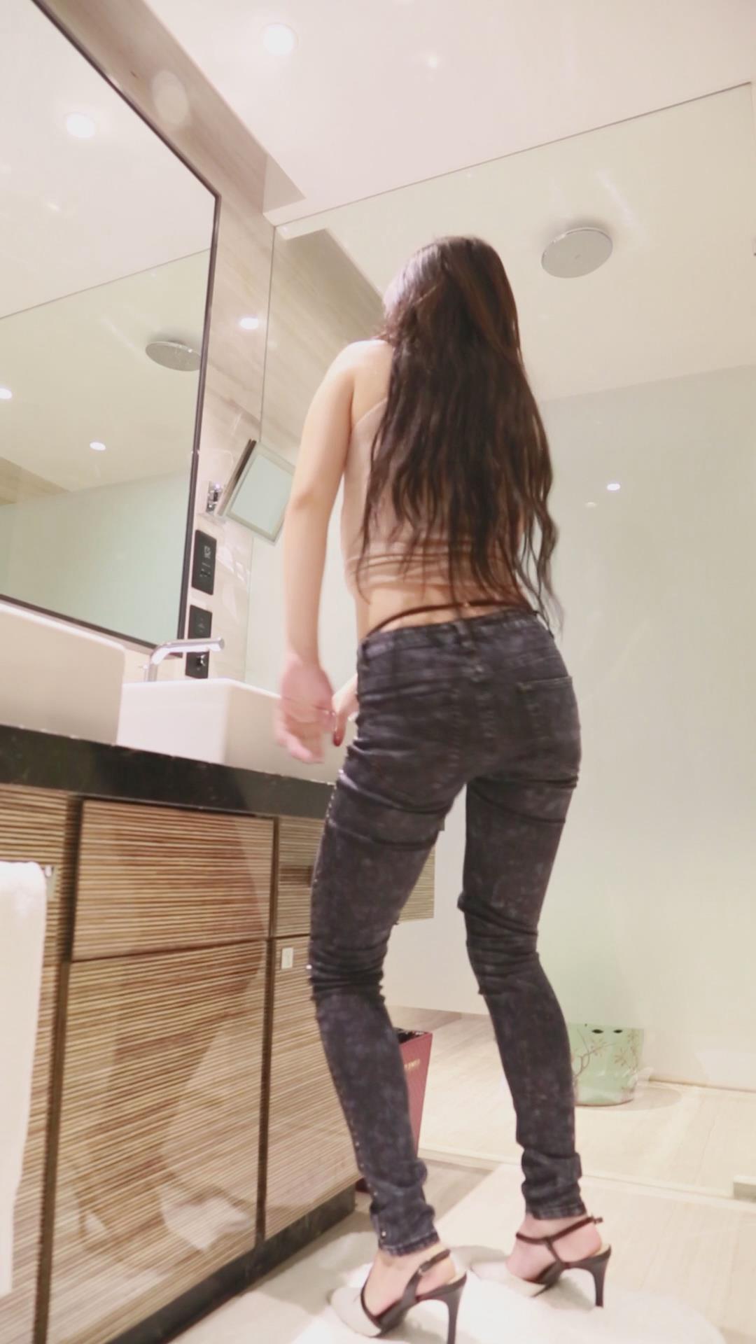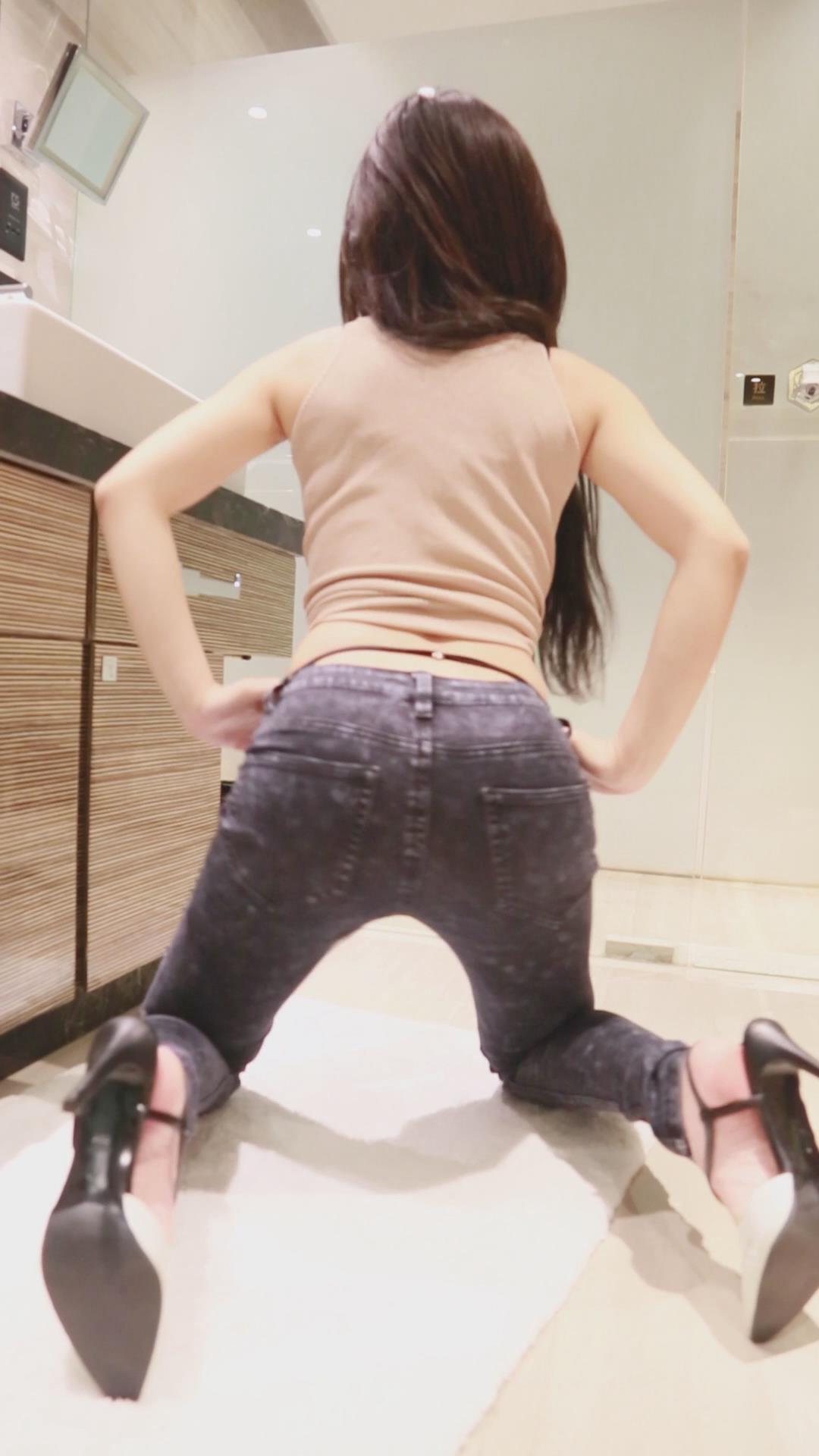 紧身牛仔裤美女卫生间劈叉 编号6707