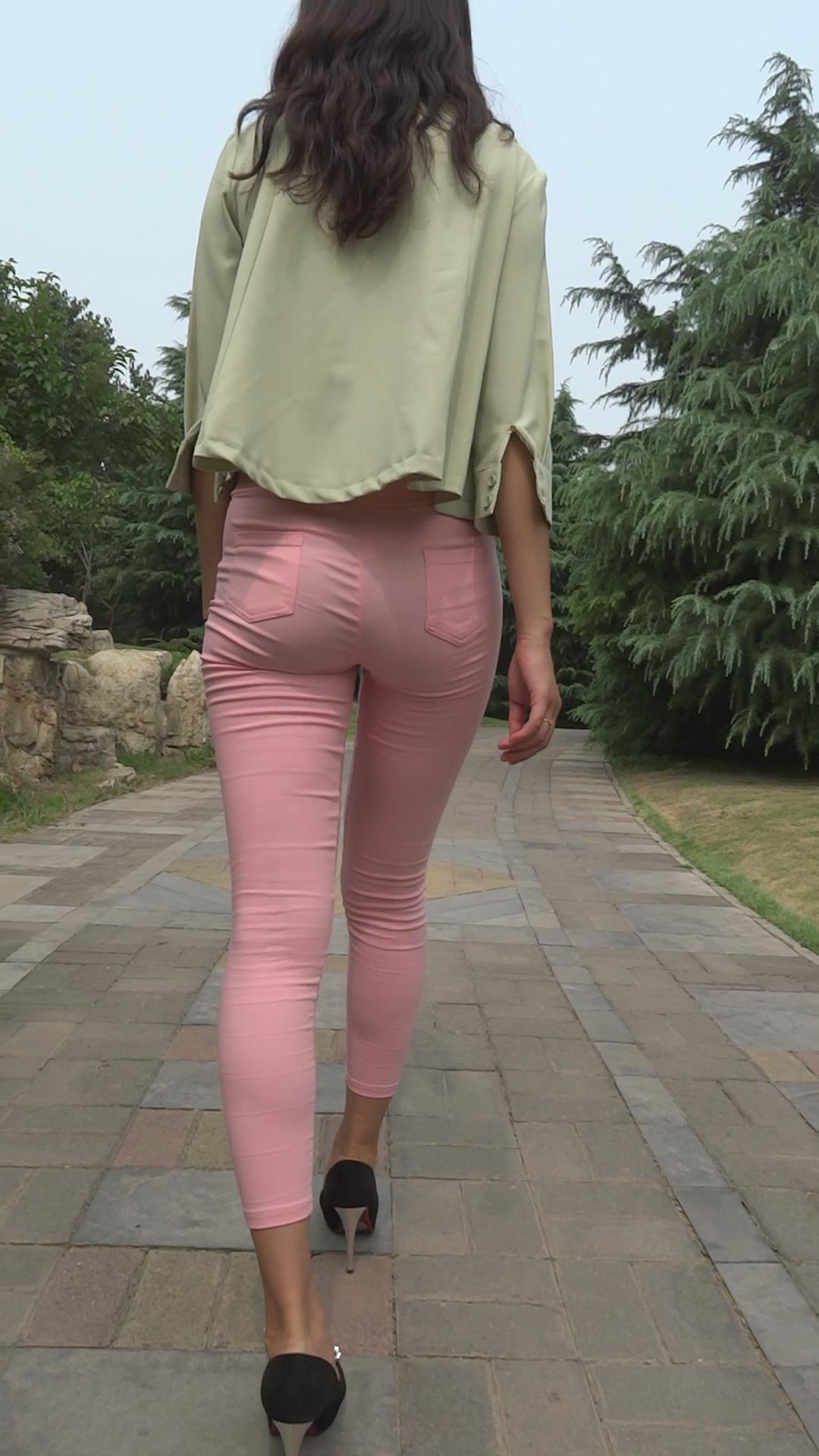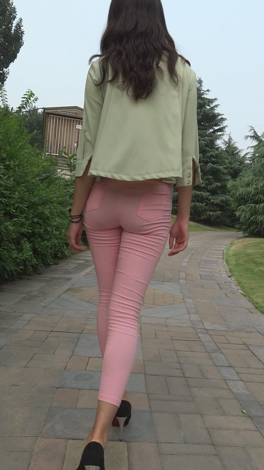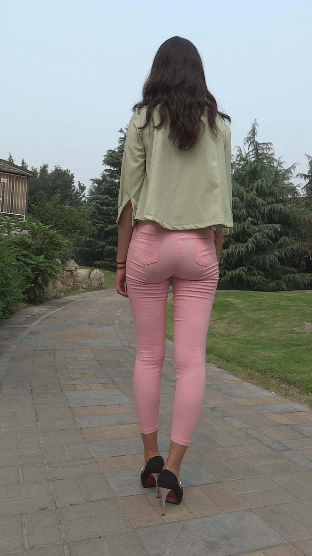 粉色紧身裤美臀美女模特外拍视频 编号6753