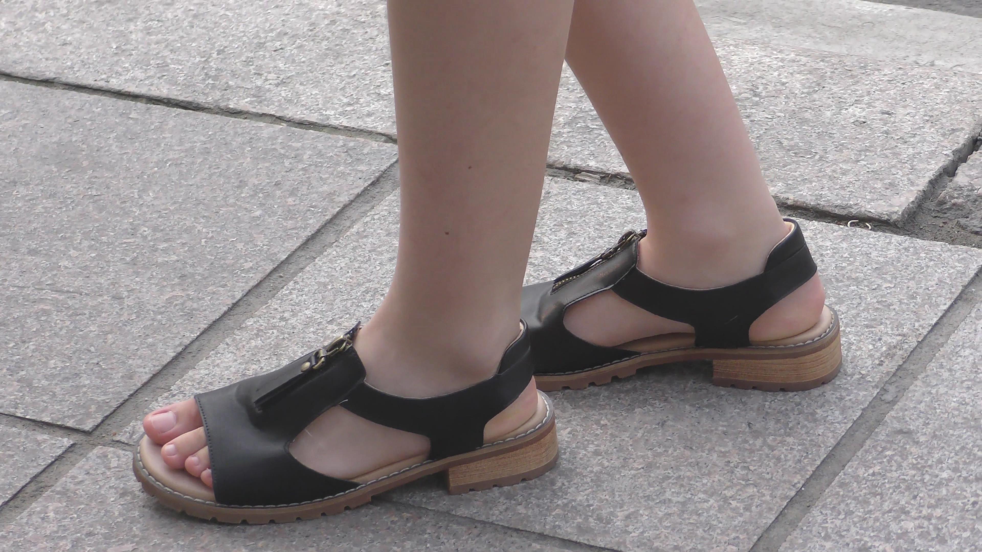 4k-极品干净玉足凉鞋街拍美足 编号6612