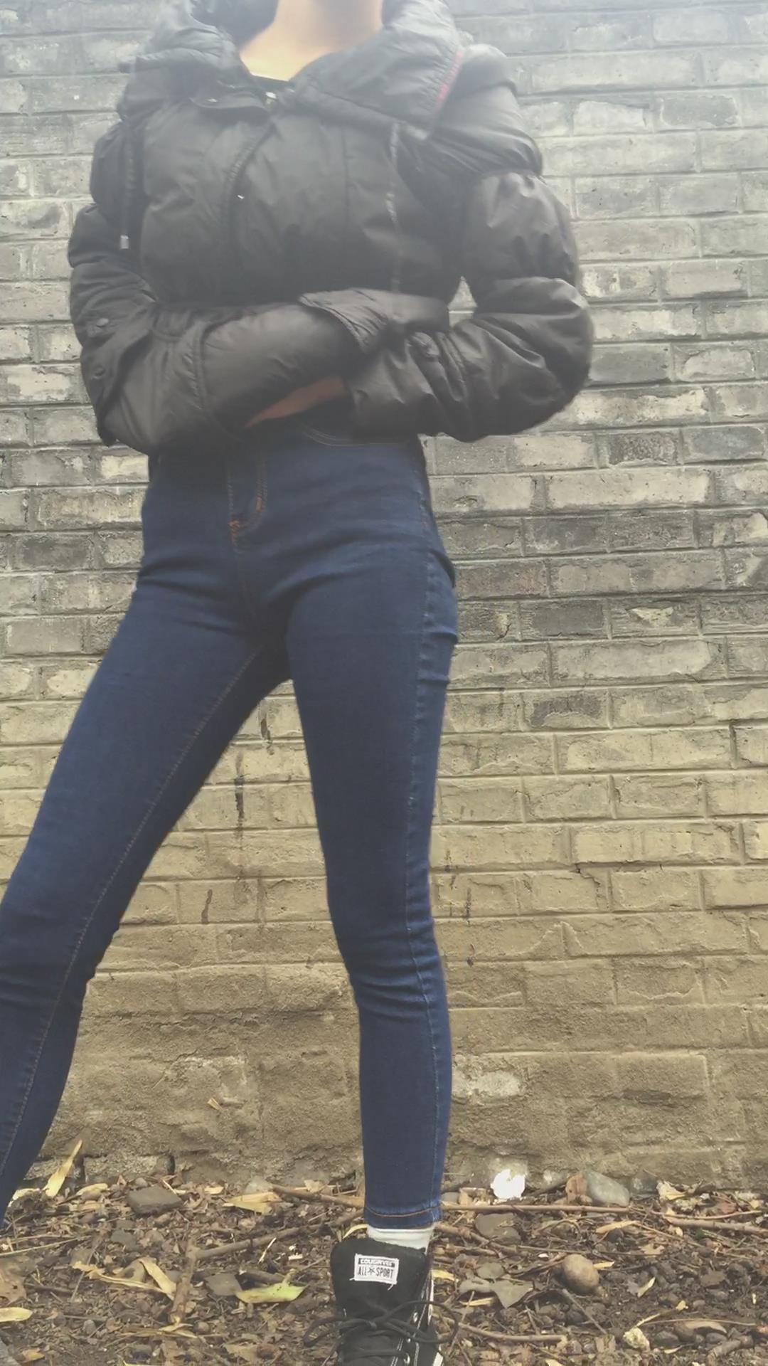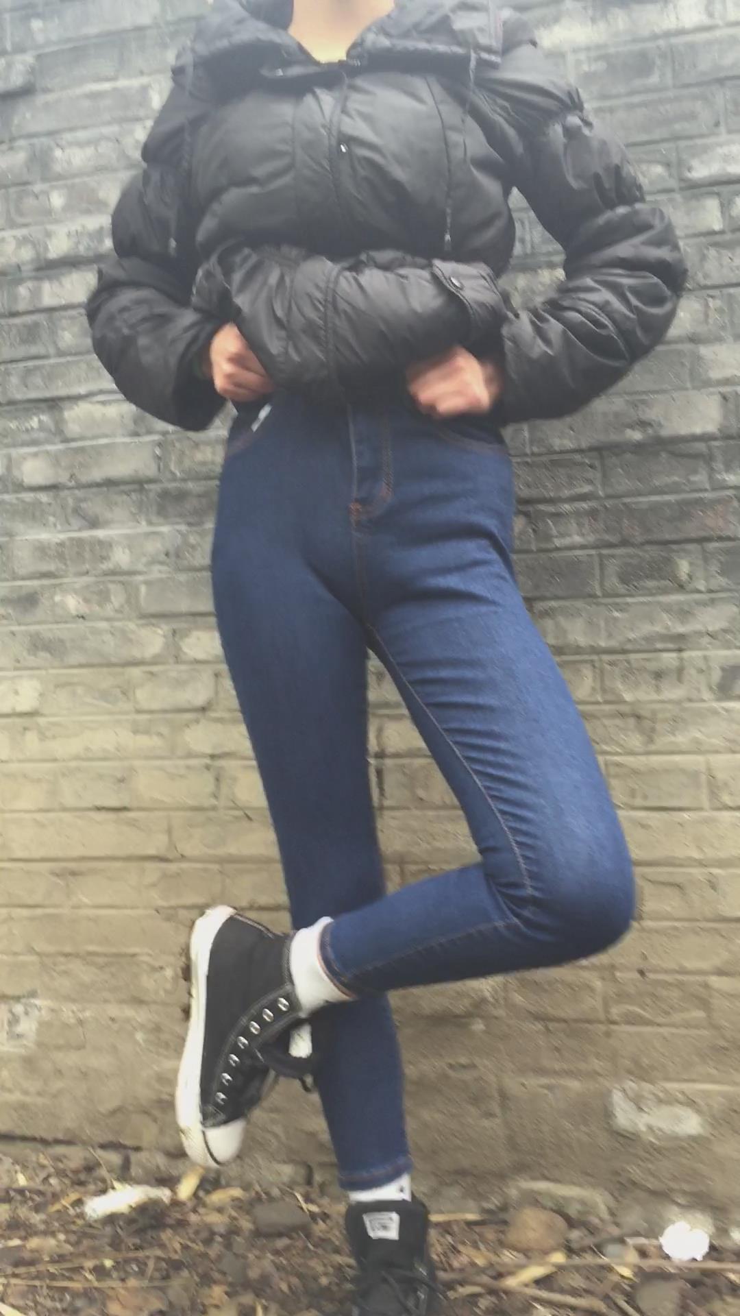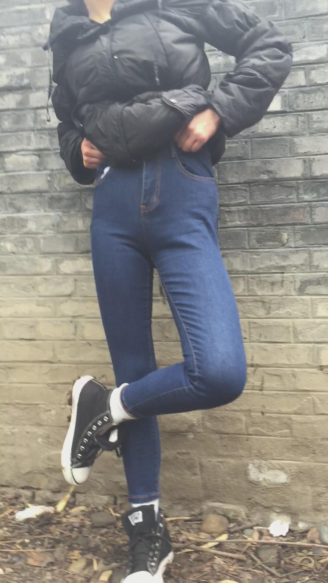 墙角摆出各种姿势的紧身蓝牛学姐 编号6831