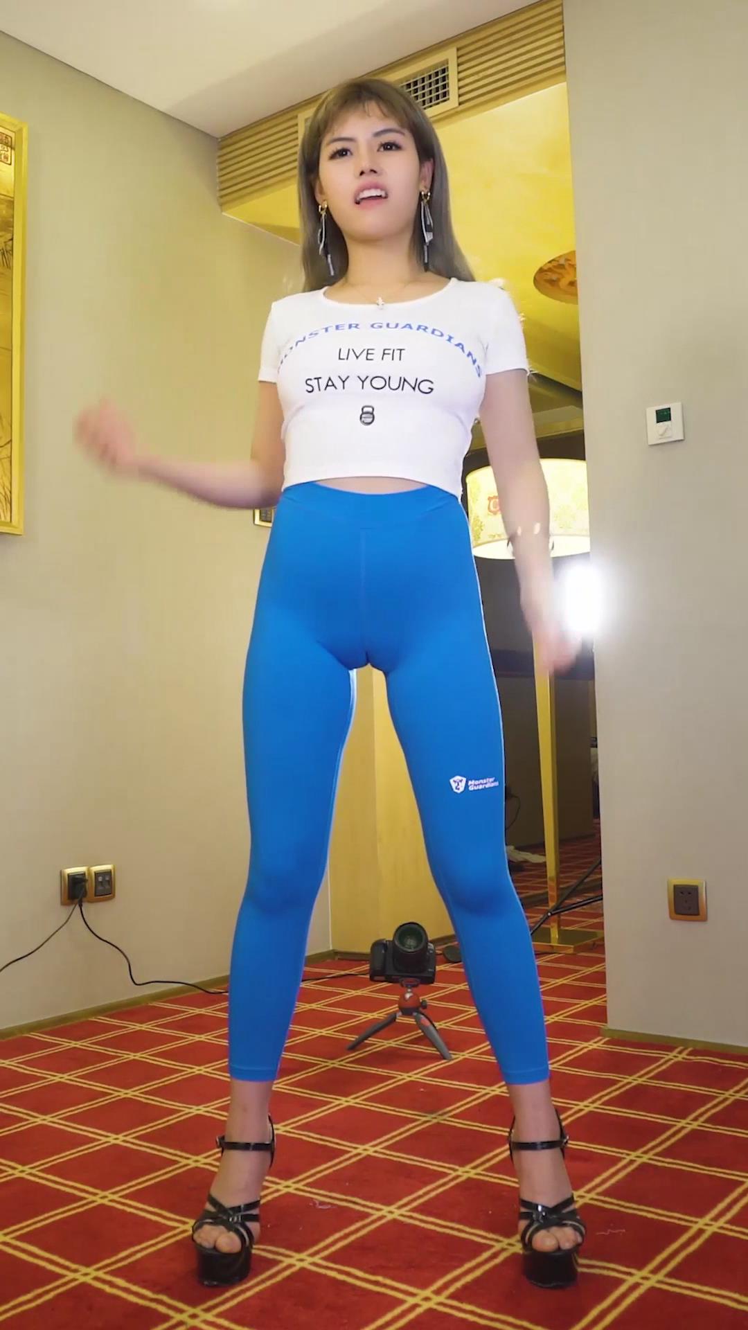 超级蓝色紧身裤肥妹三角区骆驼趾美女热舞 编号6846