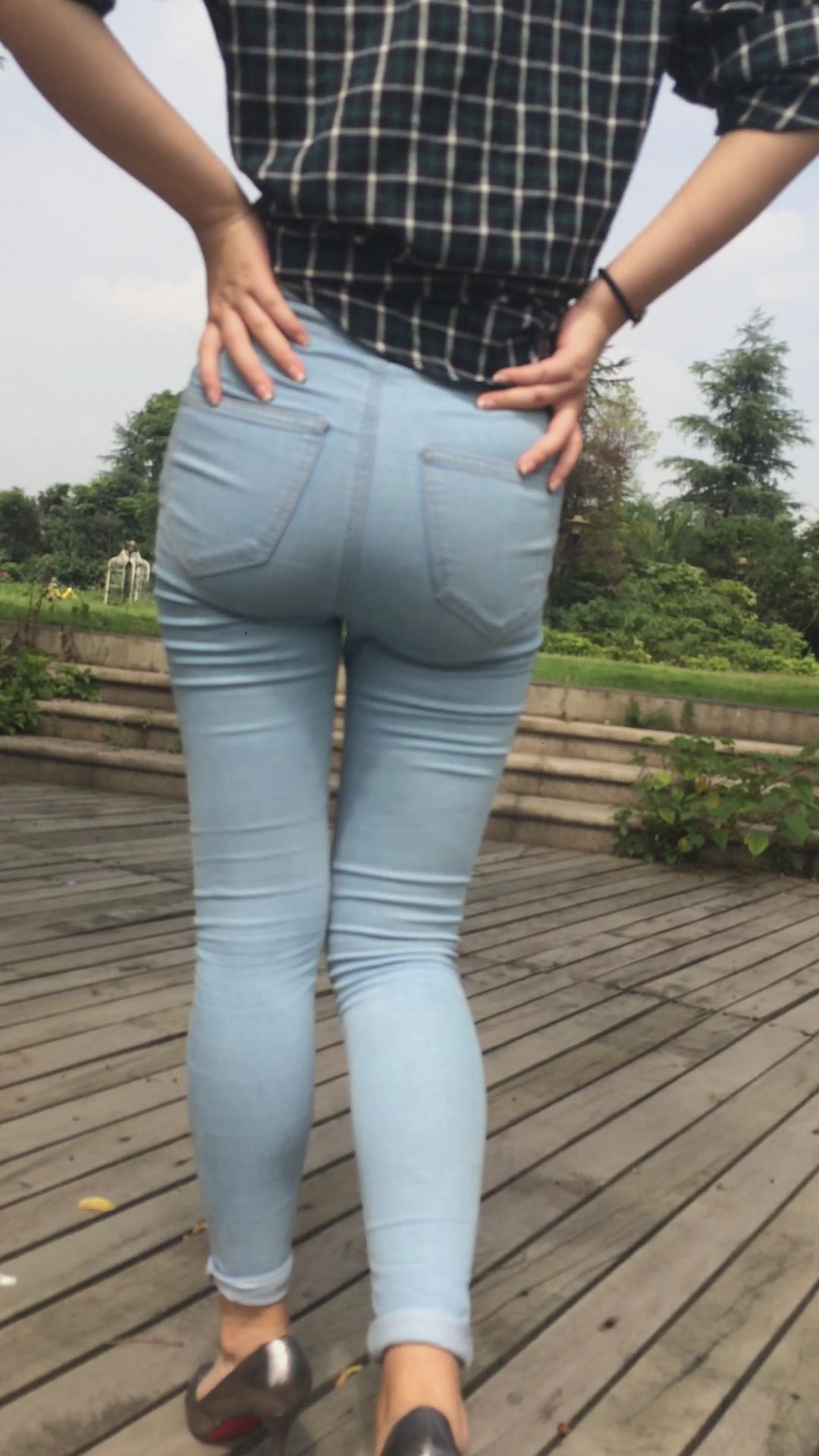 极品紧身牛仔裤圆臀格子衫美丽学姐外拍视频第二集 编号6848