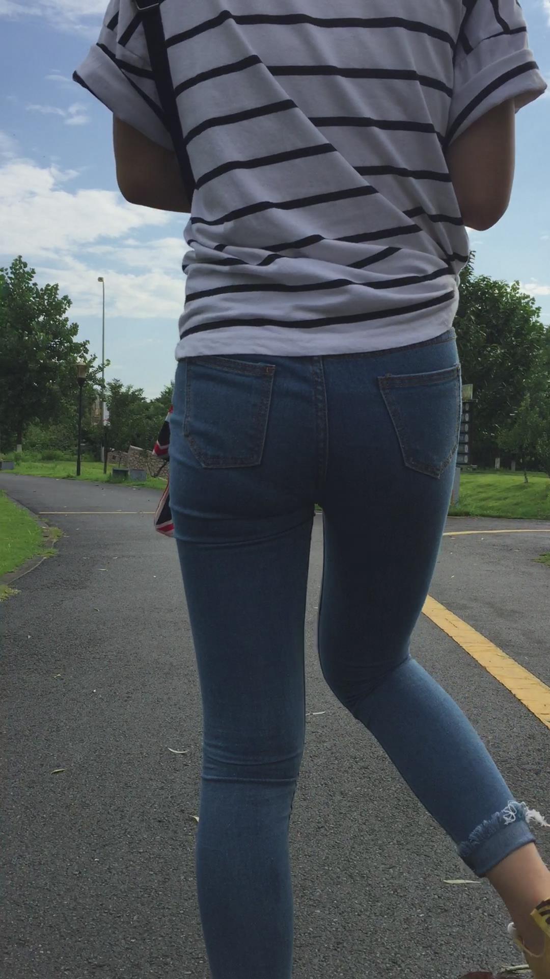 条纹T恤衫紧身蓝牛学妹外拍视频第四集 编号6850