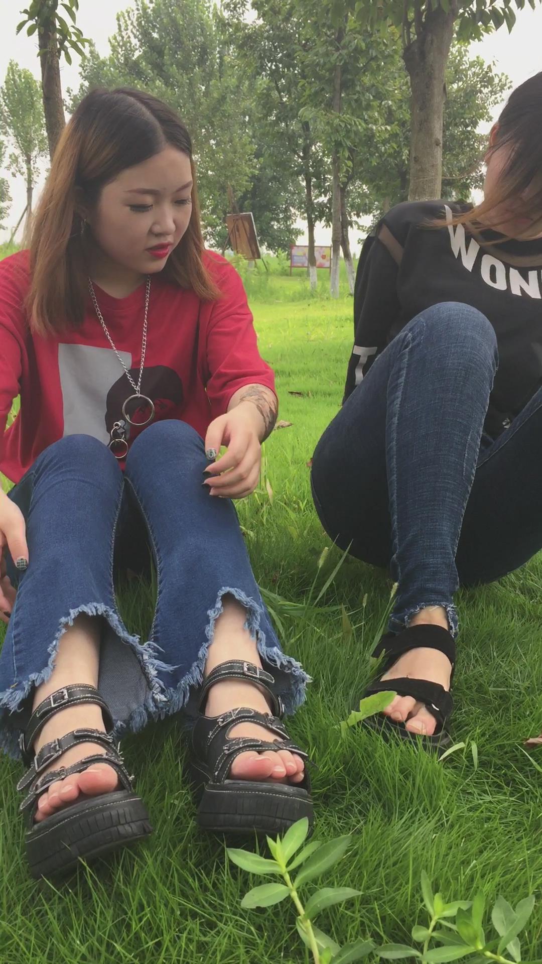 紧身蓝色牛仔裤姐妹公园模拍视频第二集 编号6854