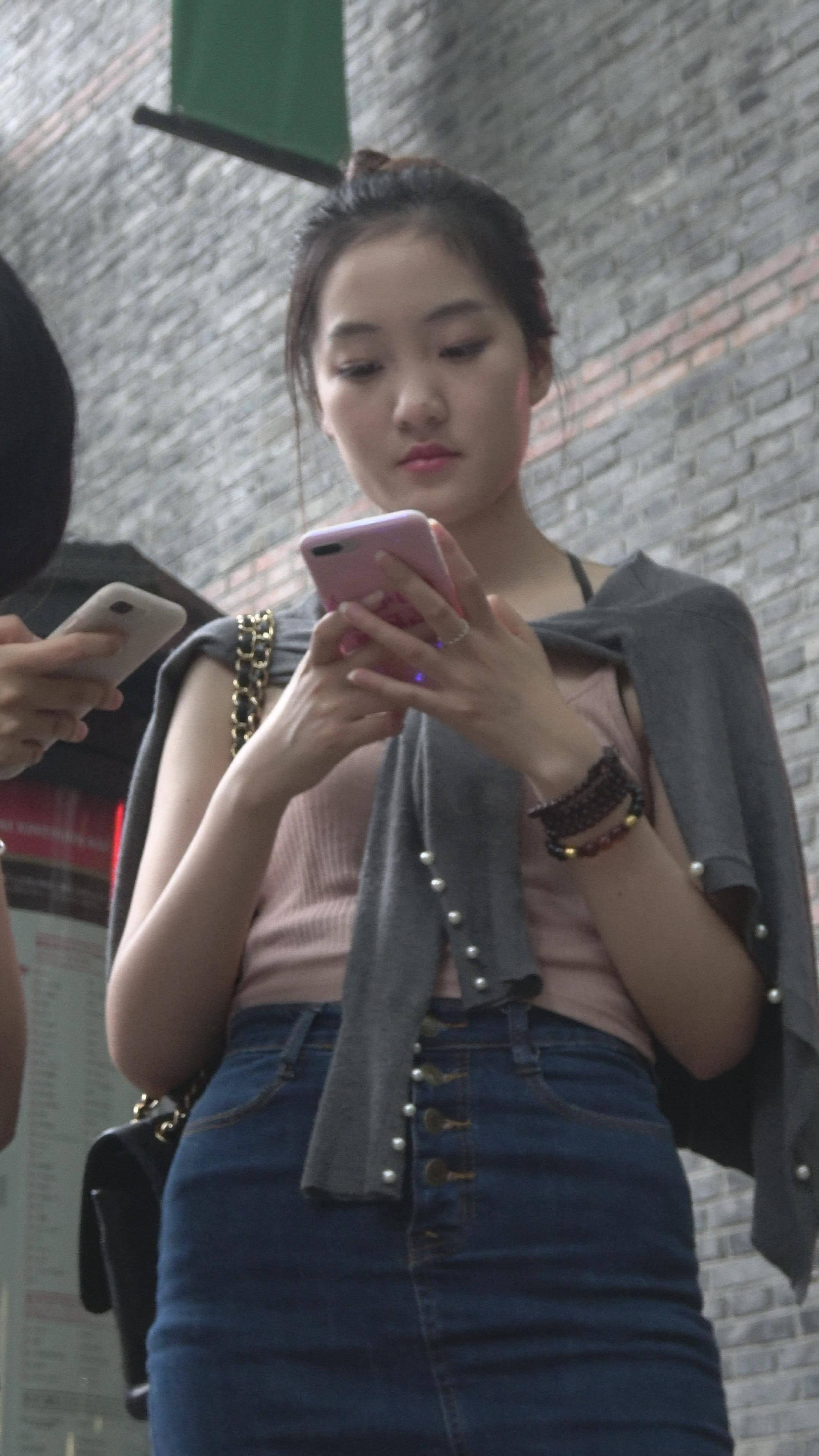 4K 性感包臀牛仔裙气质街拍美女姐姐 编号7973