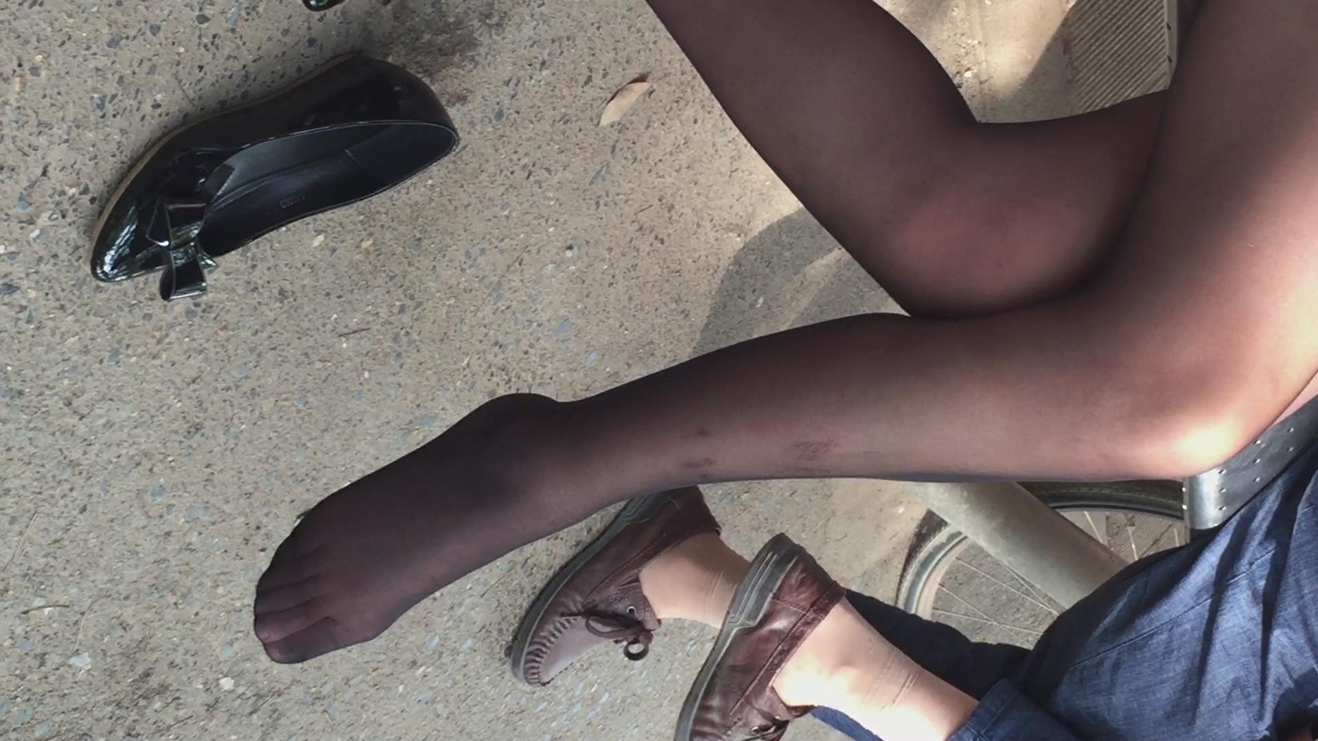 街拍黑色丝袜粉衣美眉 编号6618