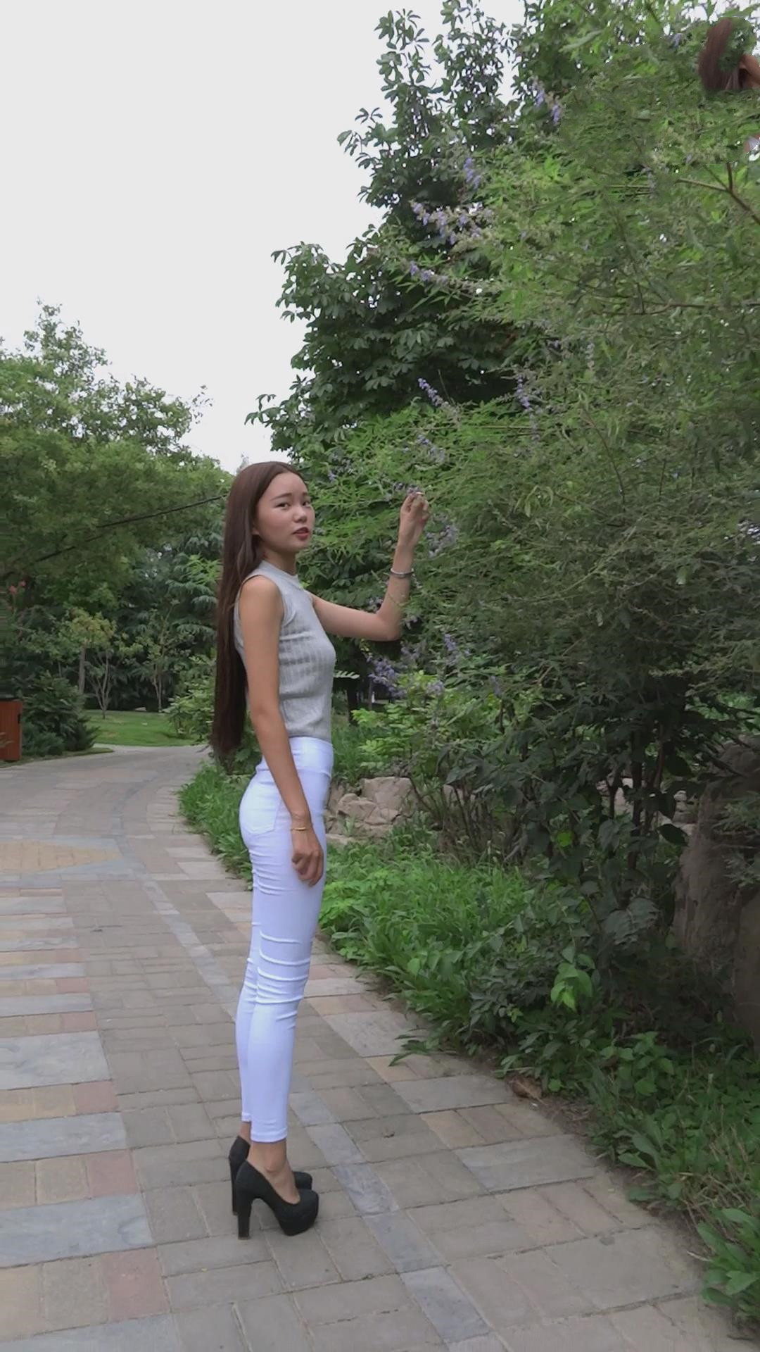 高跟长腿白裤美女公园模拍,高跟美腿太美啦 编号6886