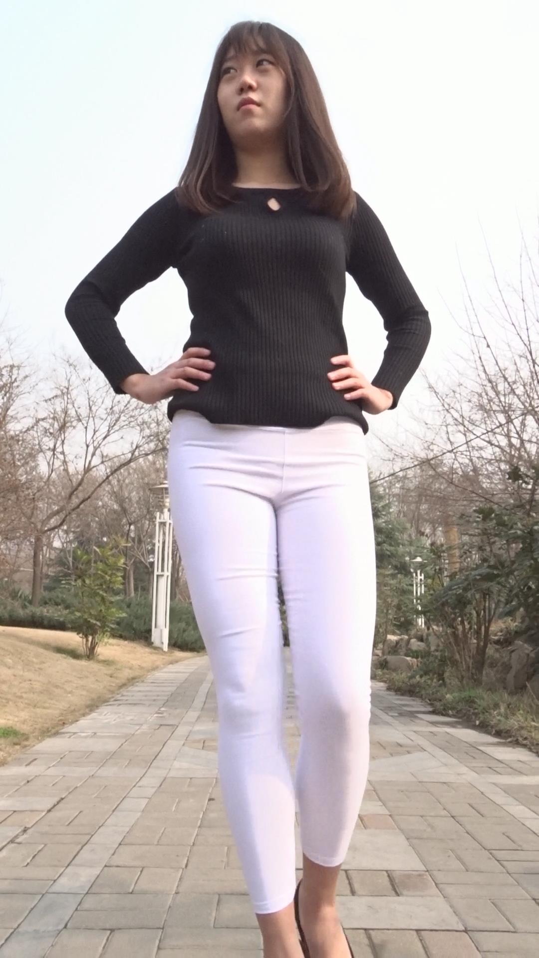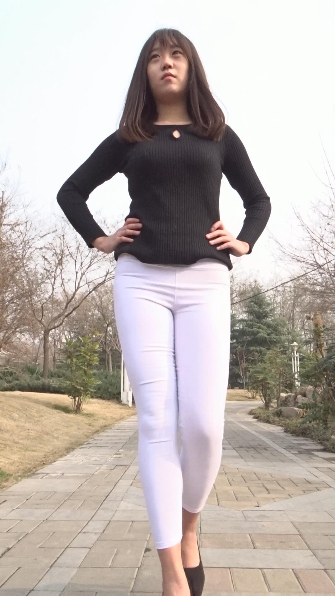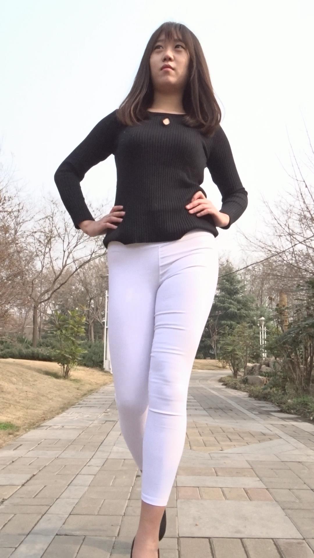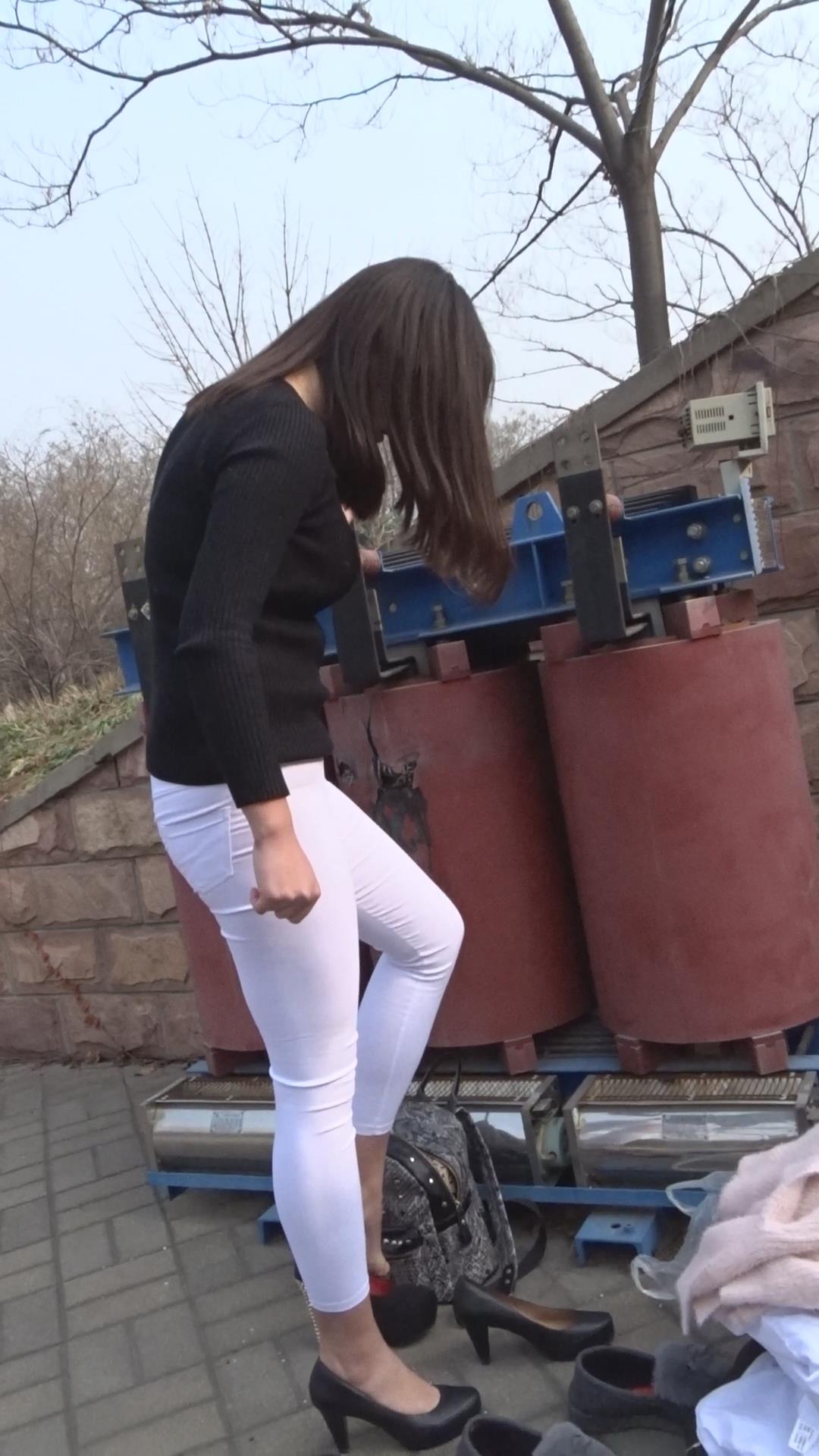 紧身白裤肥臀美眉公园模拍,透明内痕明显 编号6890