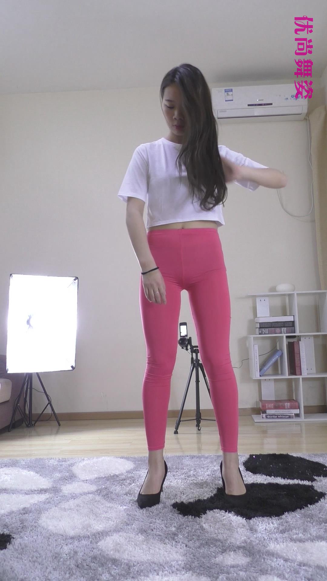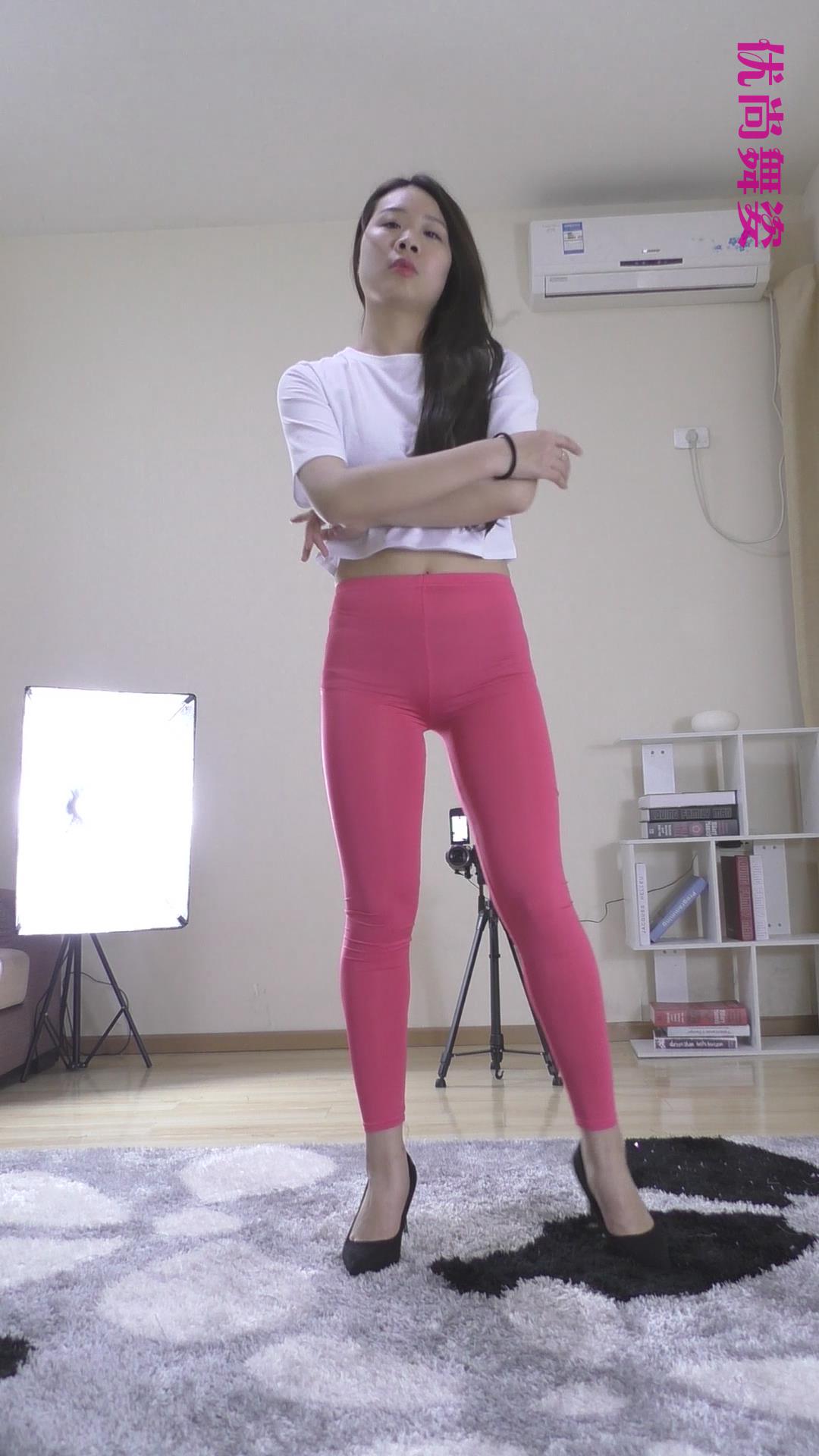 优尚舞姿粉色紧身裤美女 编号6901