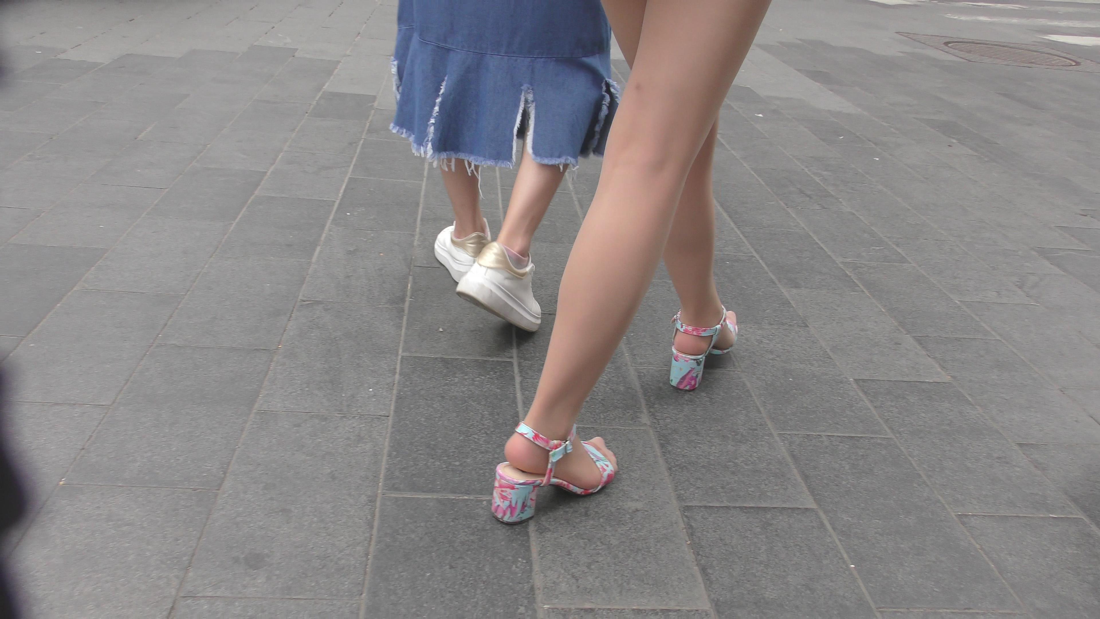 4k-都说敢露额头的才是美女,街拍肉丝凉鞋玉足美女 编号6628