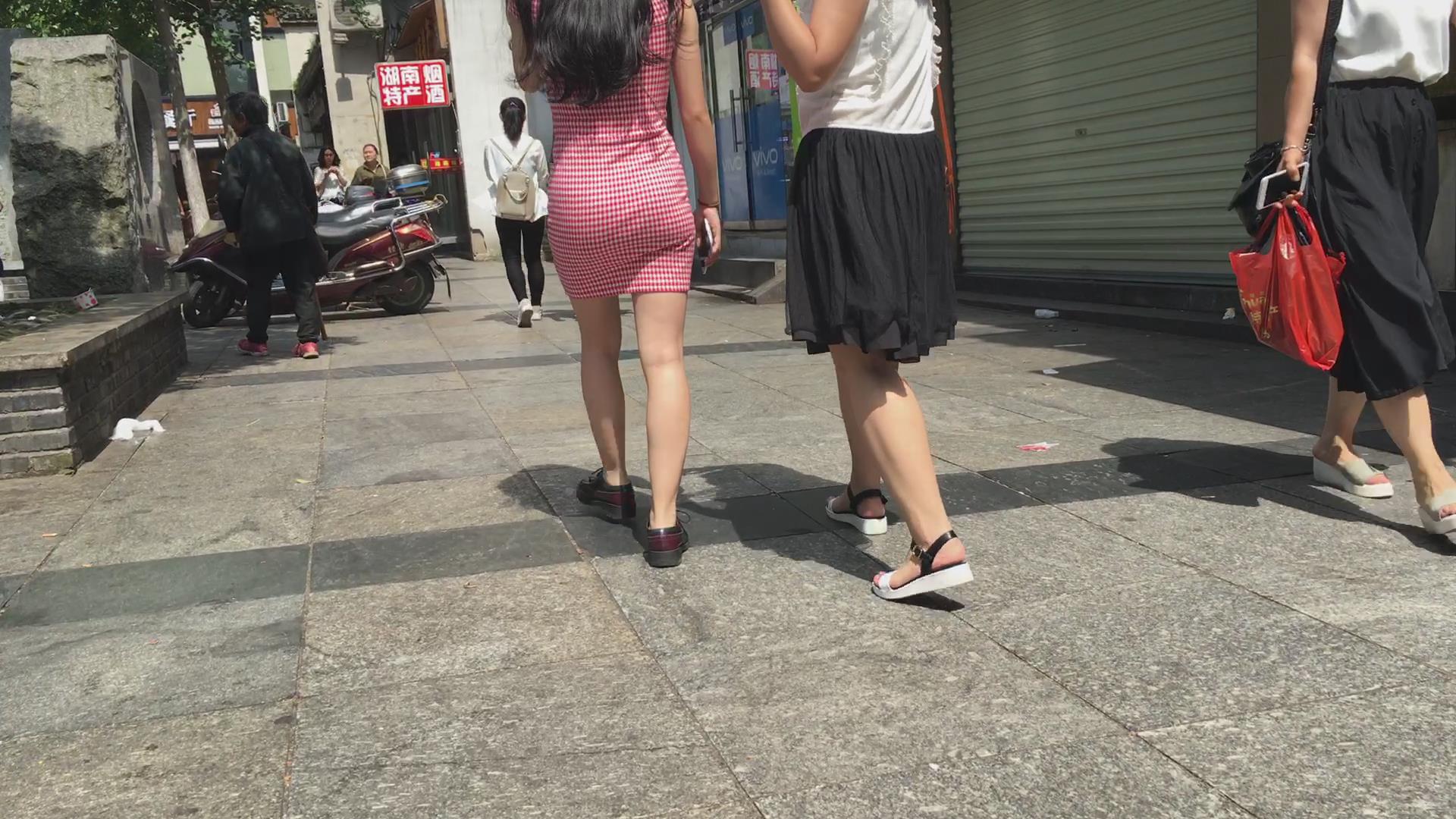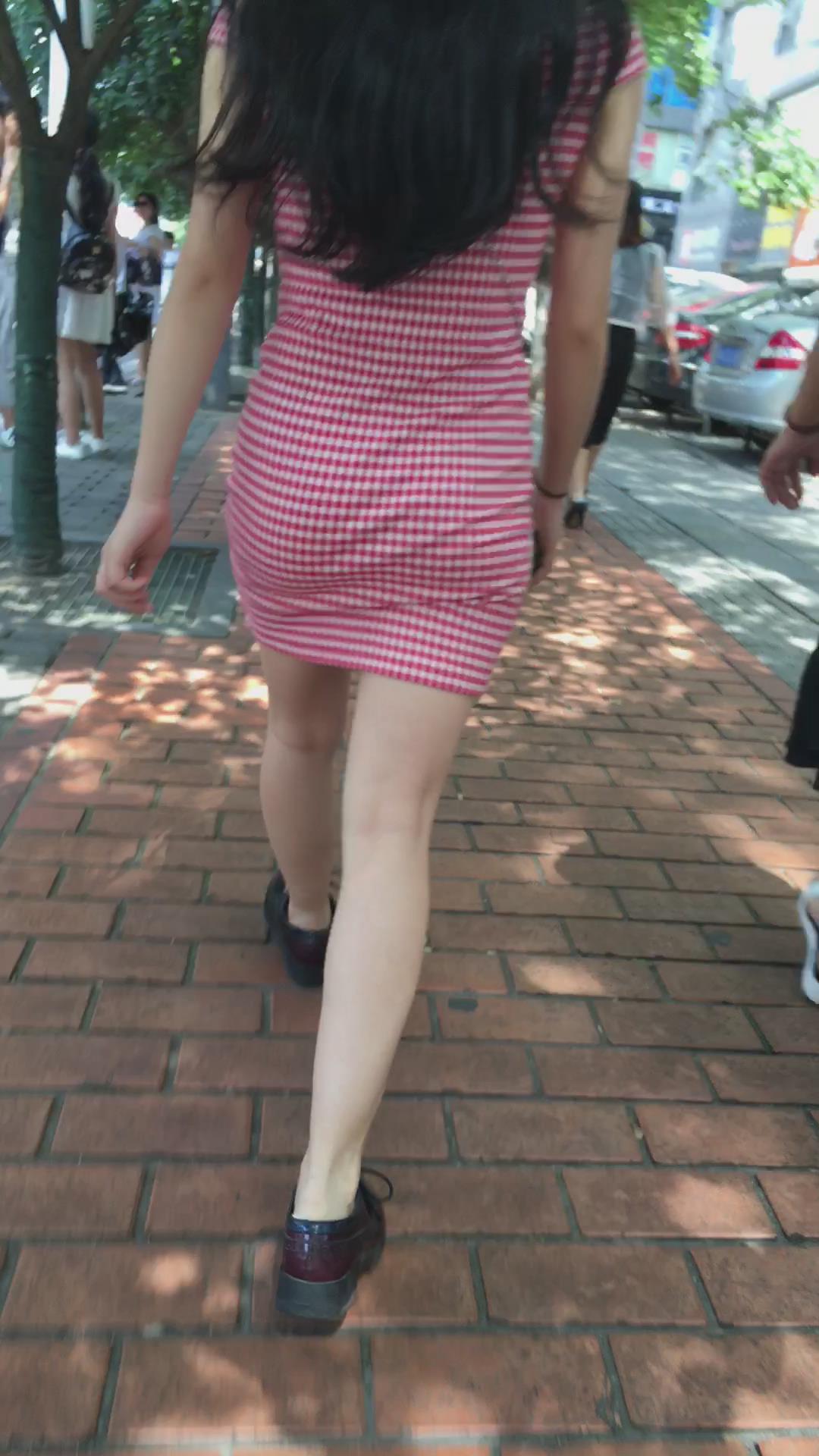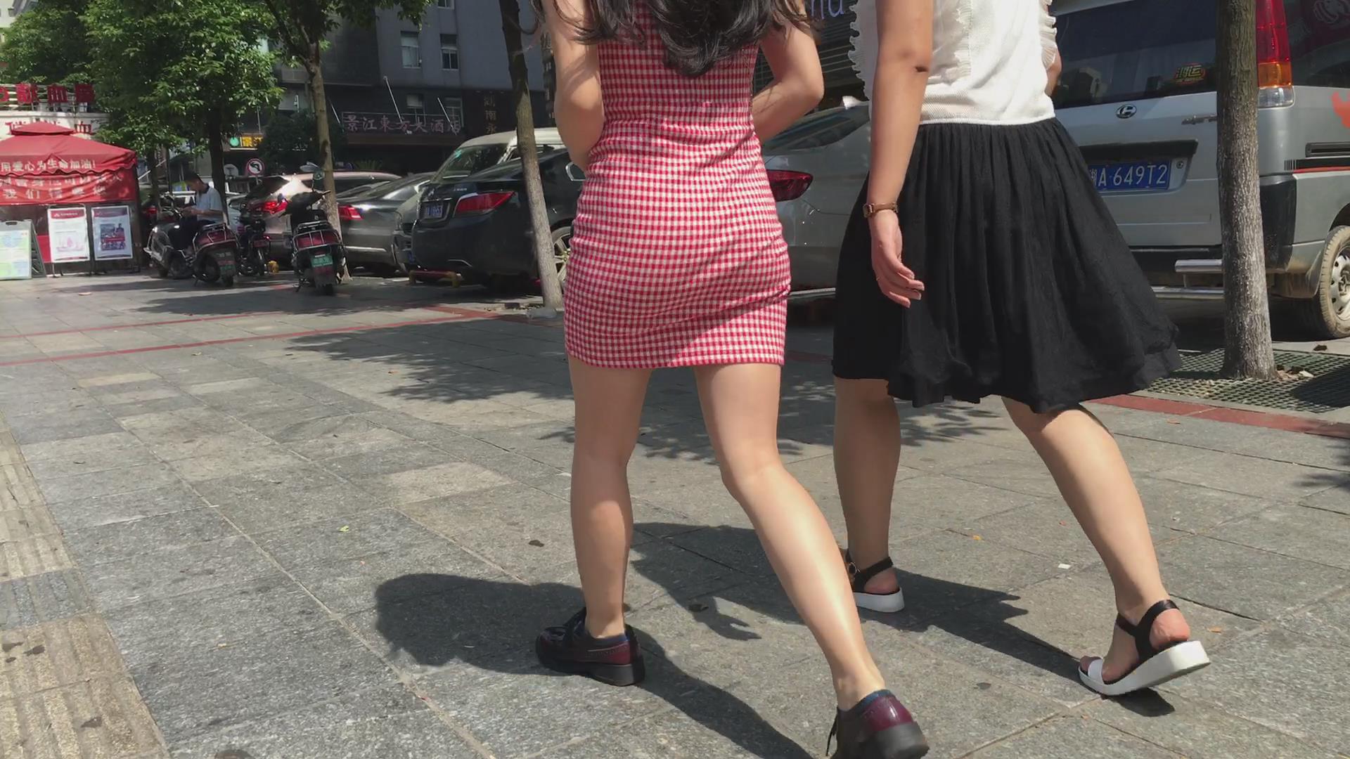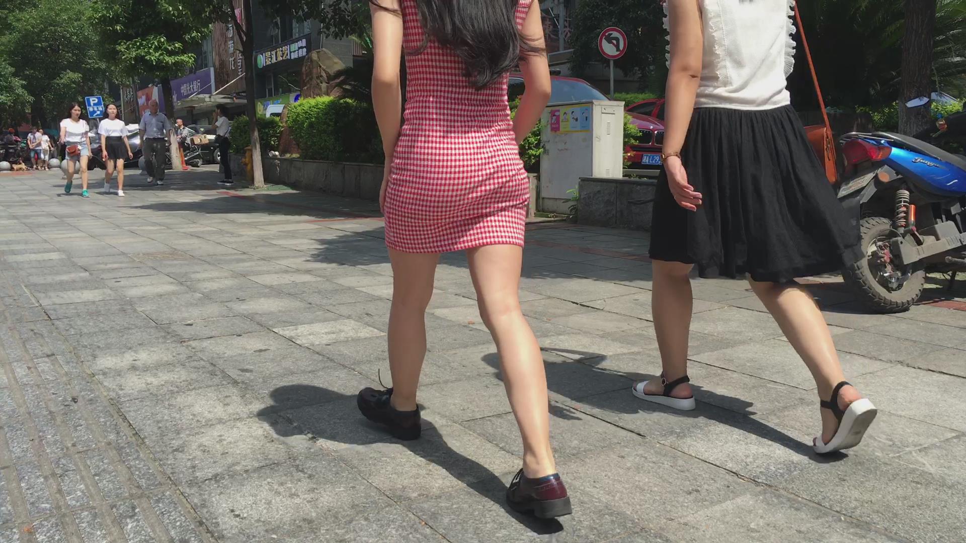 跟拍格子修身包臀裙美腿女孩 编号2012
