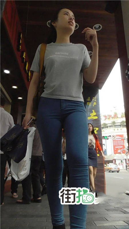 【编号710】街拍极品嫩白紧身牛仔MM