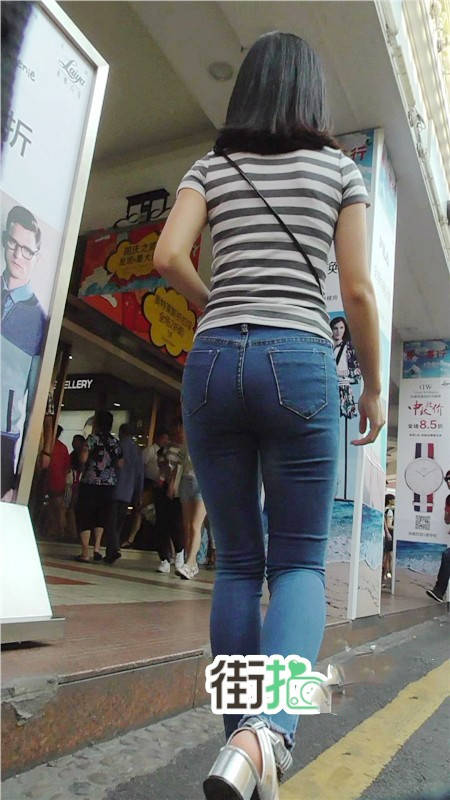 【编号721】街拍细腰长腿紧身牛仔MM