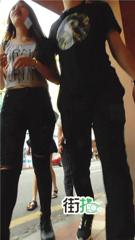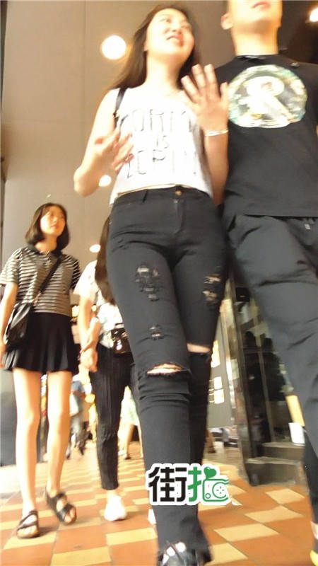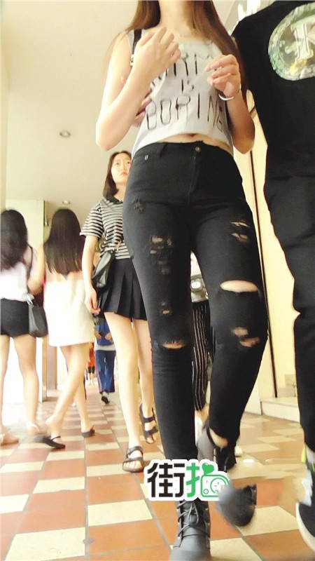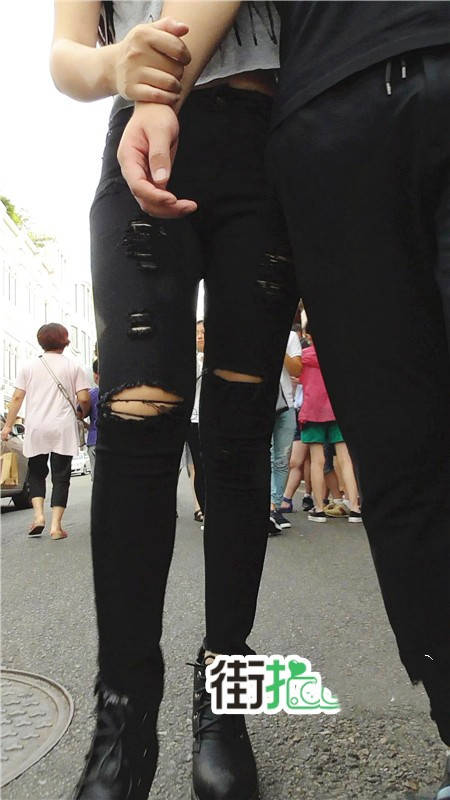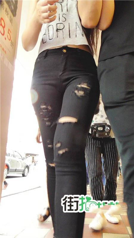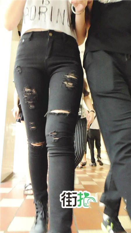 【编号740】街拍时尚紧身破洞黑色牛仔裤MM