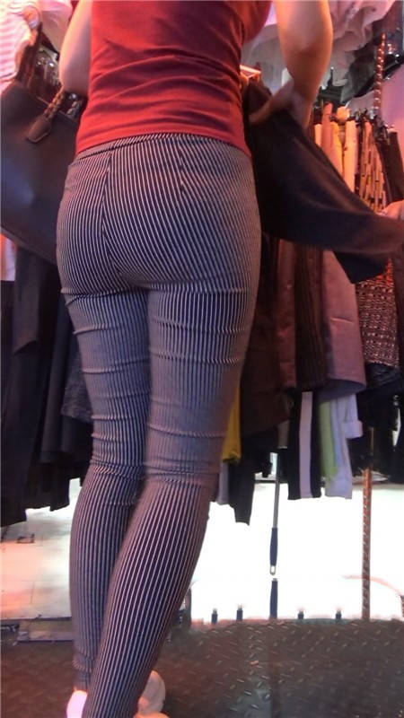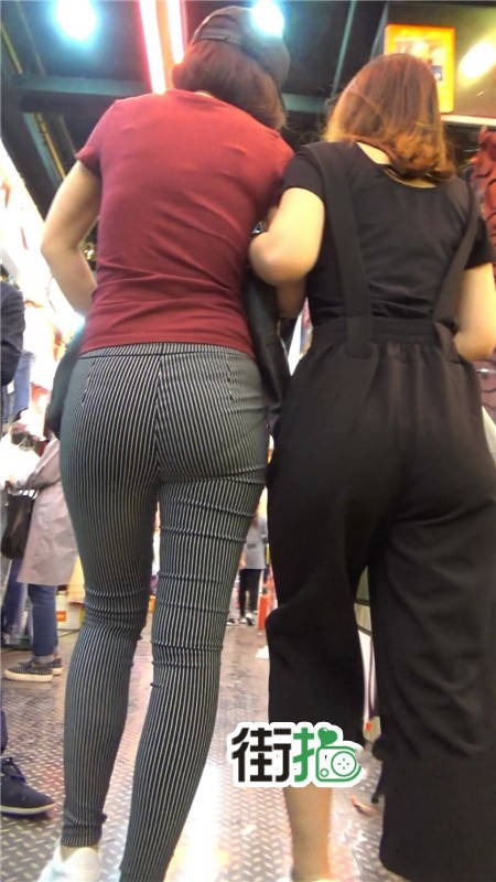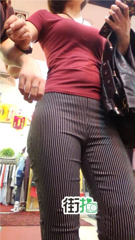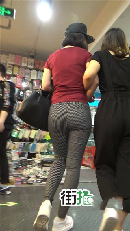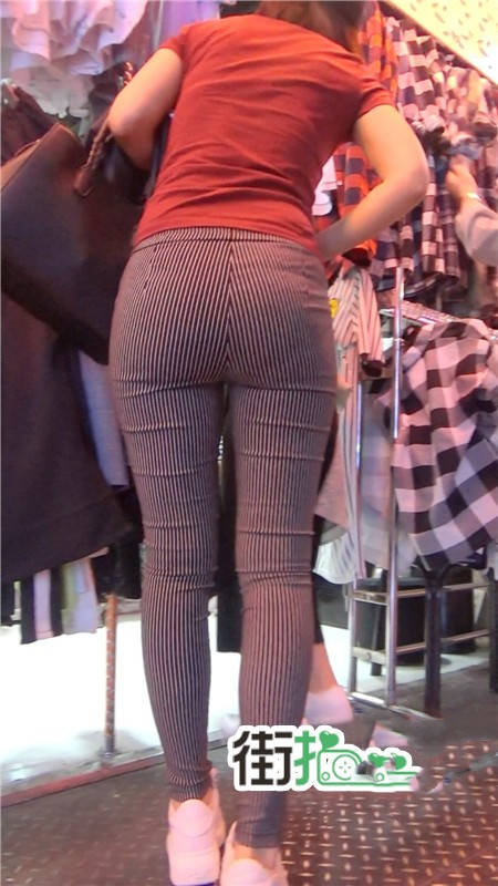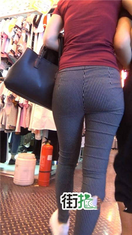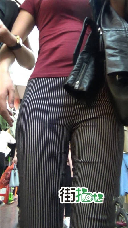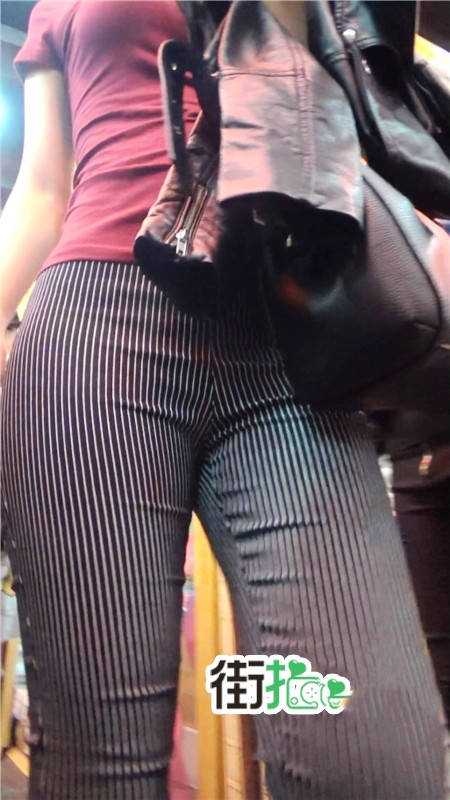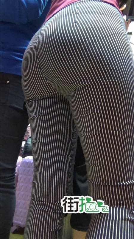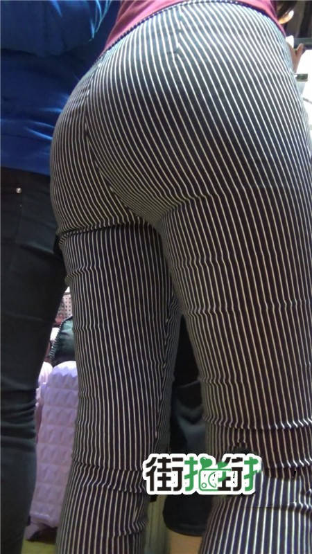 【编号752】街拍条纹布裤紧身丰臀美女