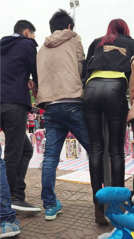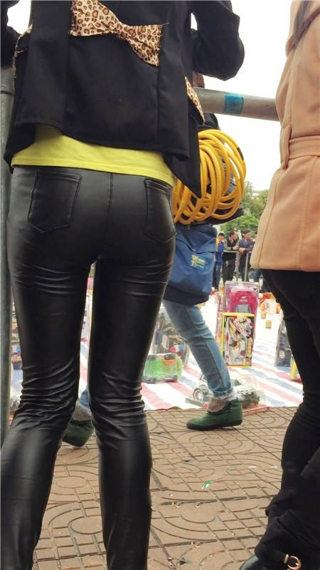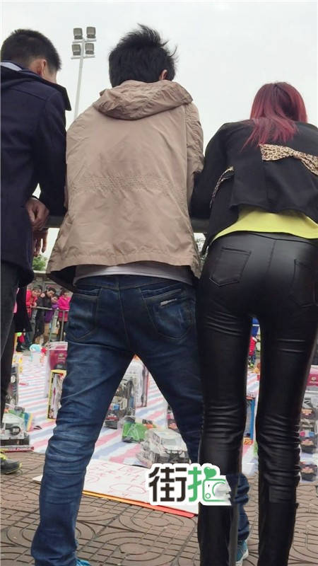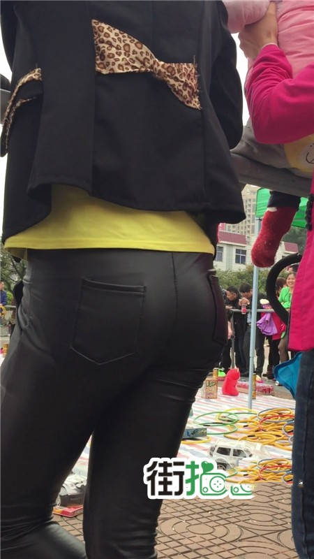 【编号759】街拍翘着屁股玩套圈游戏的紧身皮裤少妇