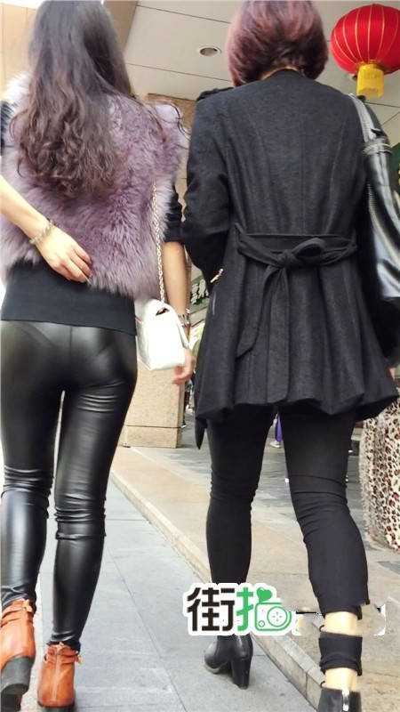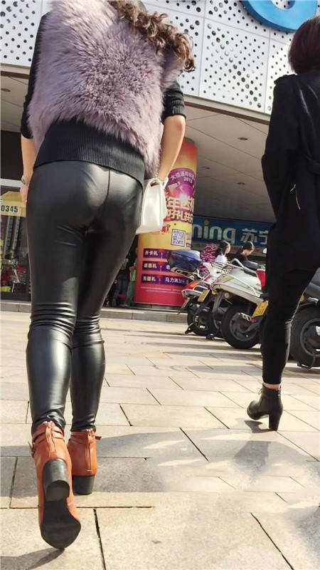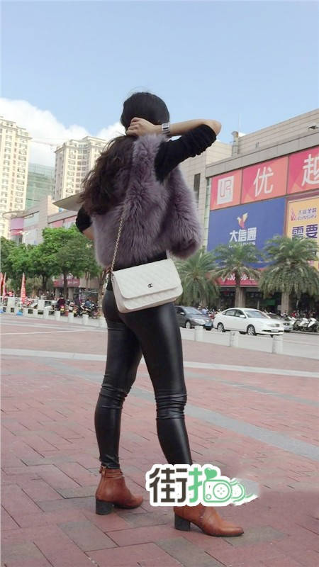 【编号760】街拍紫色貂绒紧身皮裤