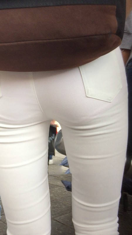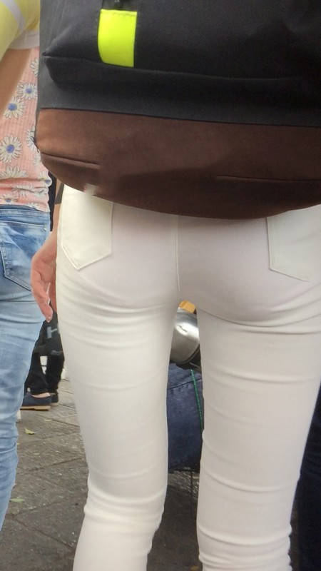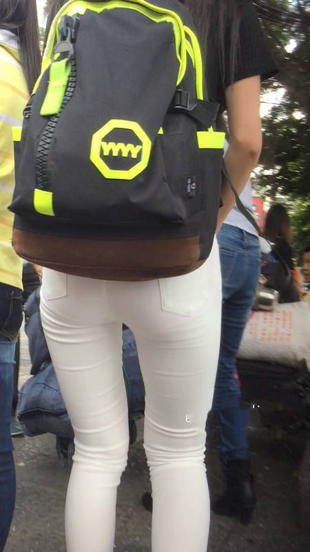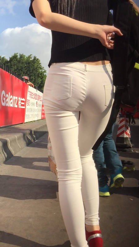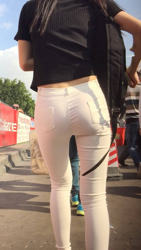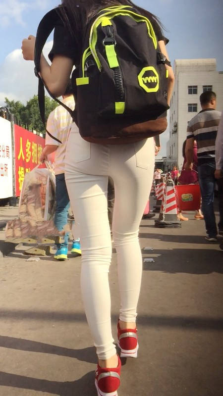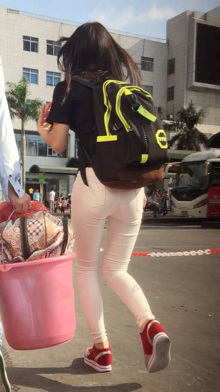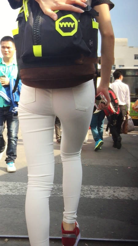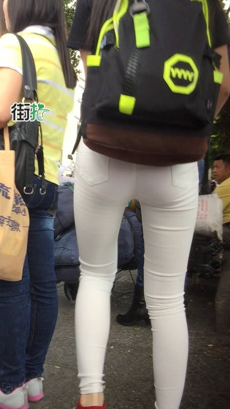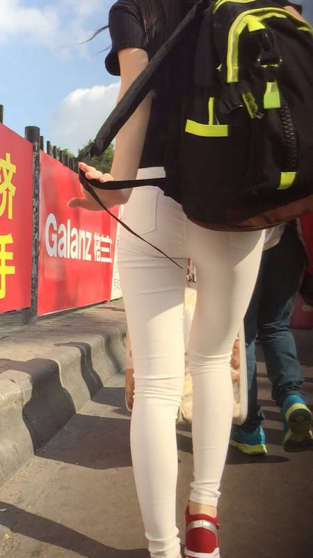 【编号769】街拍白色紧身裤翘臀女大学生匆忙赶车