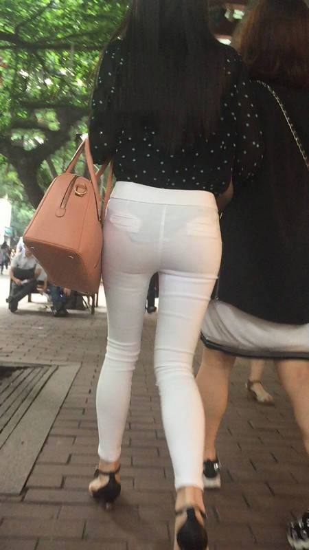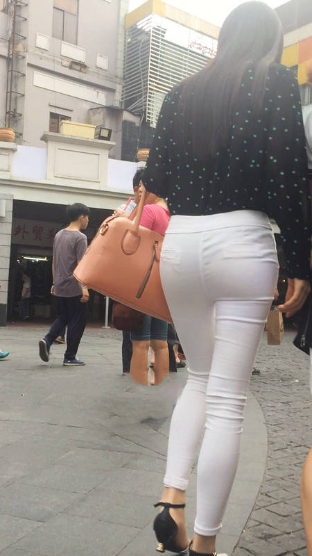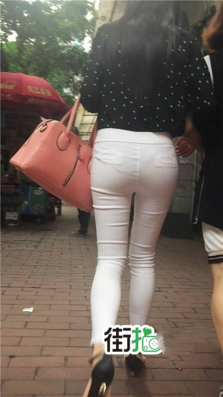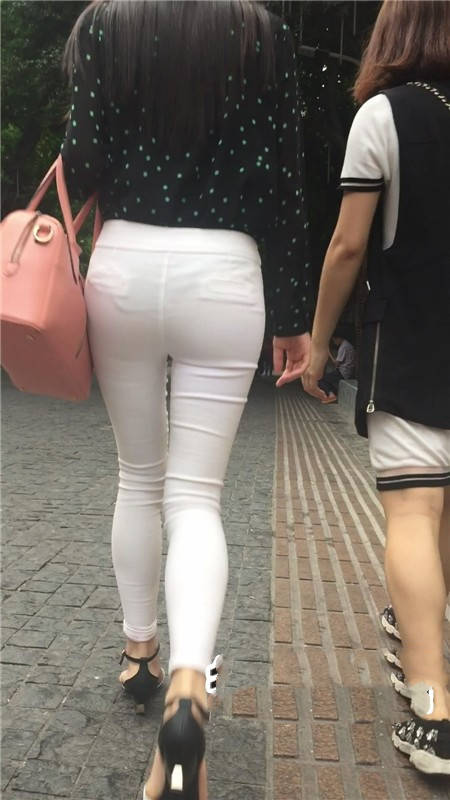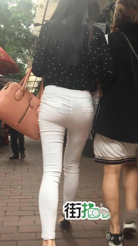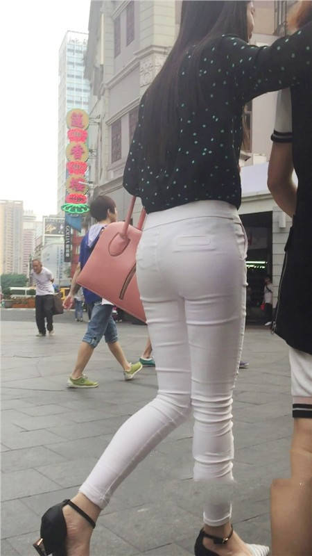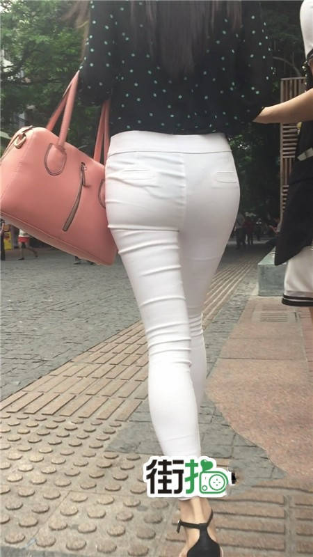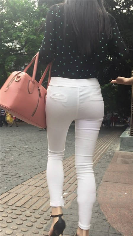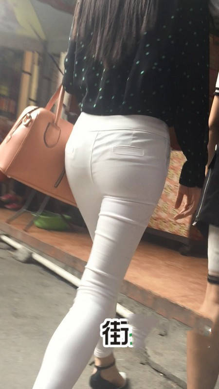 【编号772】街拍紧身翘臀白裤黑长直美女