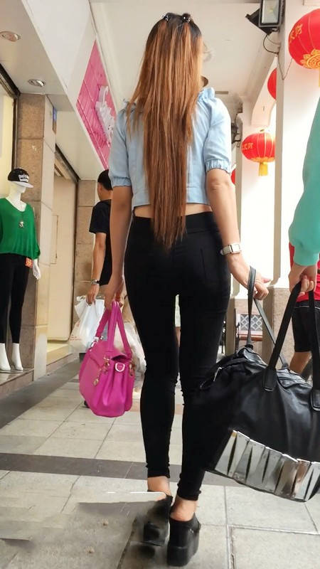 【编号779】街拍黑色紧身裤美女完美身材