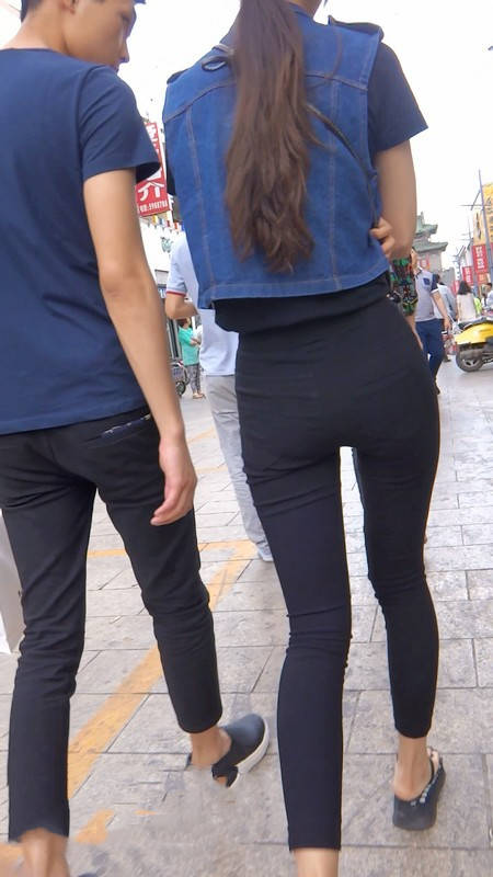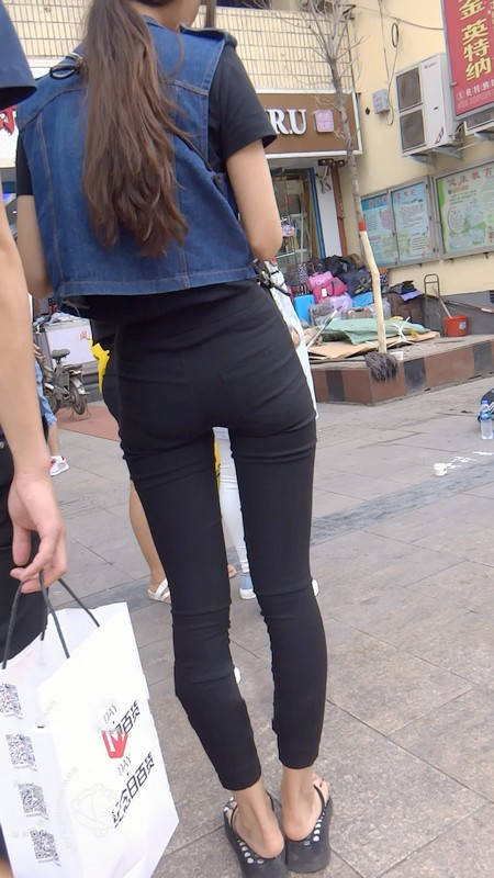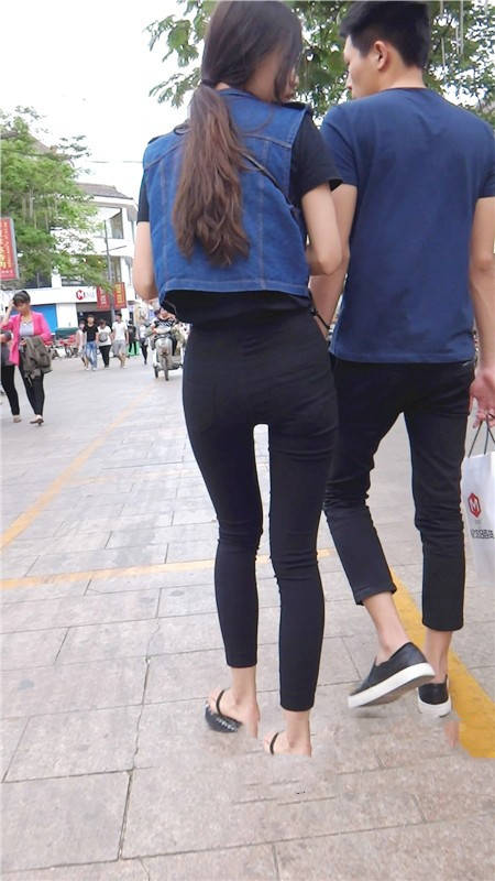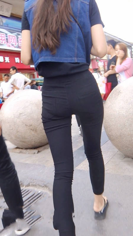 【编号800】街拍12分钟黑色紧身裤苗条时尚美女