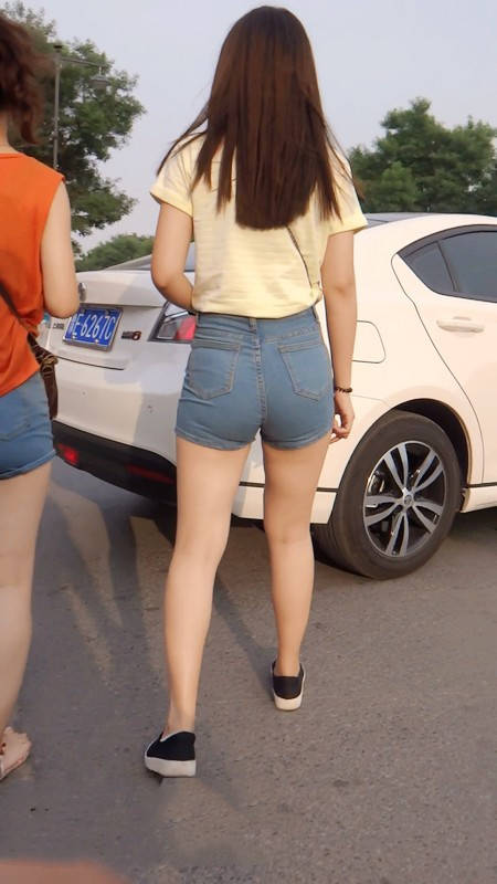 【编号801】街拍蓝色紧牛热裤大腿好白
