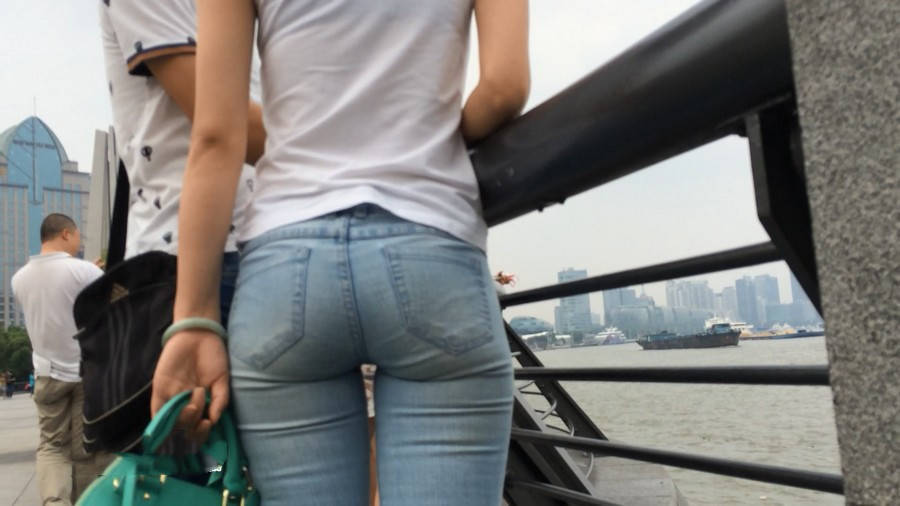 【编号815】街拍观海的牛仔肉臀小情侣