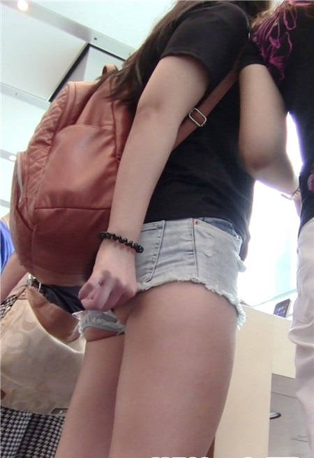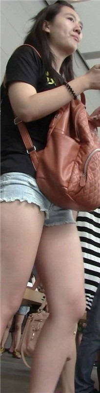 【编号827】街拍紧身热裤月牙妹逛苹果店