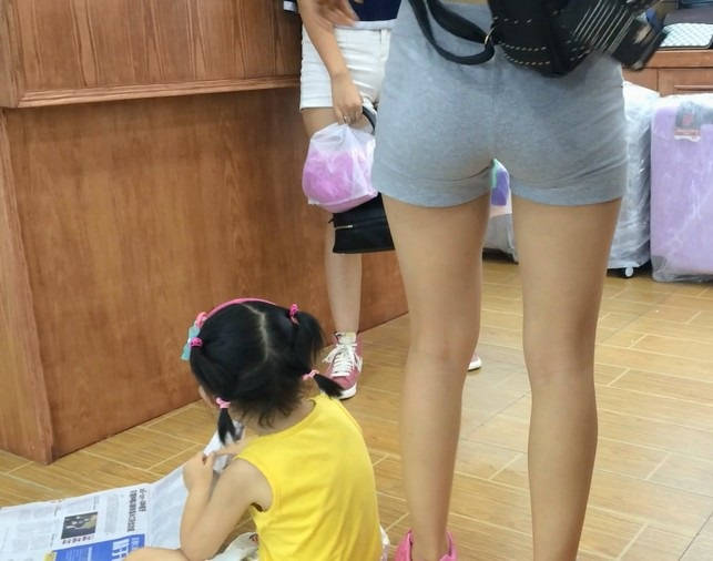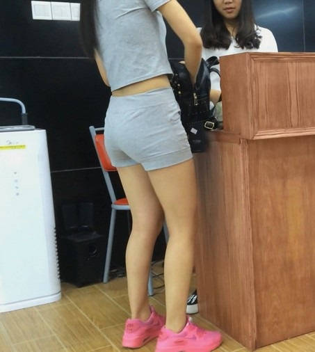 【编号852】街拍买包的呢绒短裤学生妹
