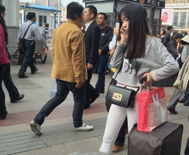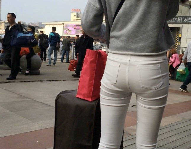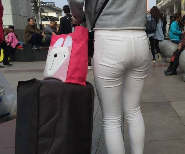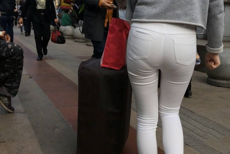 【编号858】街拍白裤女学生被猥琐大叔摸屁屁