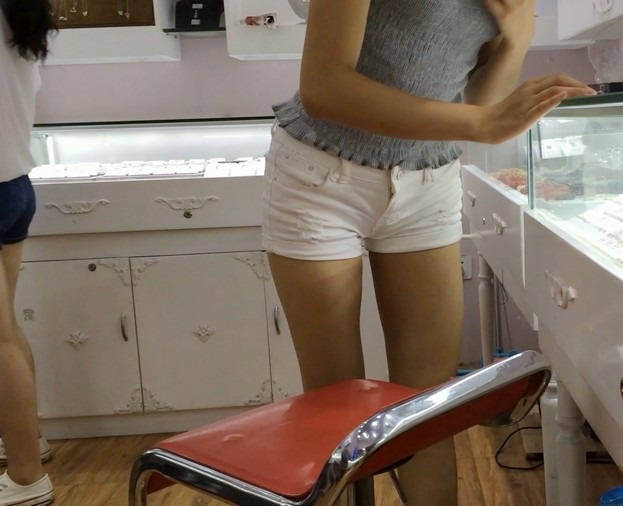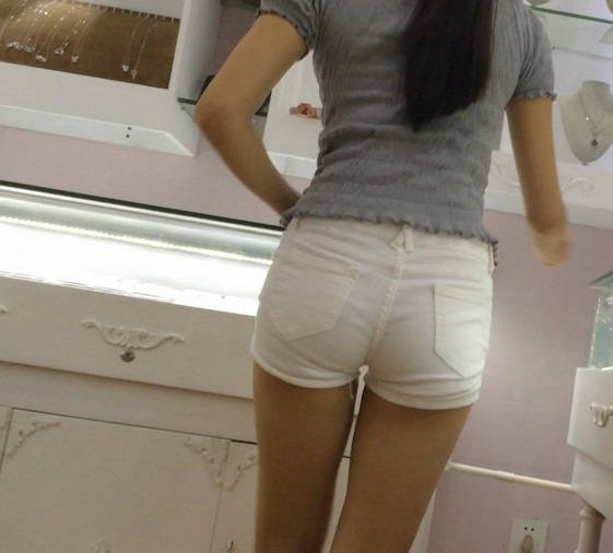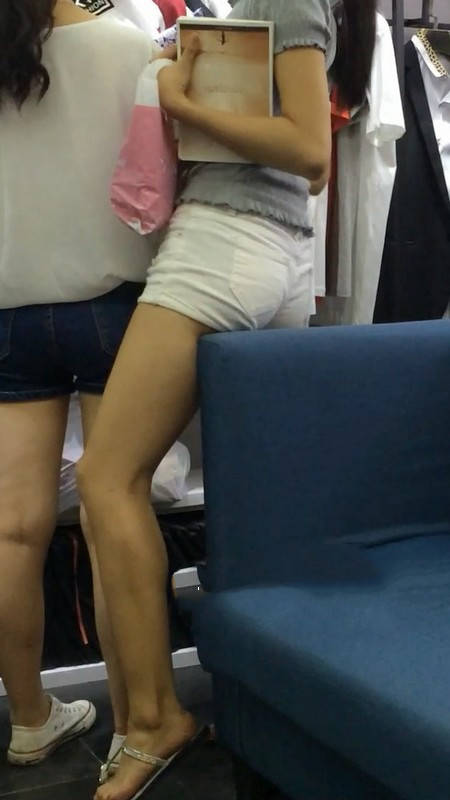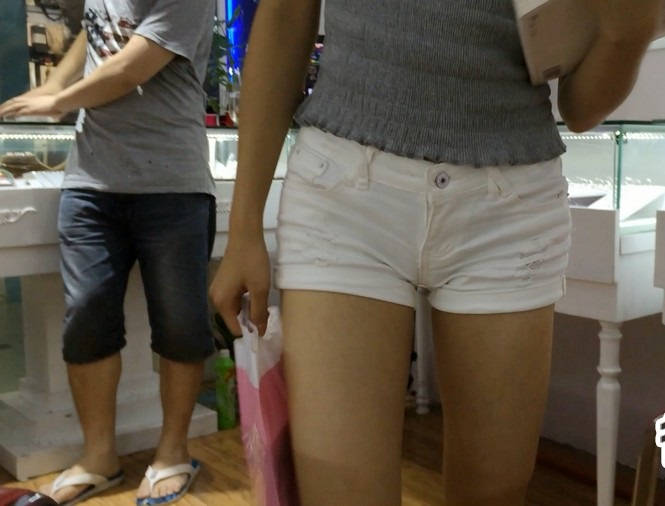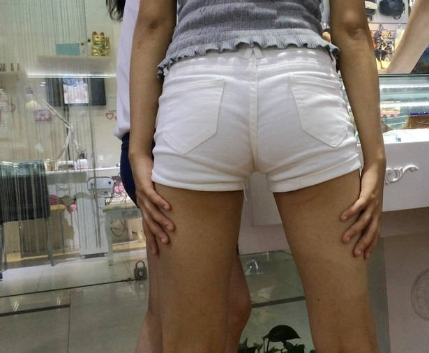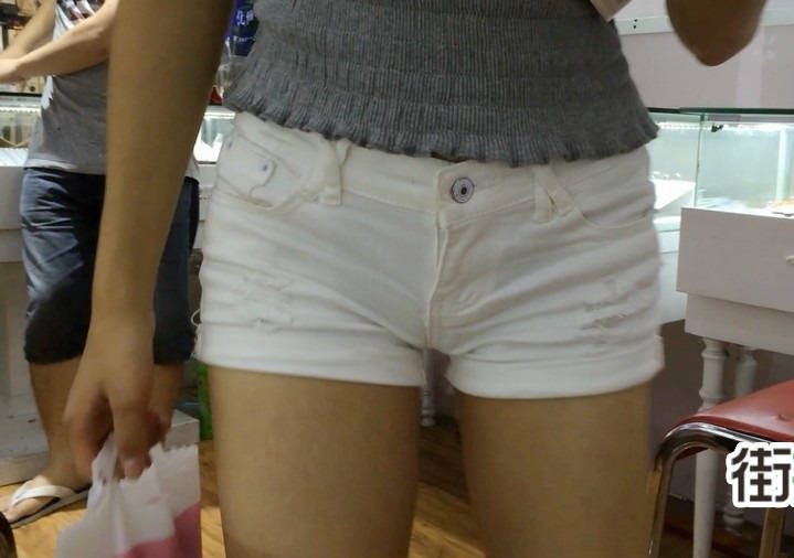 【编号867】街拍白色紧身热裤翘臀女学生
