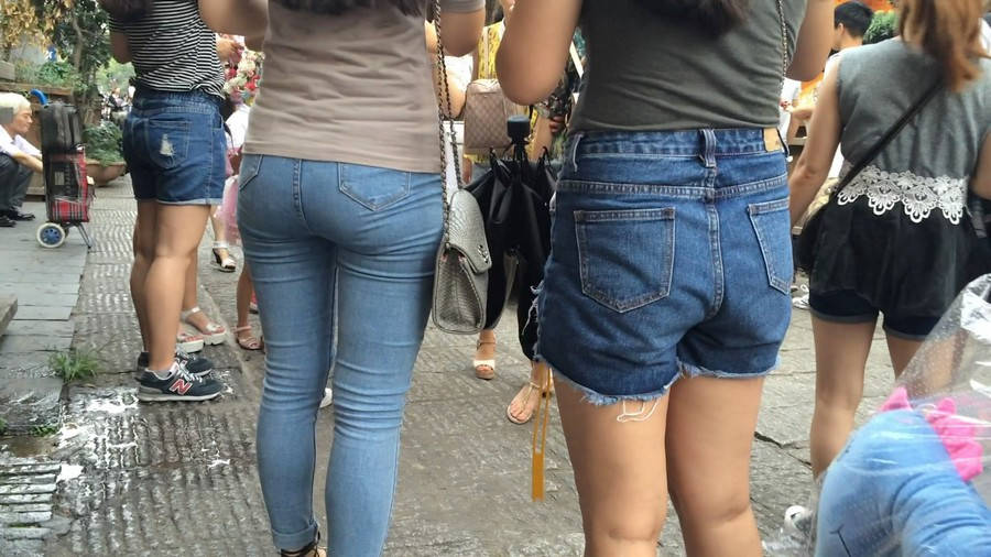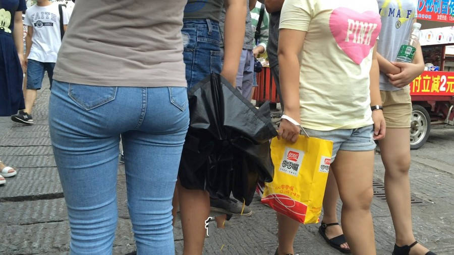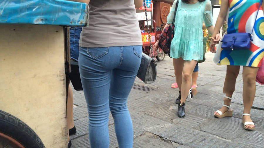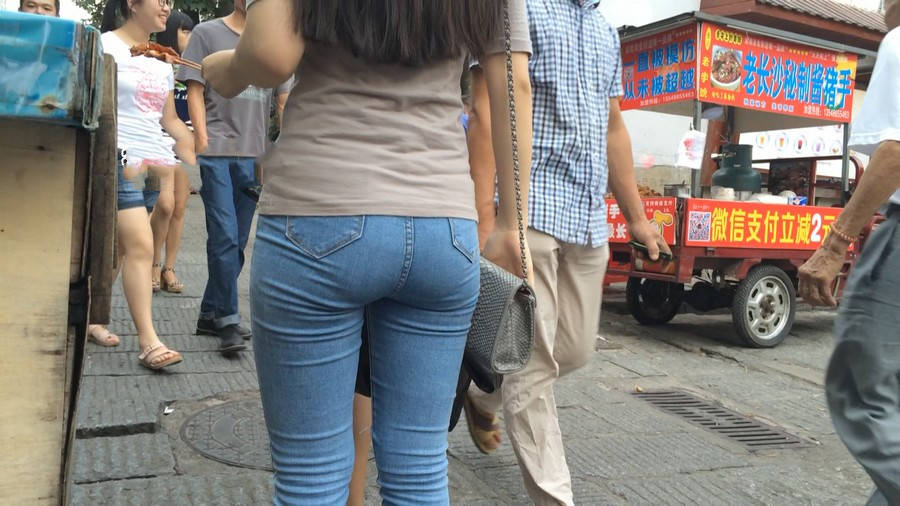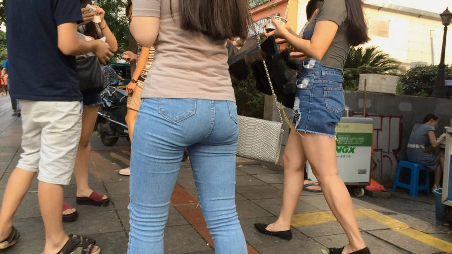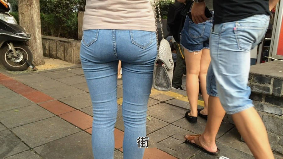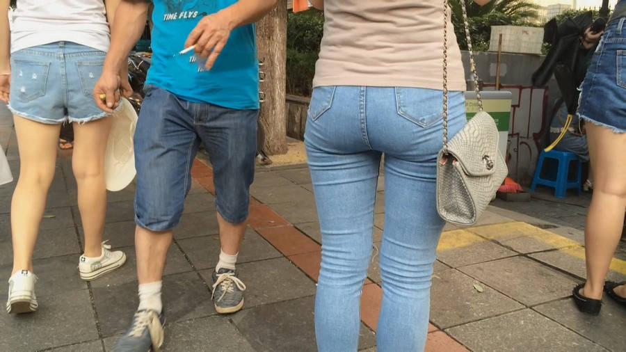 【编号880】街拍紧身牛仔裤美女买小吃