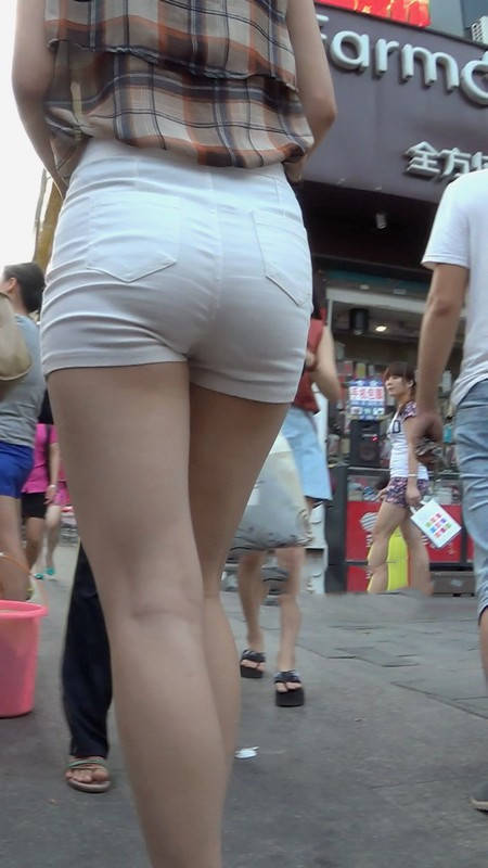 【编号920】街拍白色短裤紧绷肥臀高跟踩得响